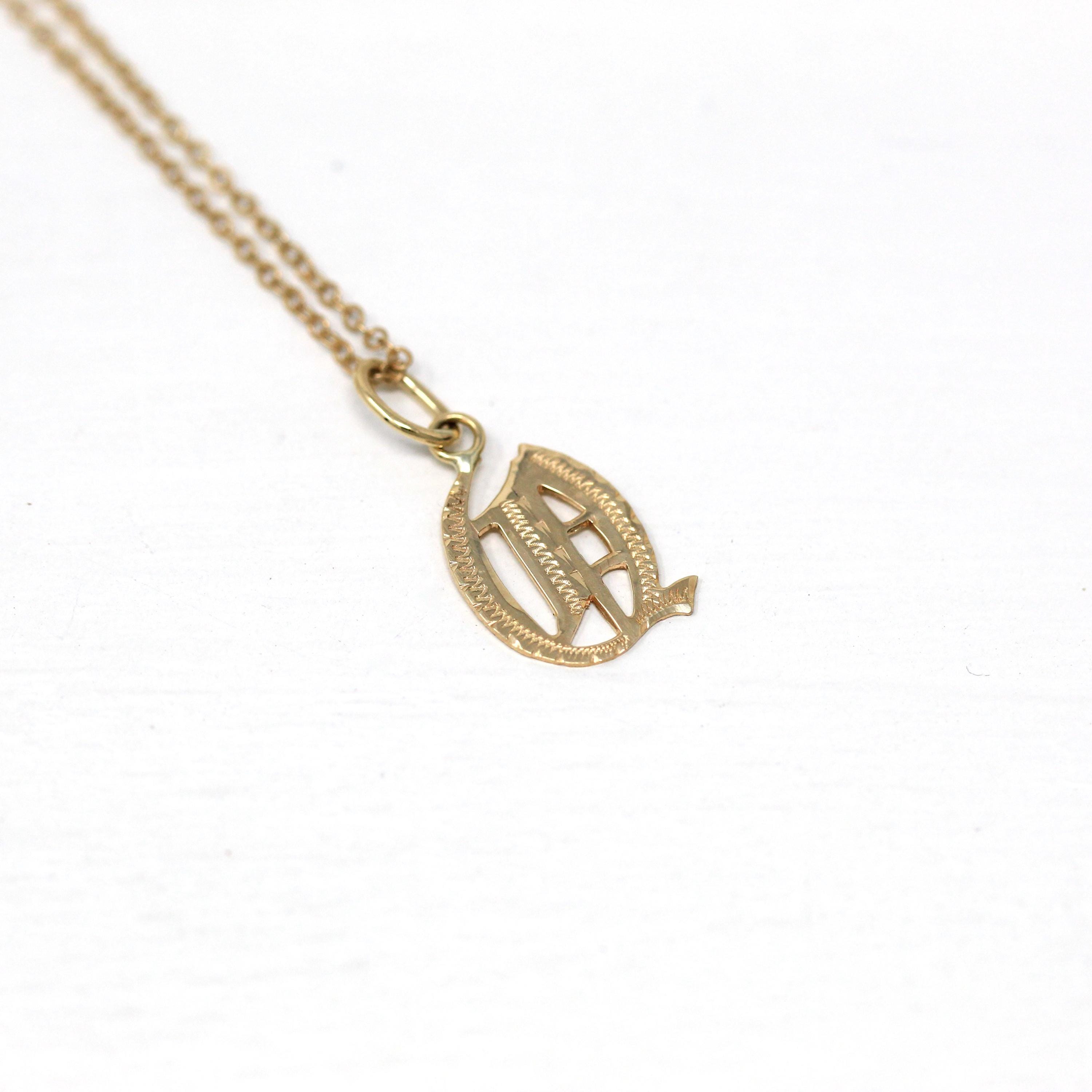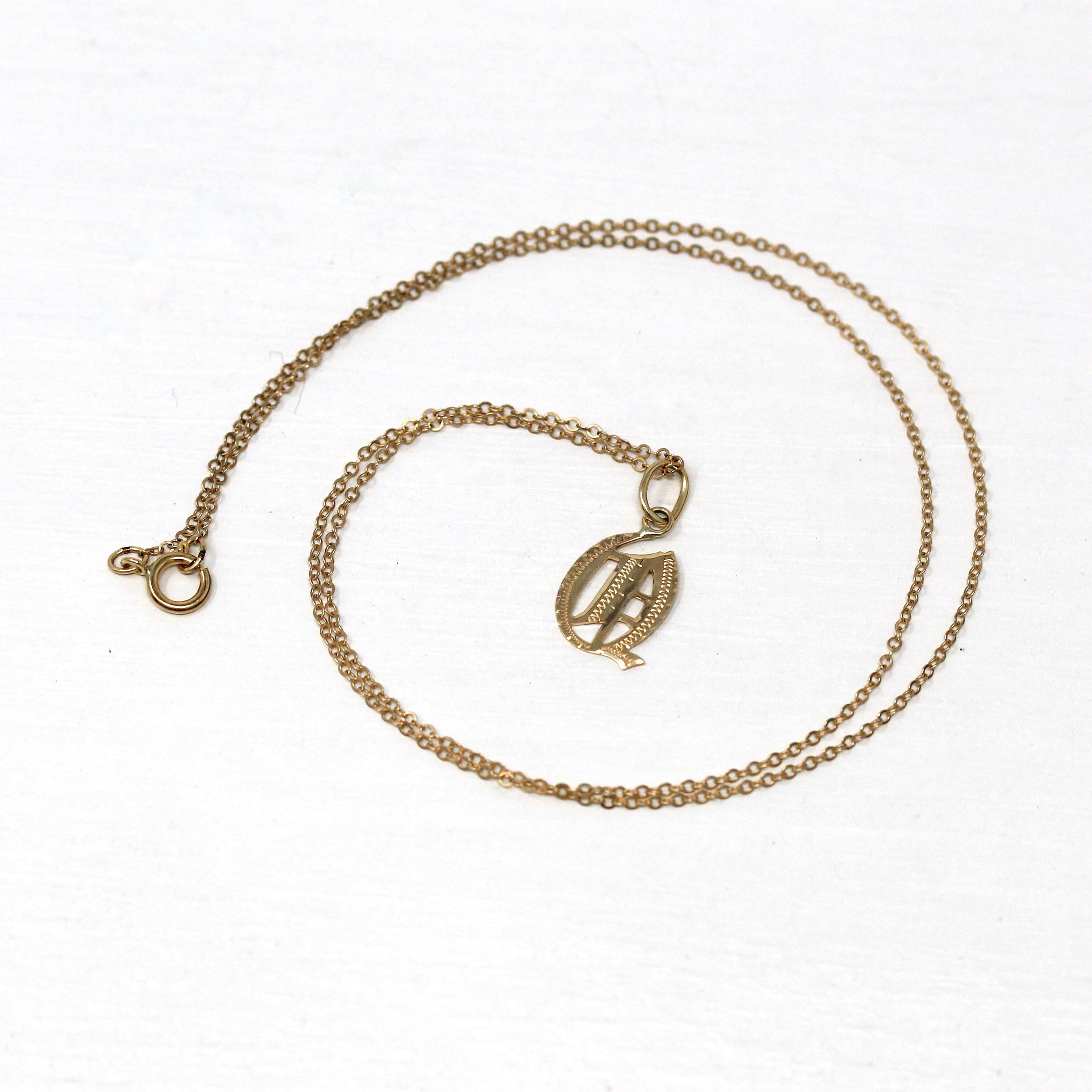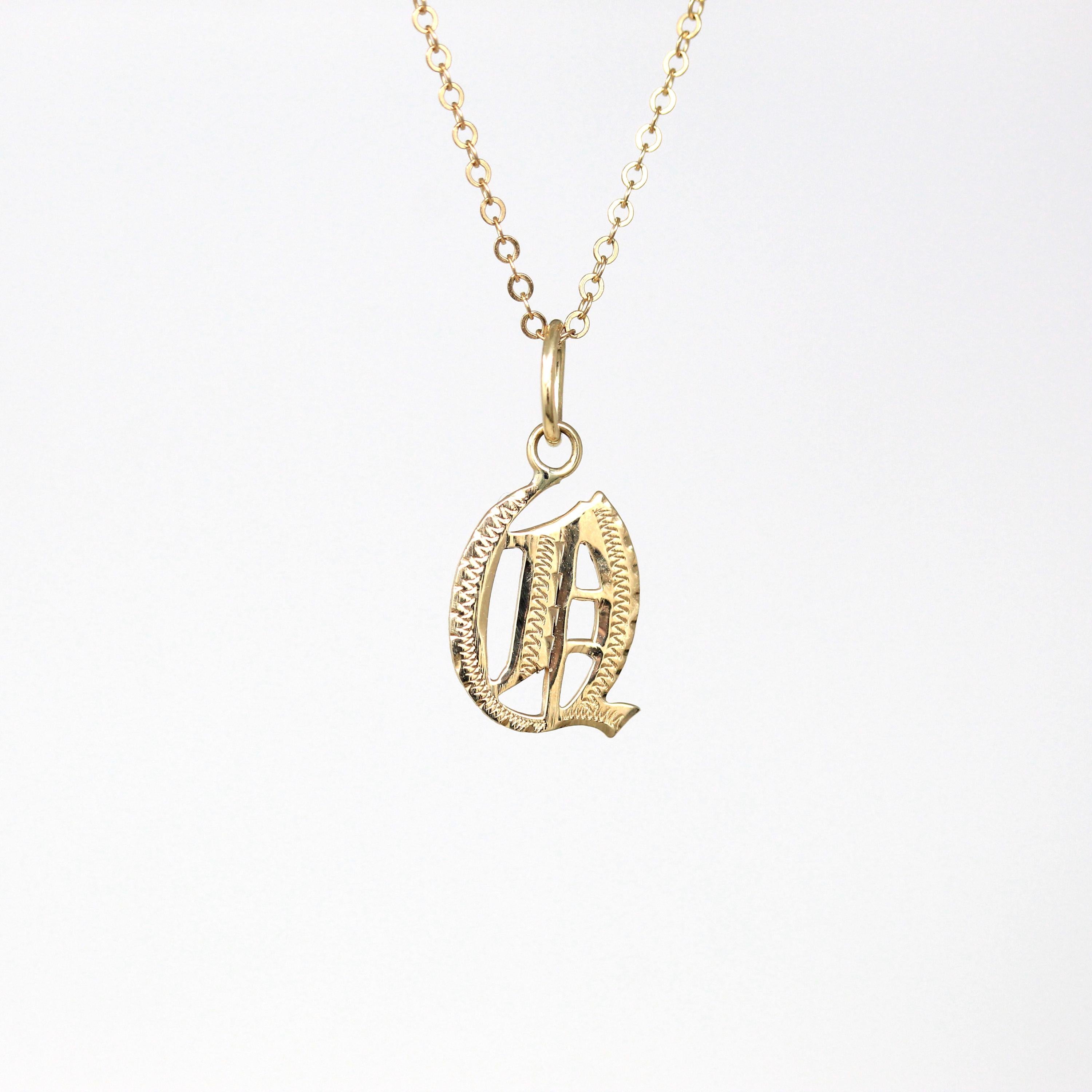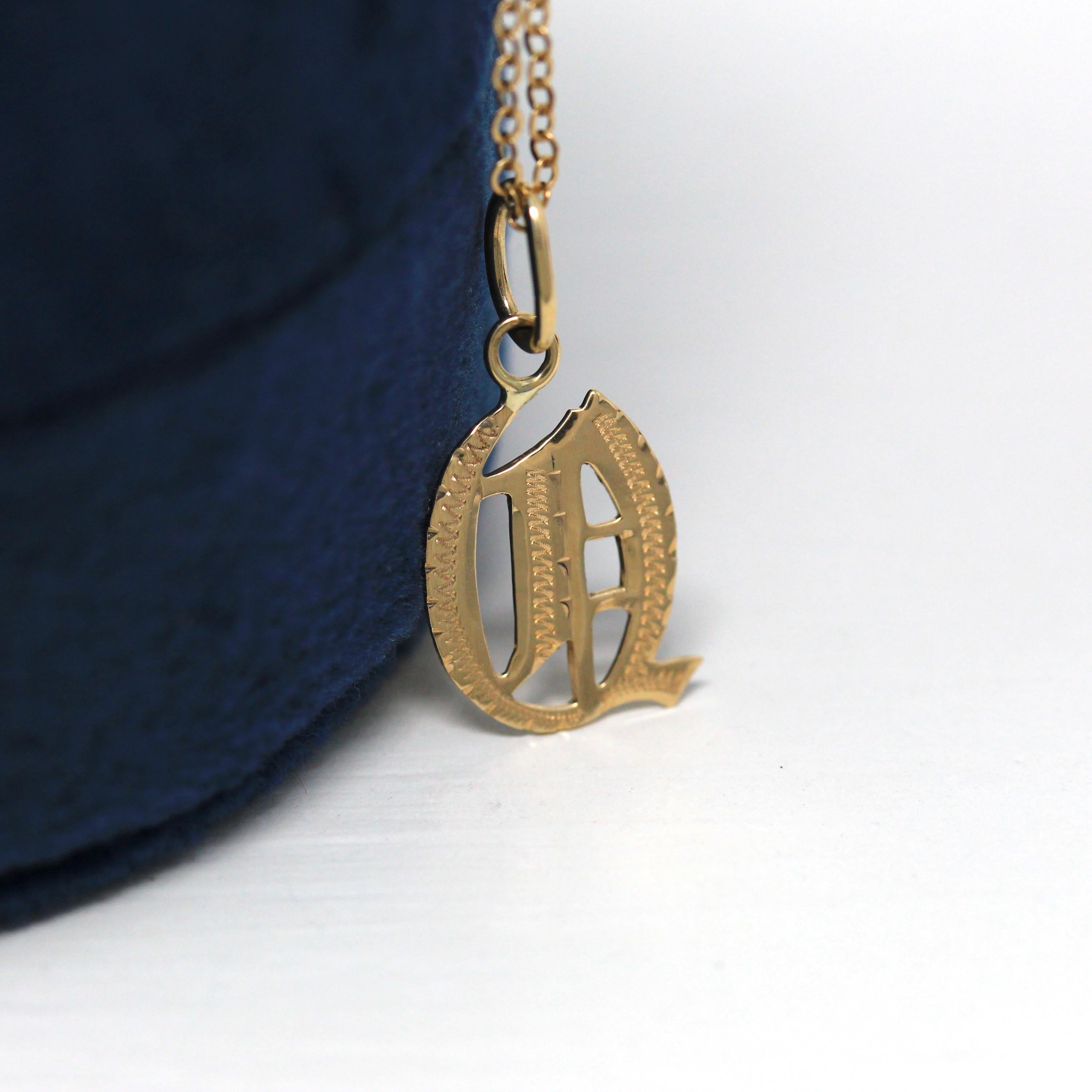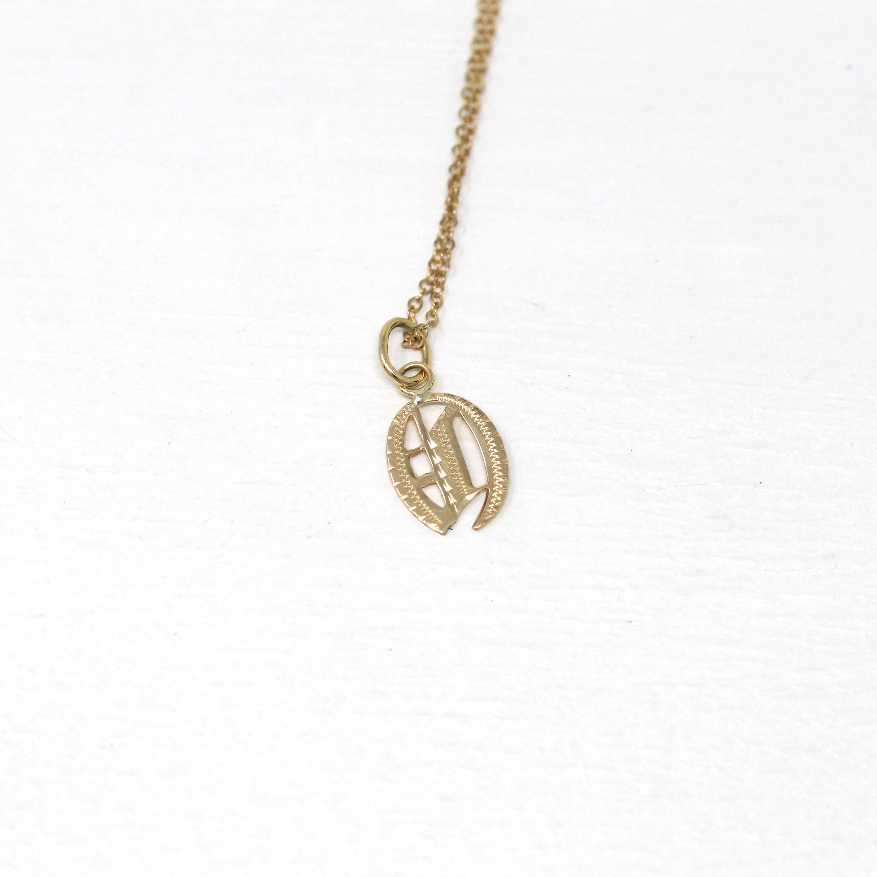 Letter "U" Charm - Art Deco 10k & 14k Gold Initial Old English Style Pendant Necklace - Vintage Circa 1930s Ostby Barton Fine 30s Jewelry