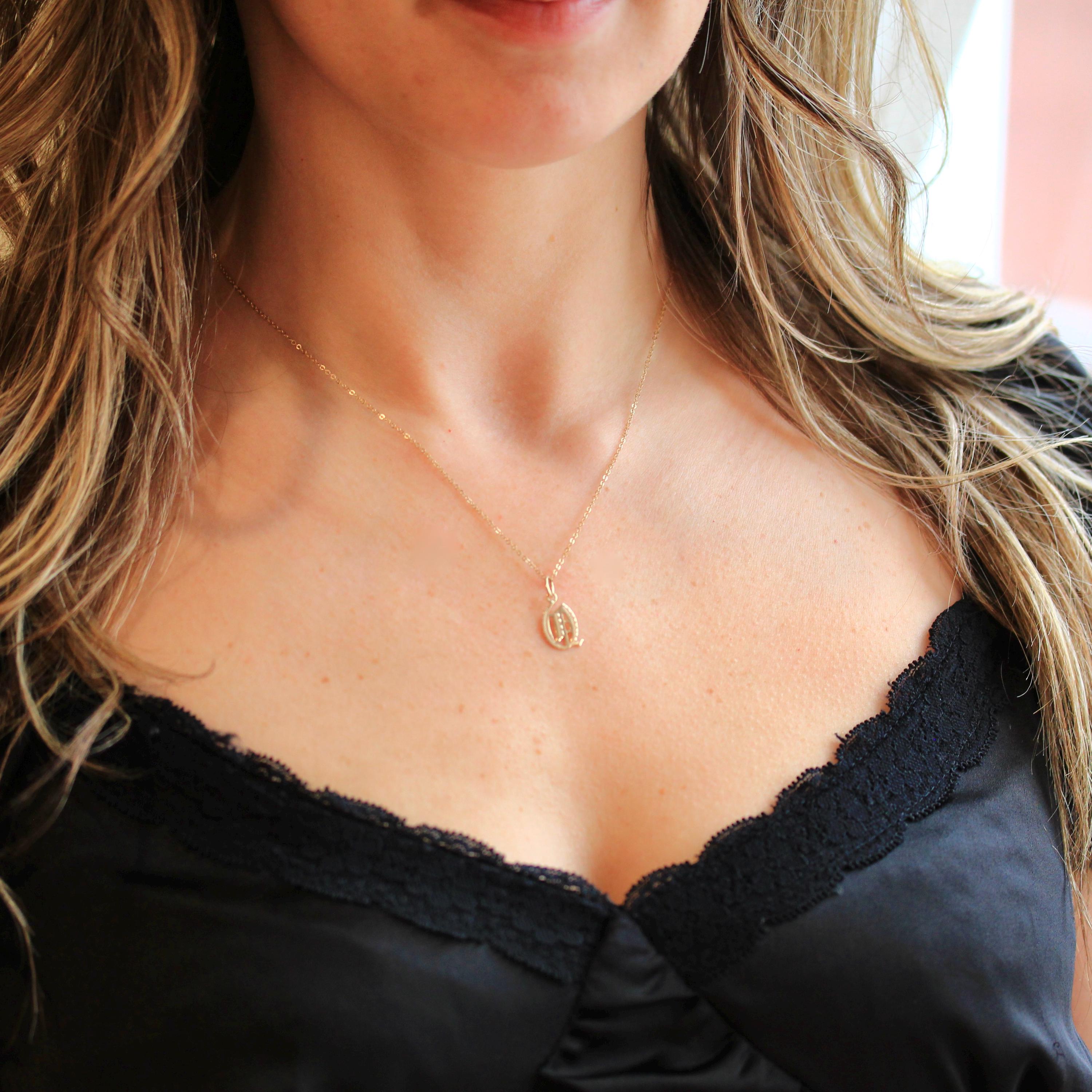 Timeless vintage circa 1930s era Art Deco letter "U" charm! The charm is solid 10k gold with a 14k gold bail, and is modeled on a 20 inch chain. Stunning piece of initial jewelry, by Ostby & Barton!
