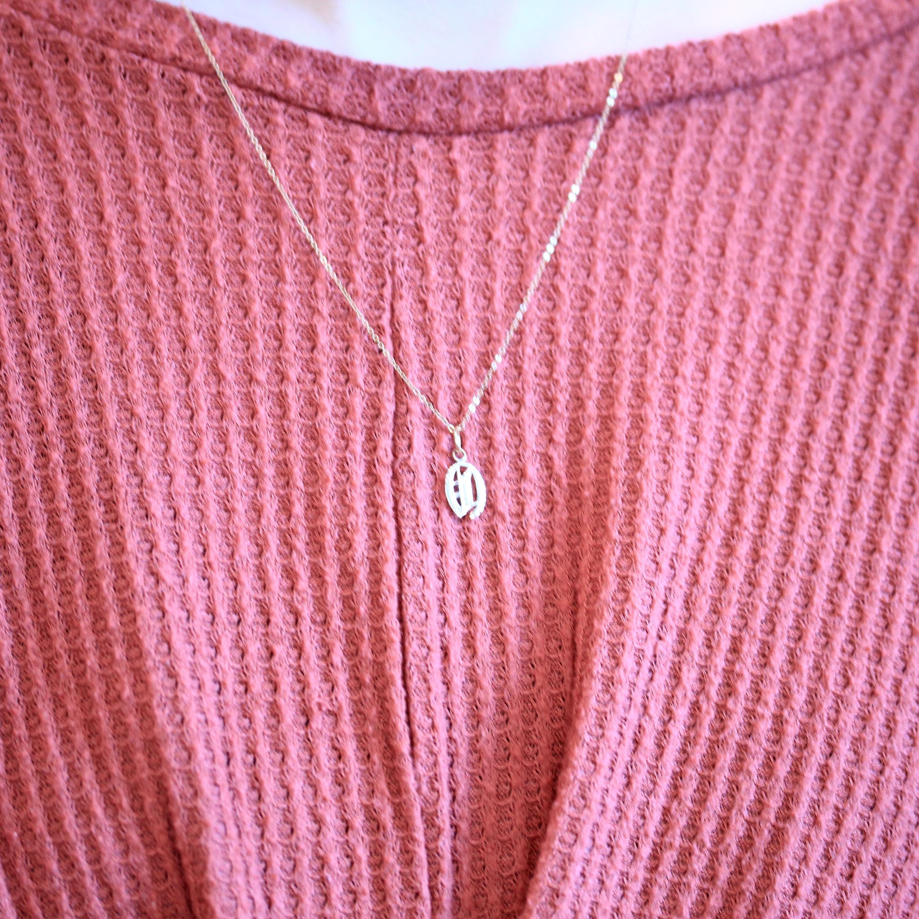 SIZE / MEASUREMENTS - Chain Modeled: 20 inches, Pendant (including bail): 20 mm in length, Weight (including bail): .35 grams