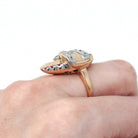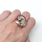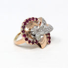 Retro Cocktail Ring - Vintage 10k Rose White Gold .76 CTW Genuine Diamonds Ruby Gems - Circa 1940s Era MCM Size 6 1/4 Cocktail Fine Jewelry