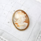Sale - Antike Kamee Brosche - Edwardianische 14 Karat Gelbgold geschnitzte Muschel Krieger Anstecknadel - Vintage circa 1910er Jahre Ära Mode Accessoire Edler Schmuck