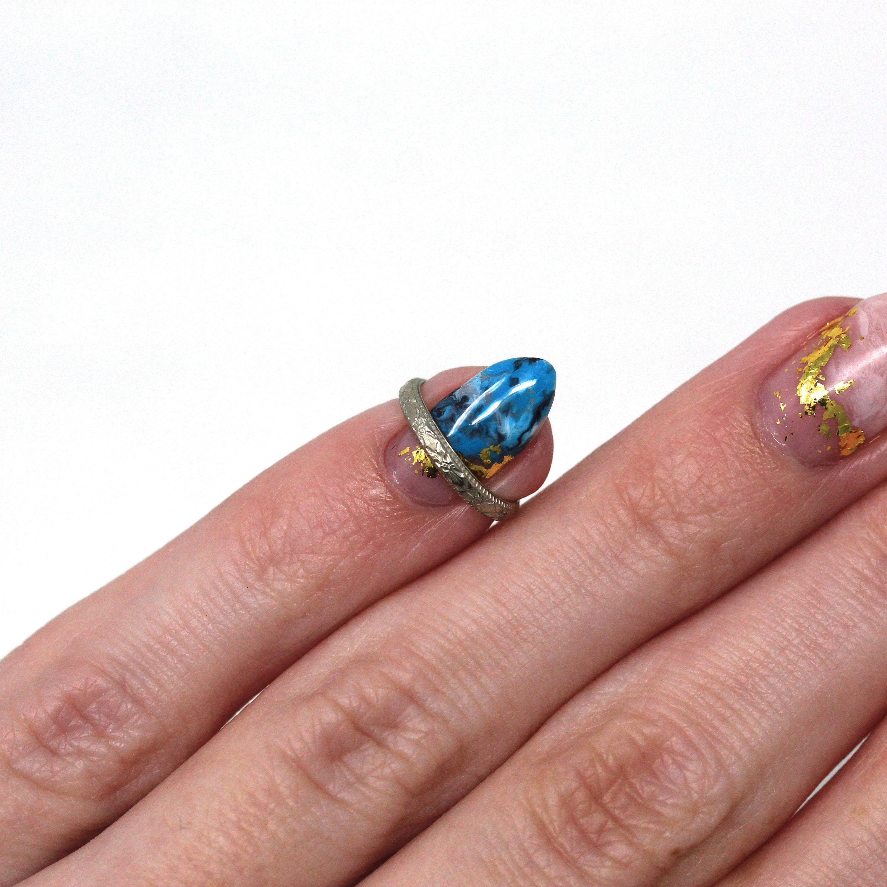 CONDITION - Good vintage condition. White gold metal has been professionally polished & cleaned. Amazing vintage baby ring!