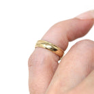 Cute vintage 14k yellow gold baby band! This adorable little ring has a simplistic half domed style, and is free of design with a high polished border. This petite band would be a lovely midi/pinky ring, a necklace charm or would make a darling gift for a baby. A sweet and versatile piece of fine vintage jewelry!