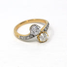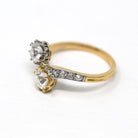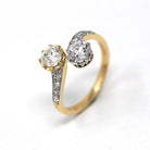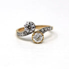Vintage Engagement Ring - Edwardian Era 18k Yellow Gold Platinum - 1.14 CTW Diamonds Bypass - Toi Et Moi 1910s Size 6 1/4 Jewelry w/ Report