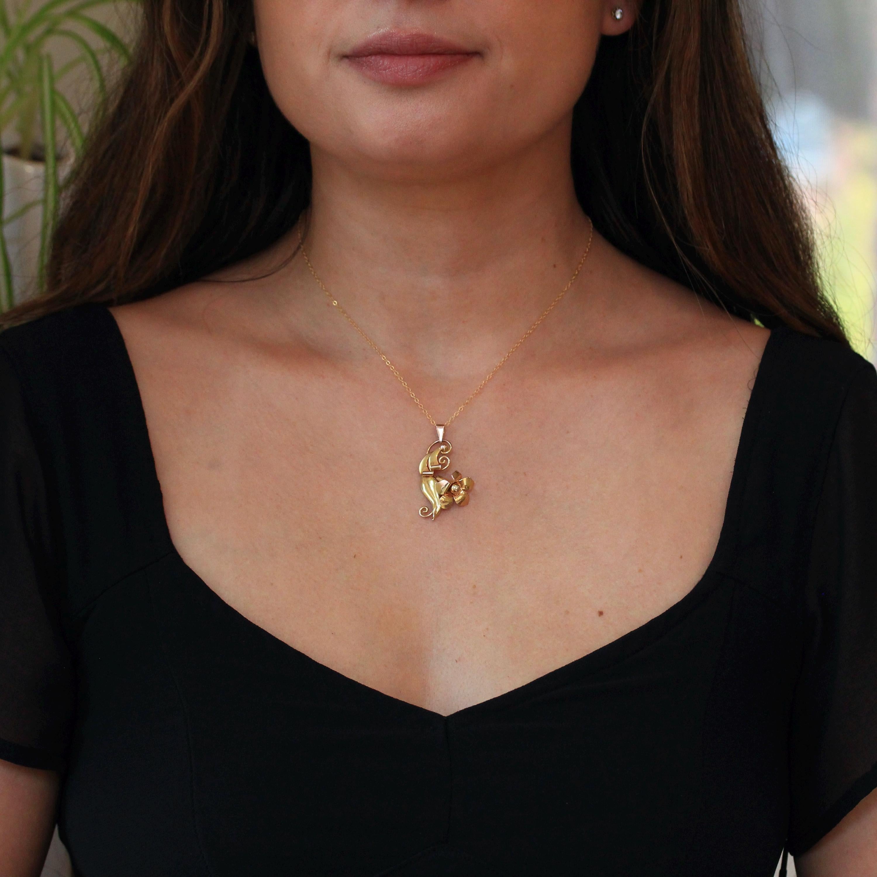 Vintage Flower Pendant - Retro 10k Two Tone Rose & Yellow Gold Necklace - Circa 1940s Era Trumpet Floral Carl Art Accessory Fine Jewelry