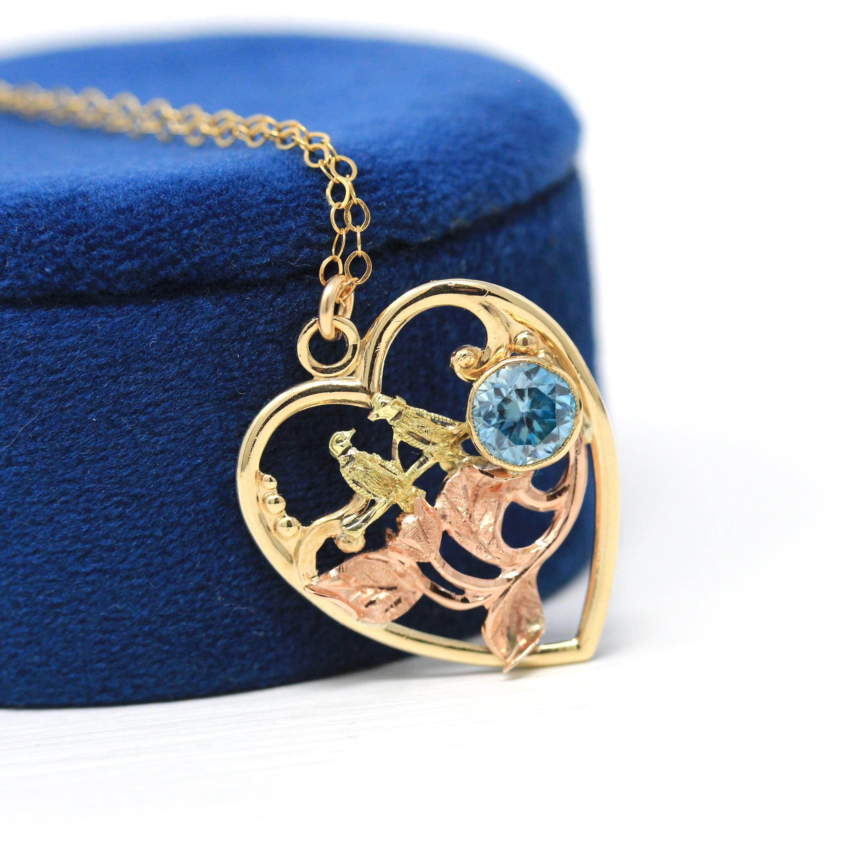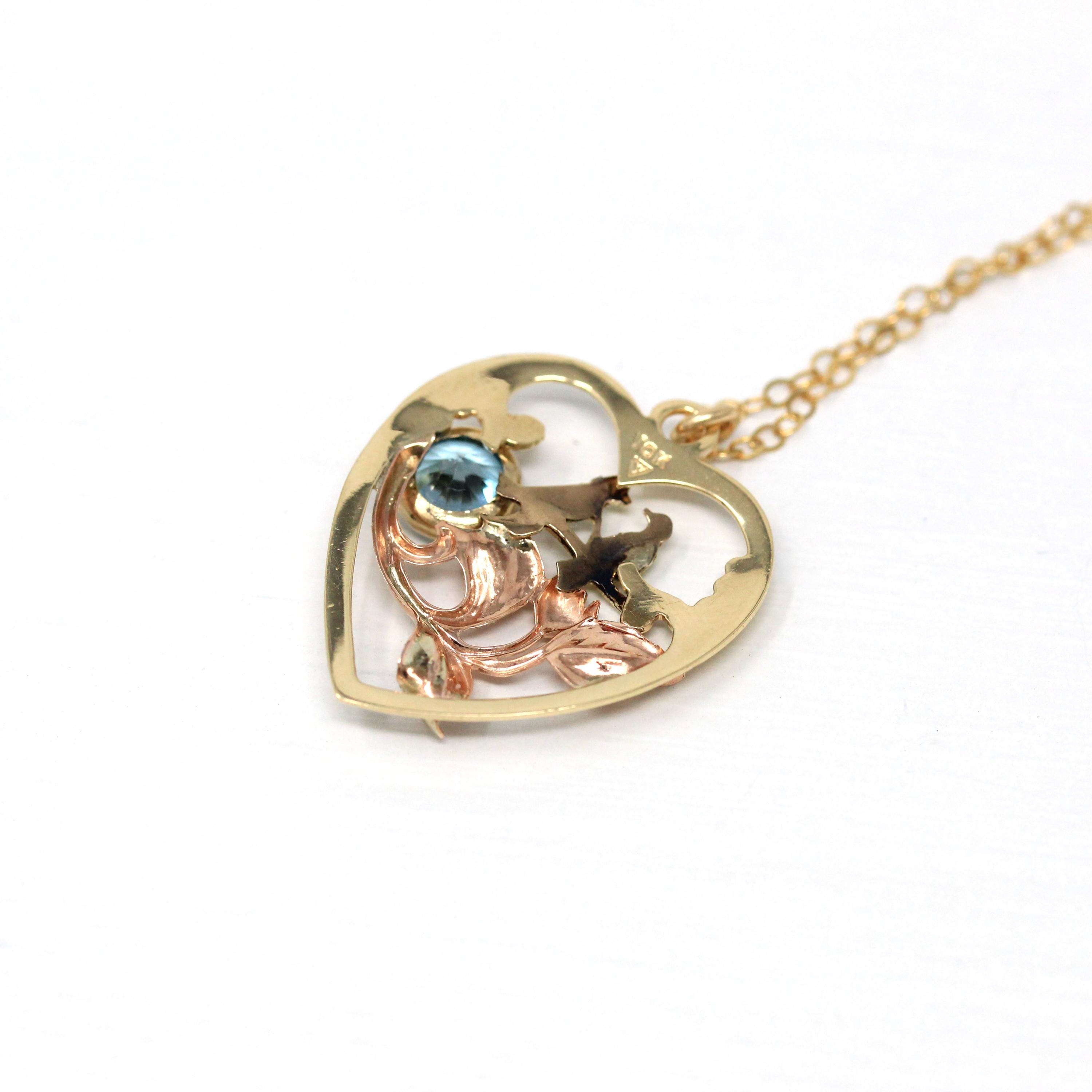 Turquoise Heart Necklace - Antique Edwardian 18k Yellow Gold Large Blue Statement Charm Pendant - Vintage Circa 1910s Era Love Fine Jewelry