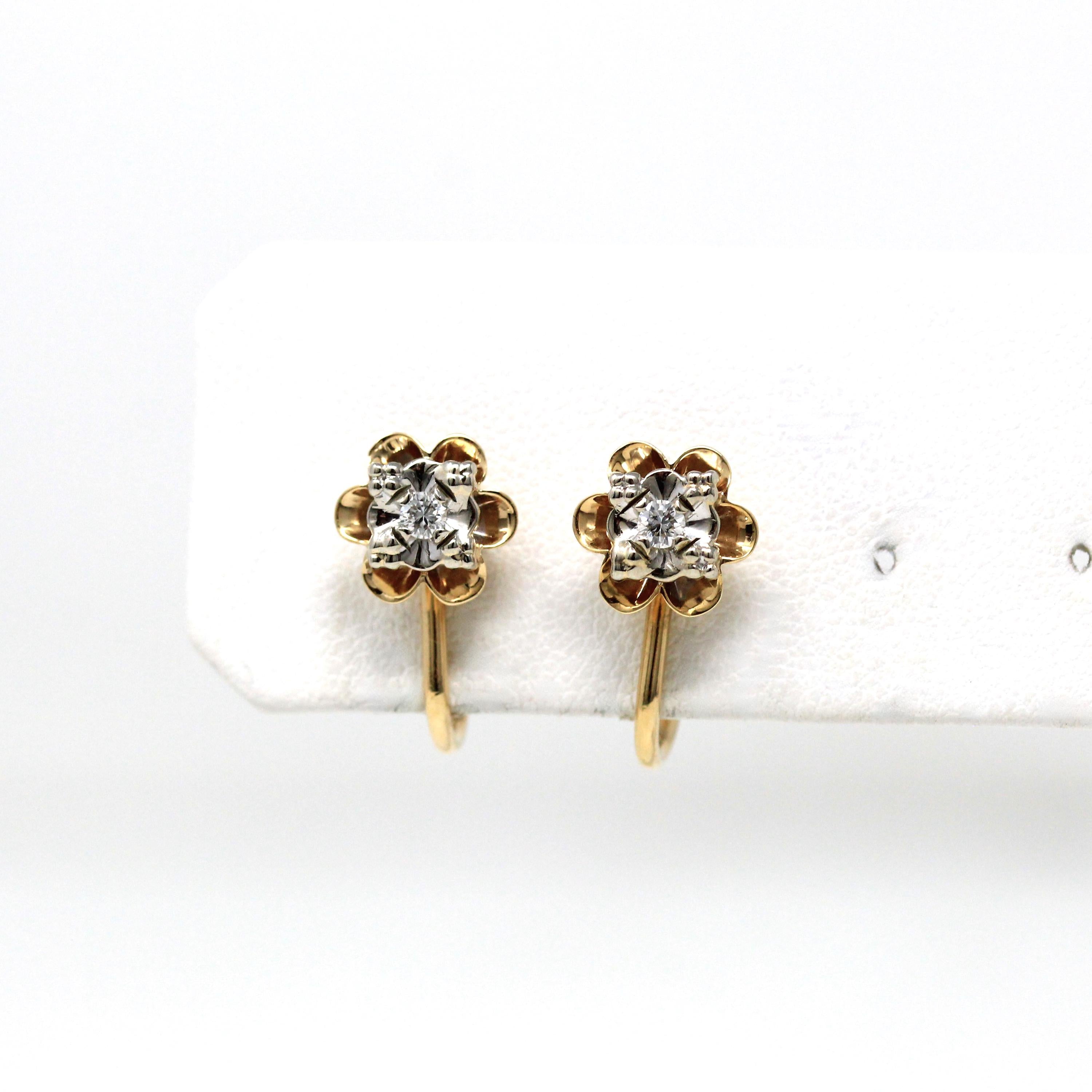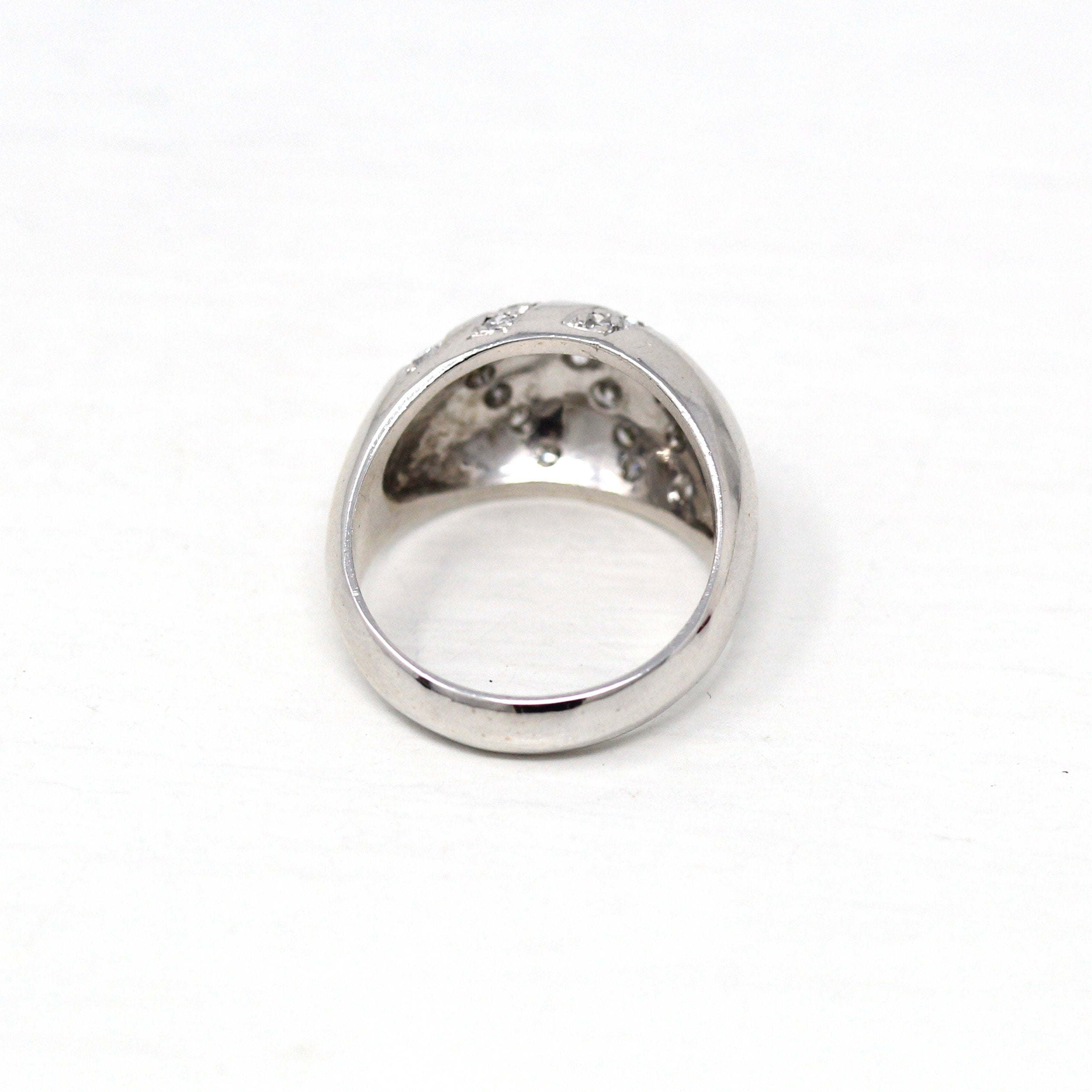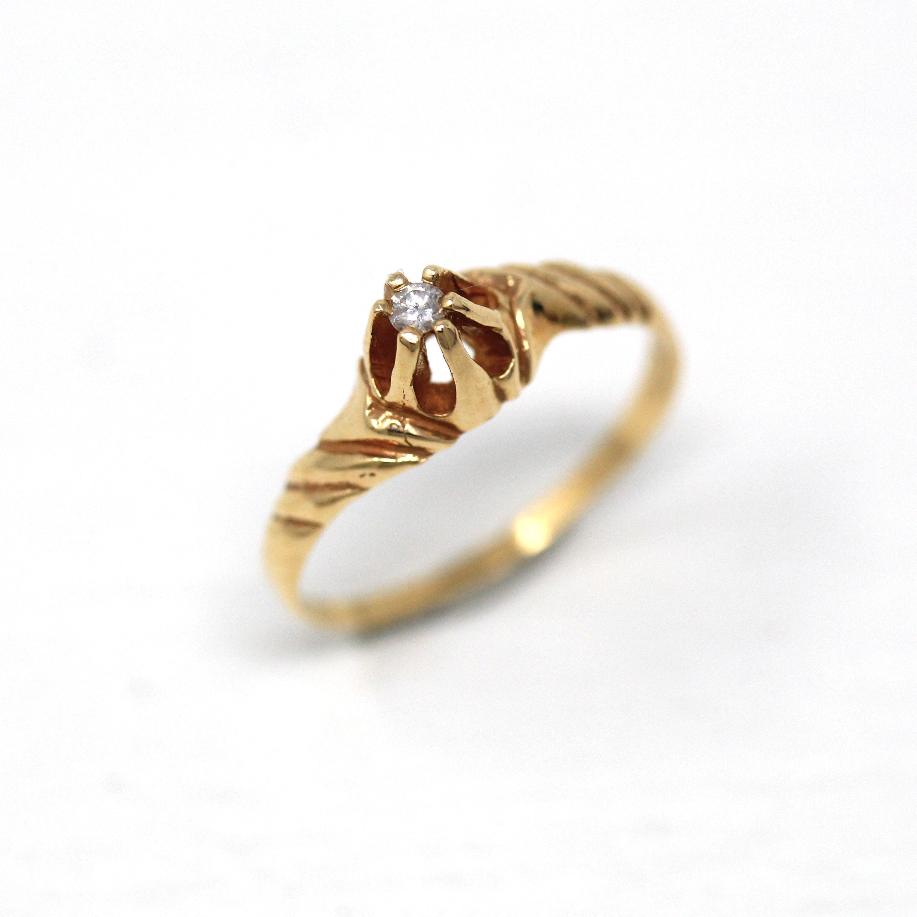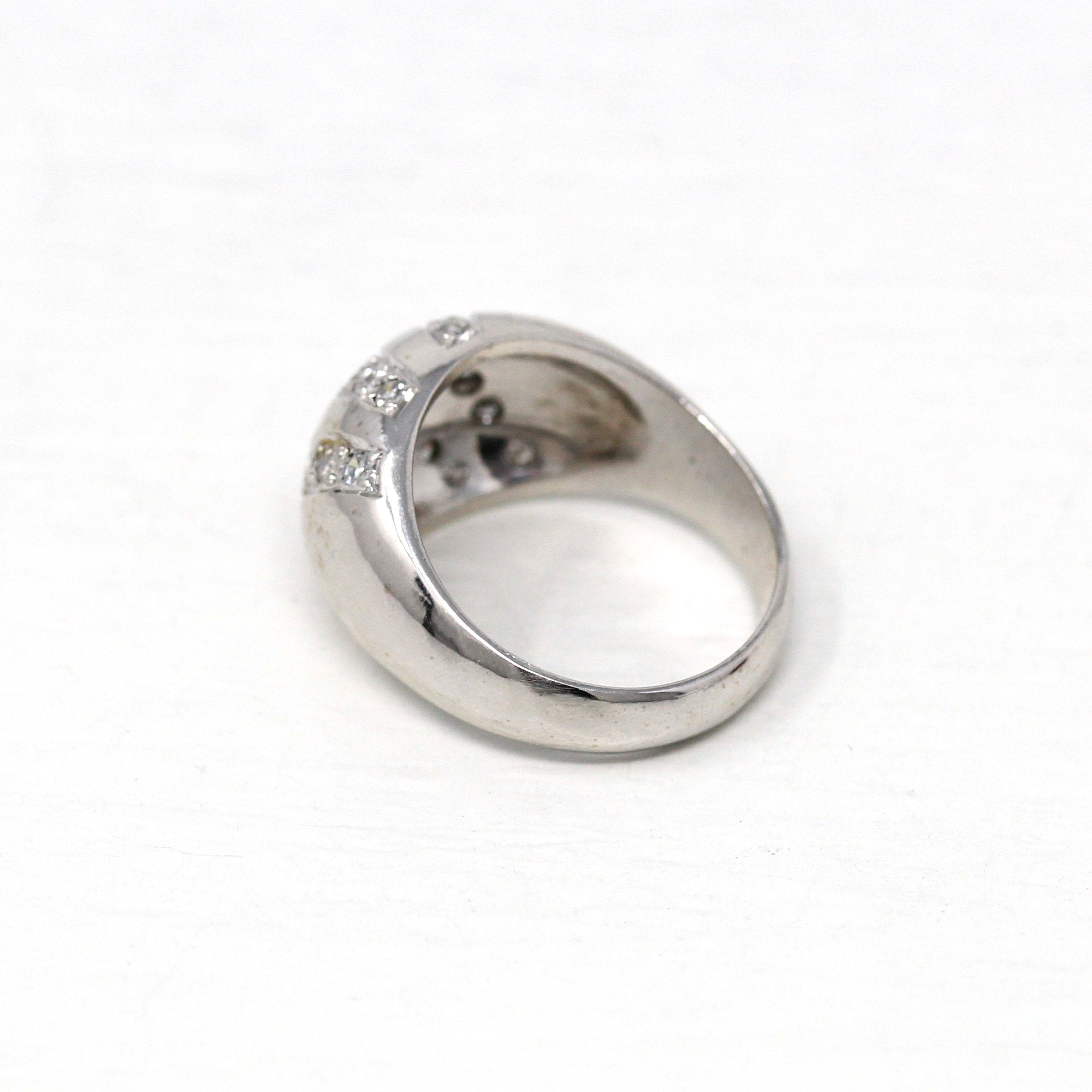 Three Stone Ring - Retro 18k Yellow Gold & Platinum Diamond Ring - Vintage Circa 1960s Era Size 6 1/4 Engagement Anniversary Fine Jewelry