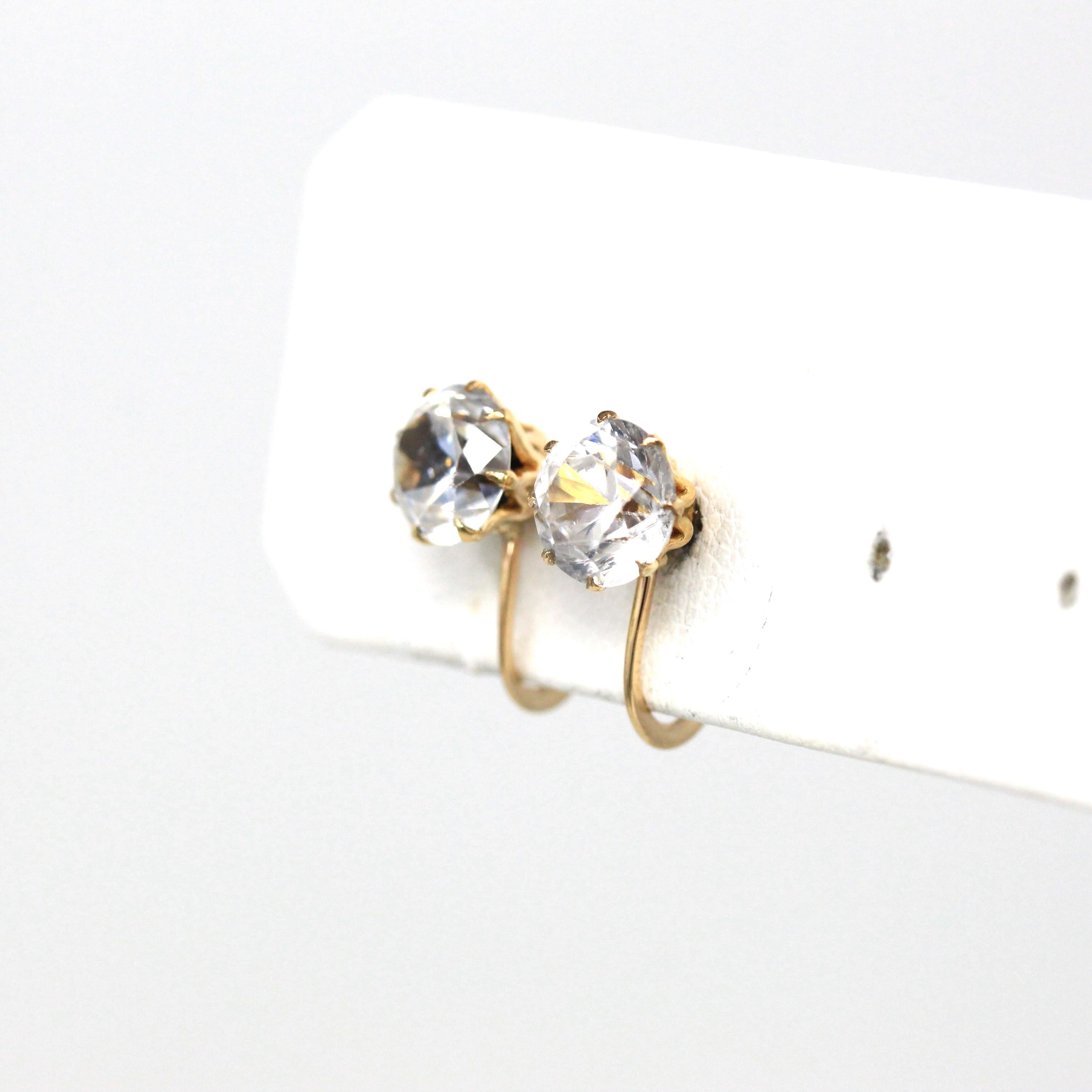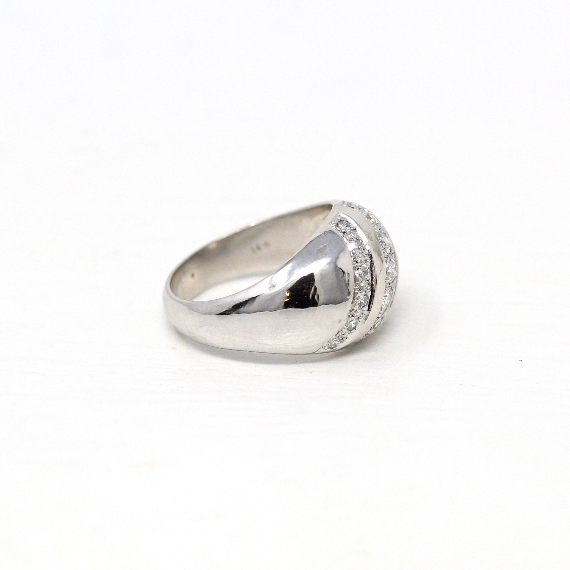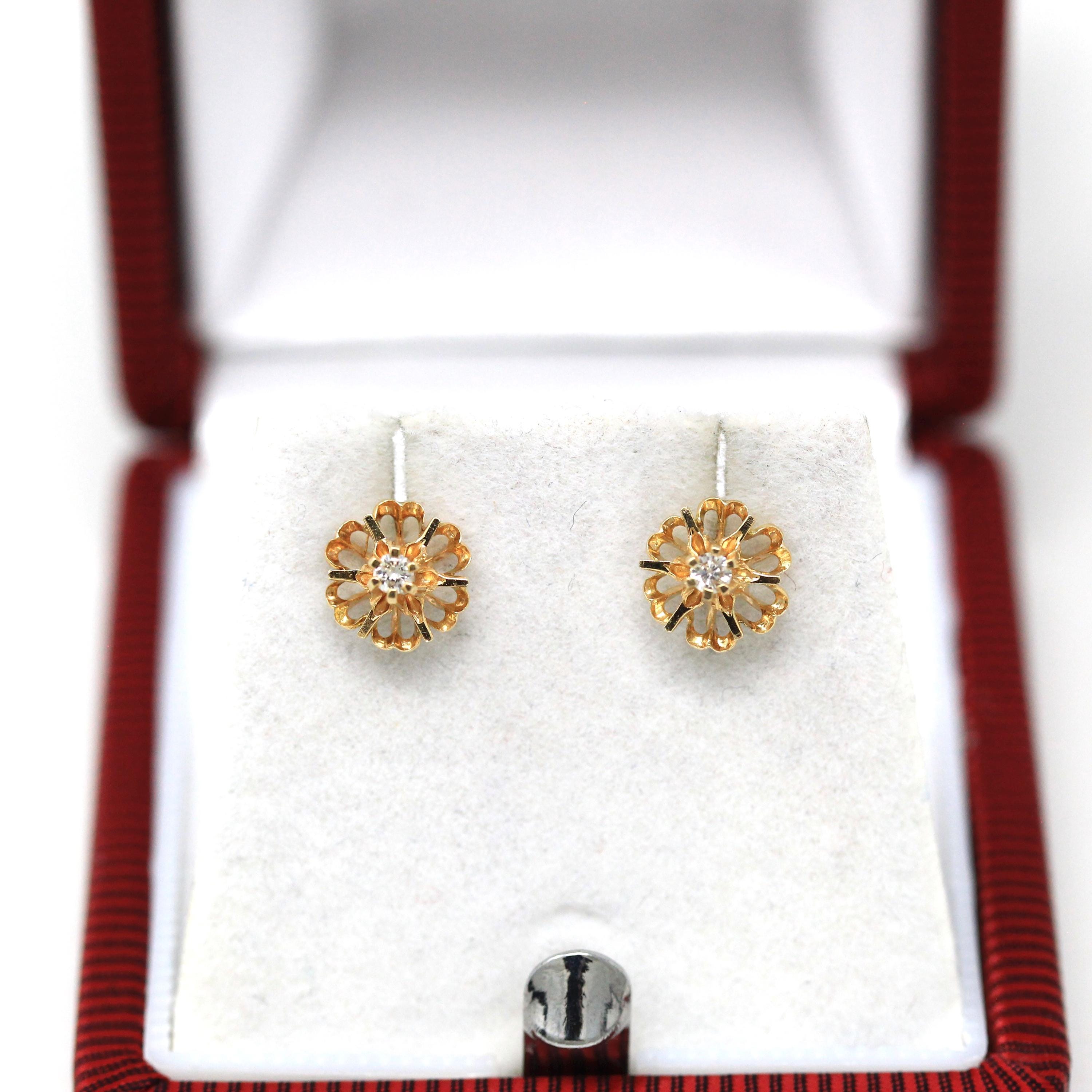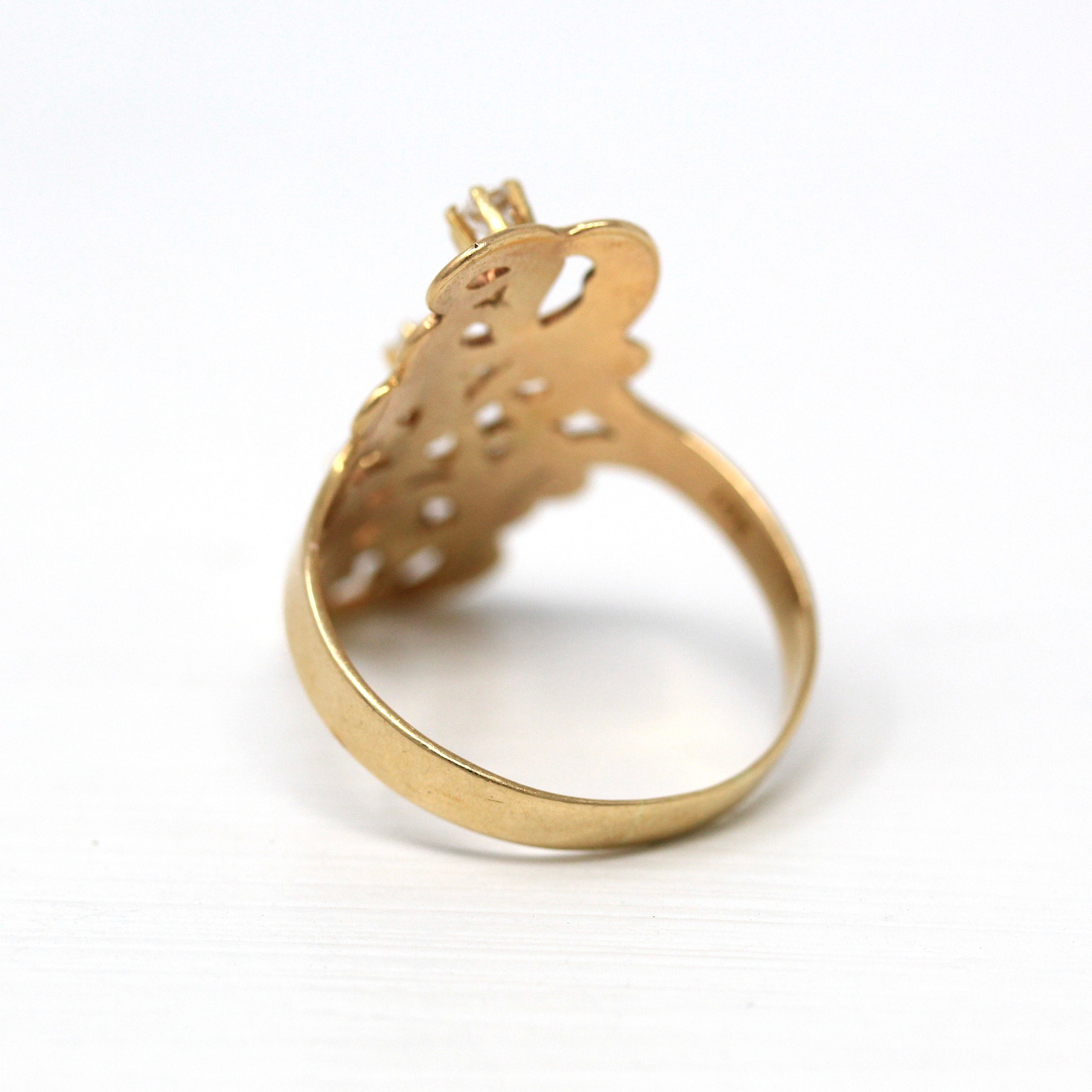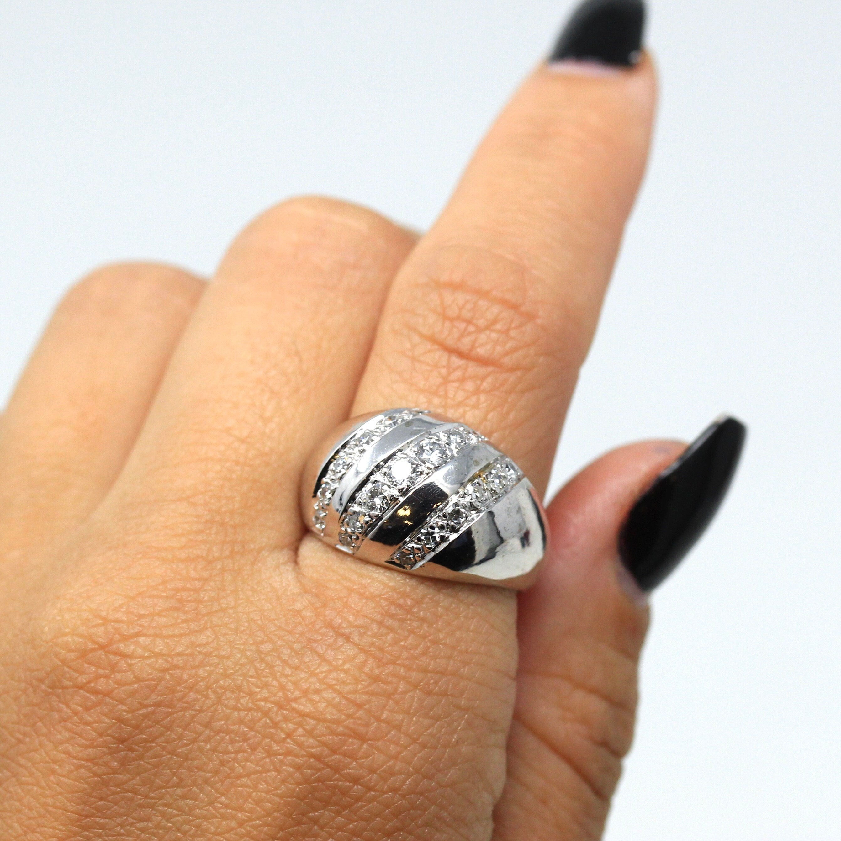 Three Stone Ring - Retro 18k Yellow Gold & Platinum Diamond Ring - Vintage Circa 1960s Era Size 6 1/4 Engagement Anniversary Fine Jewelry