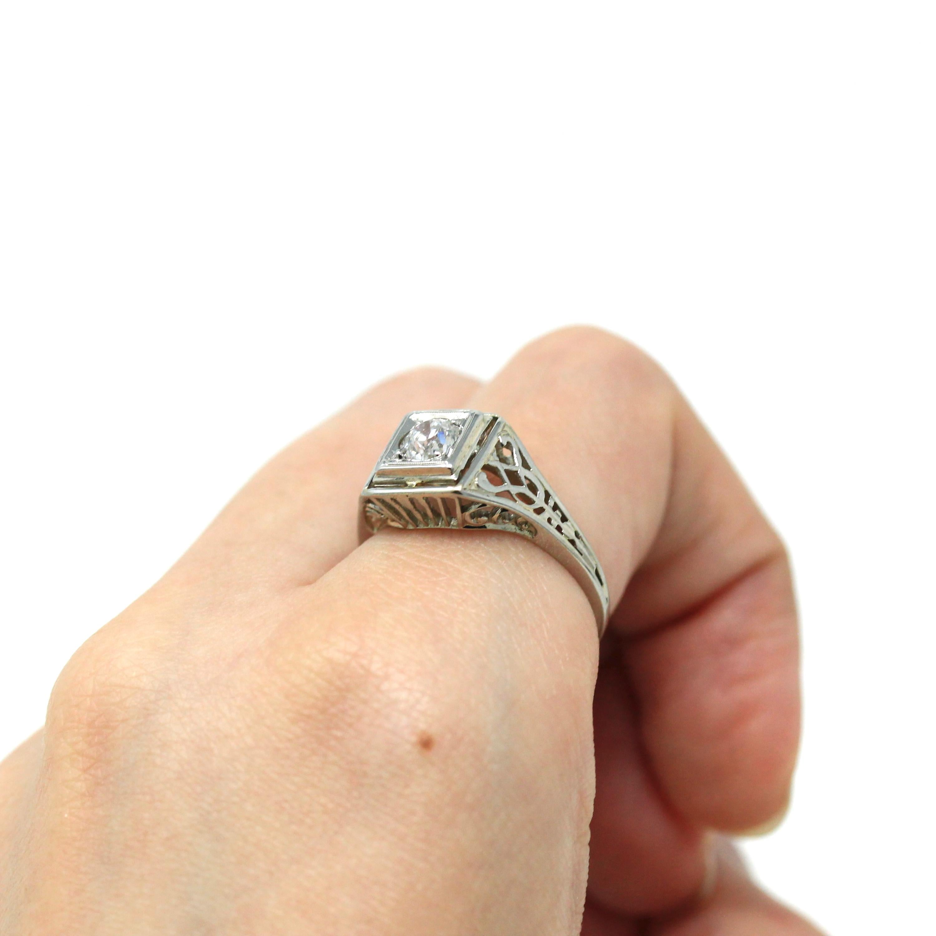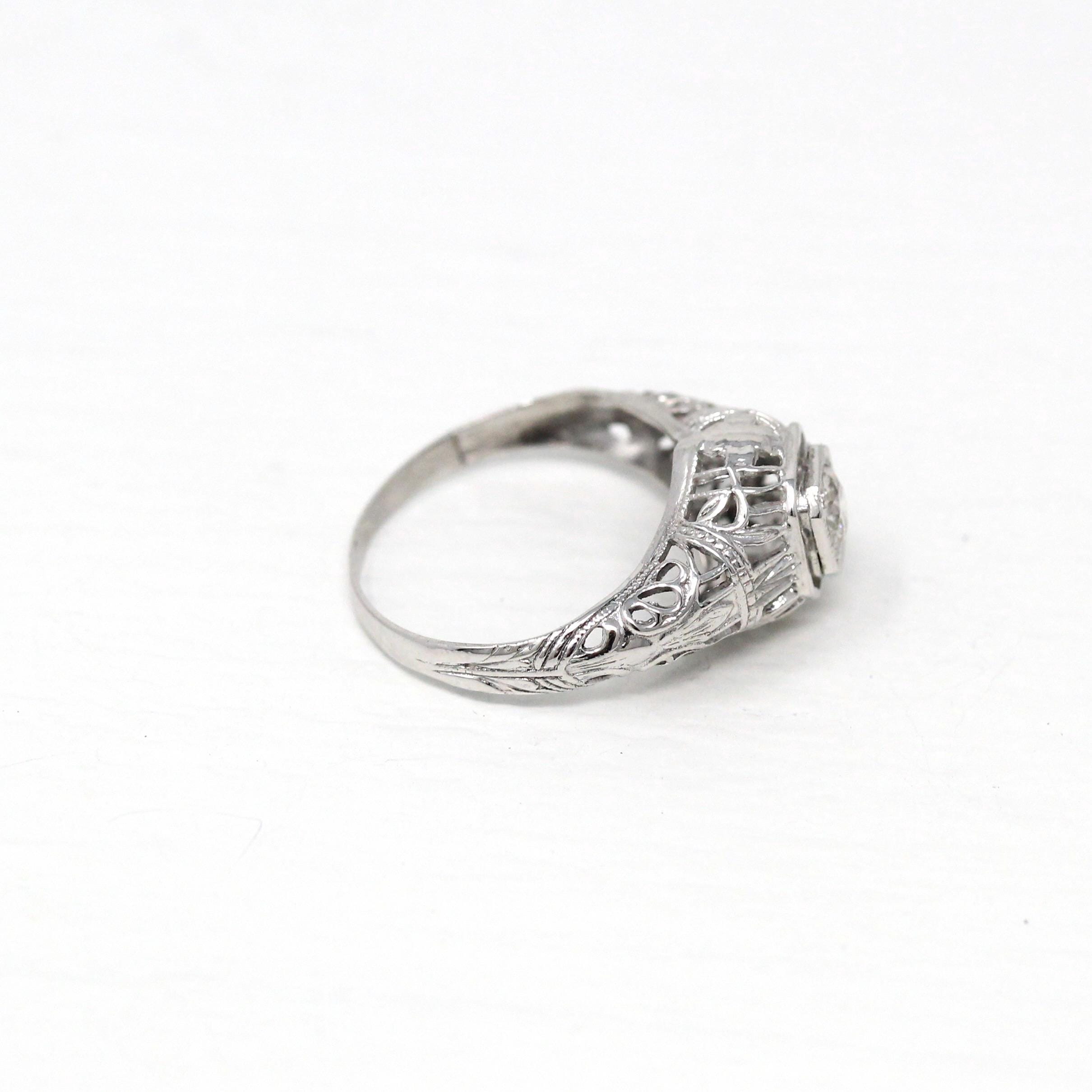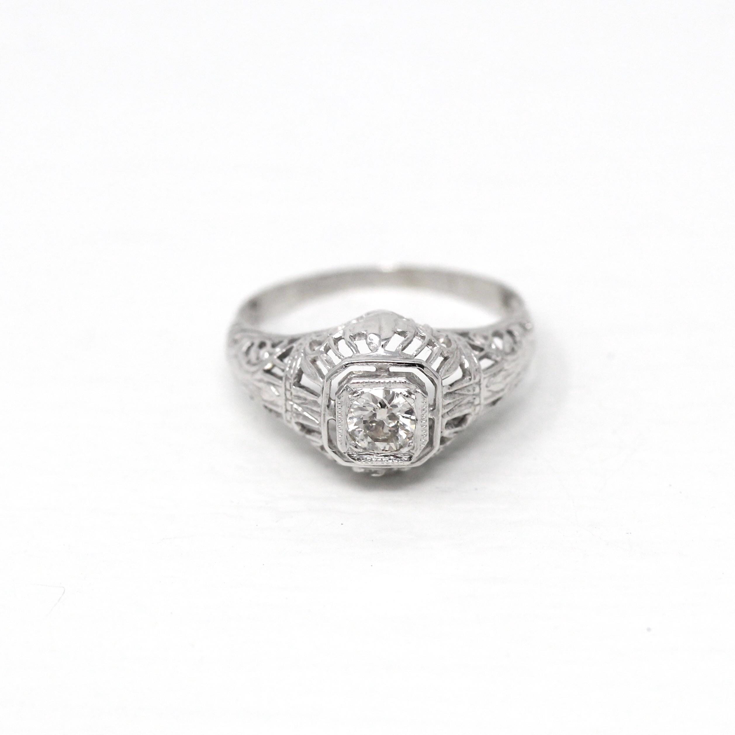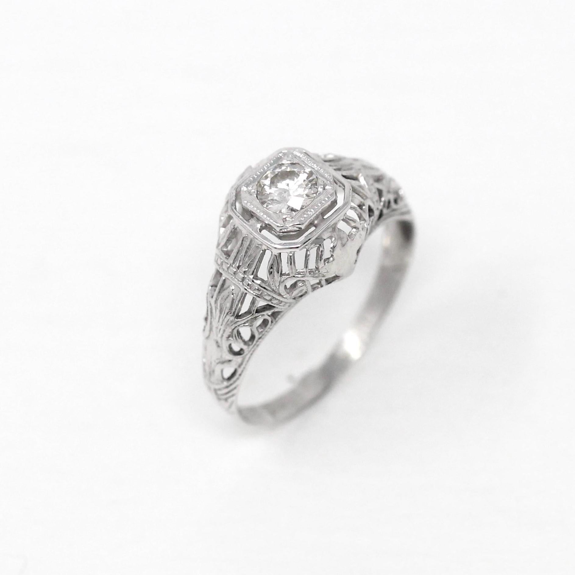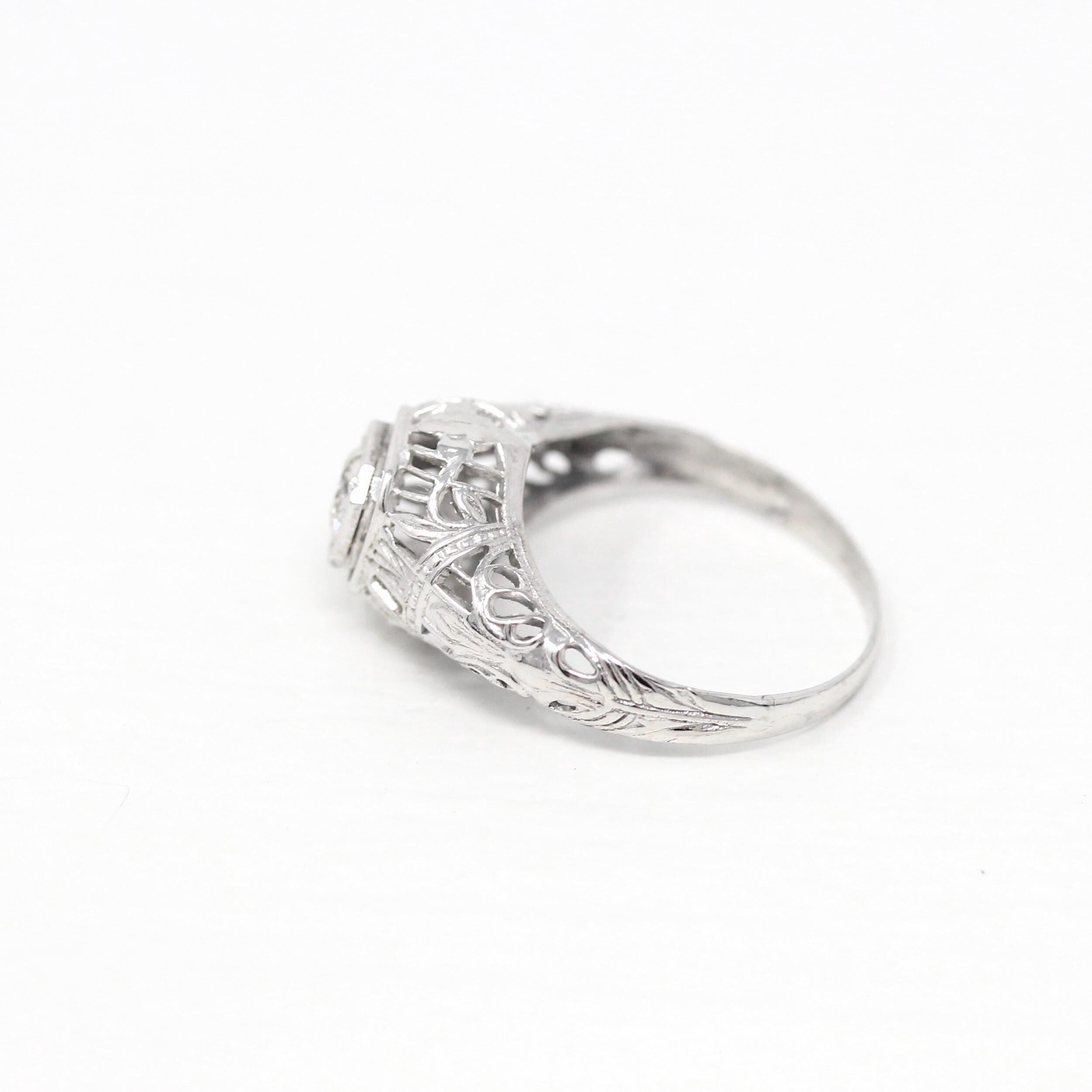 Venta - Broche Art Déco - Filigrana antigua de oro blanco de 14 k Genuino .02 CT Antiguo Pin de diamante europeo - Circa 1920s Era Joyería de accesorios de moda