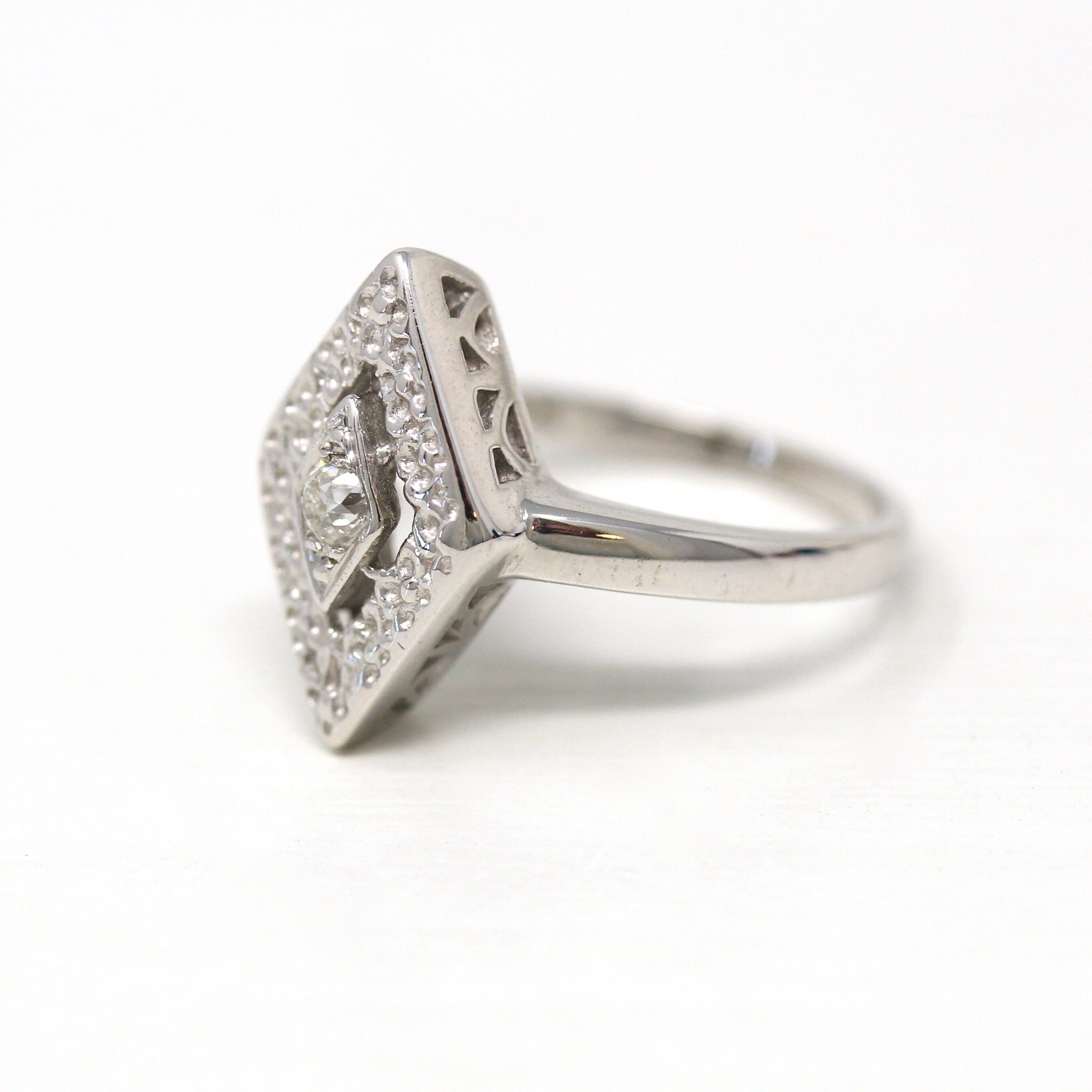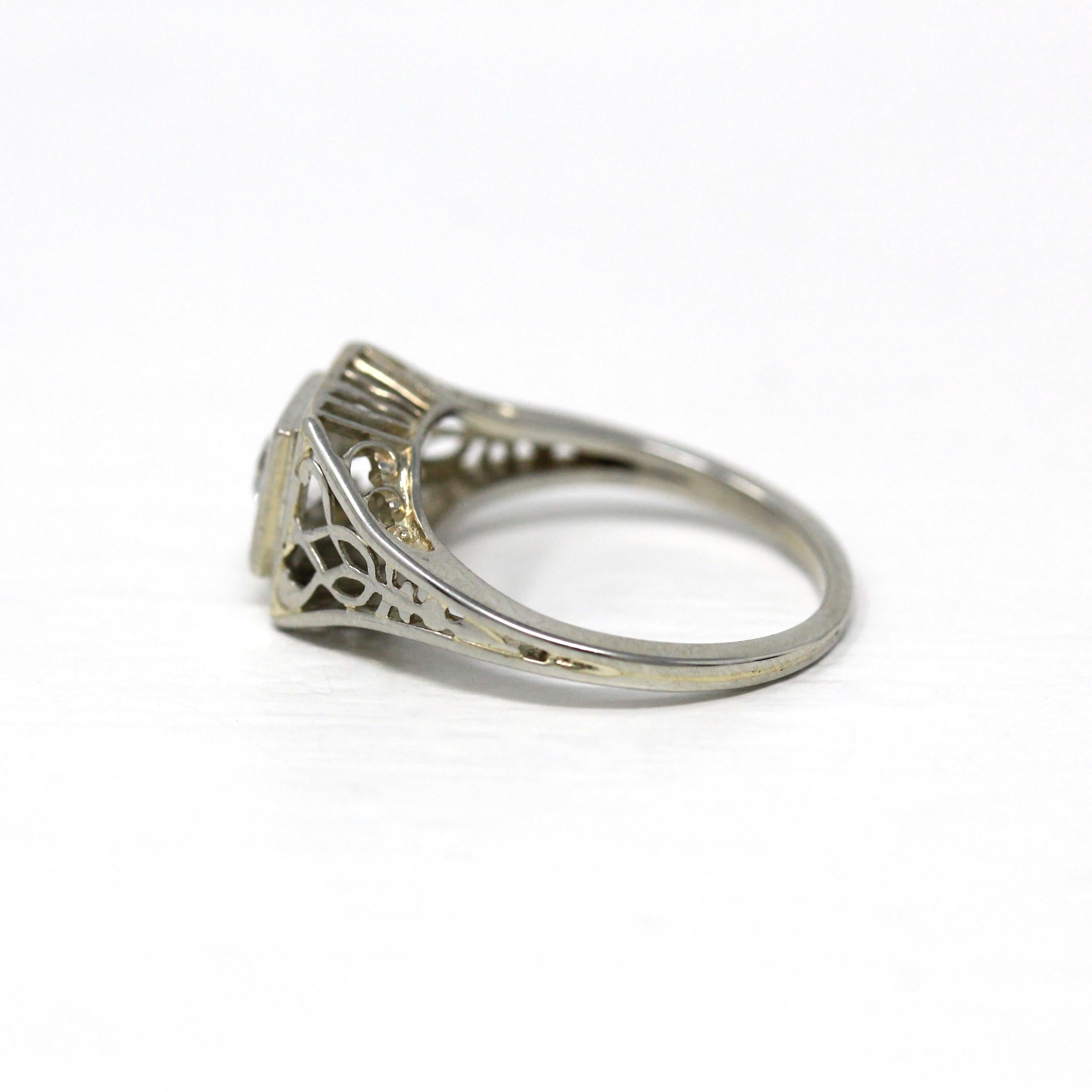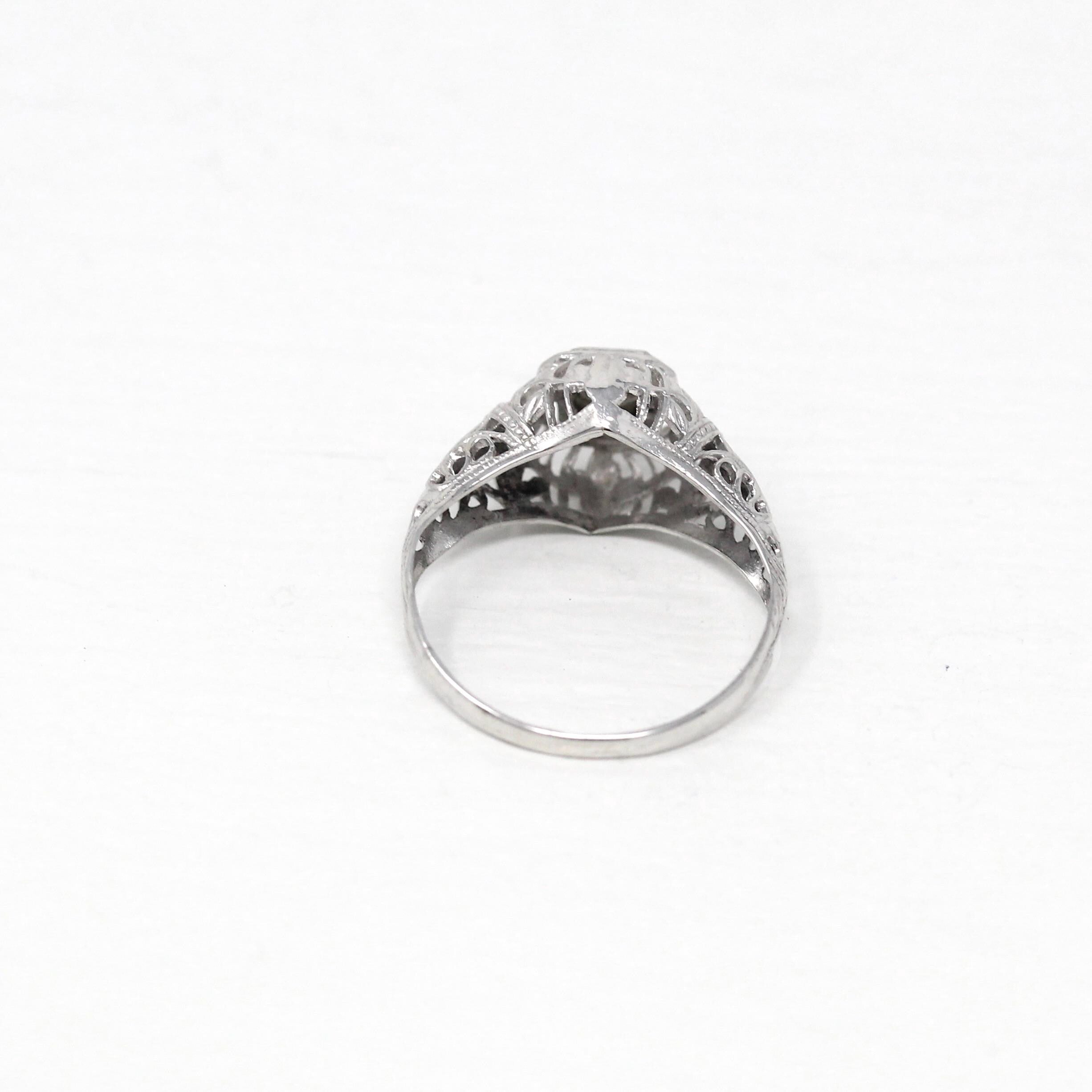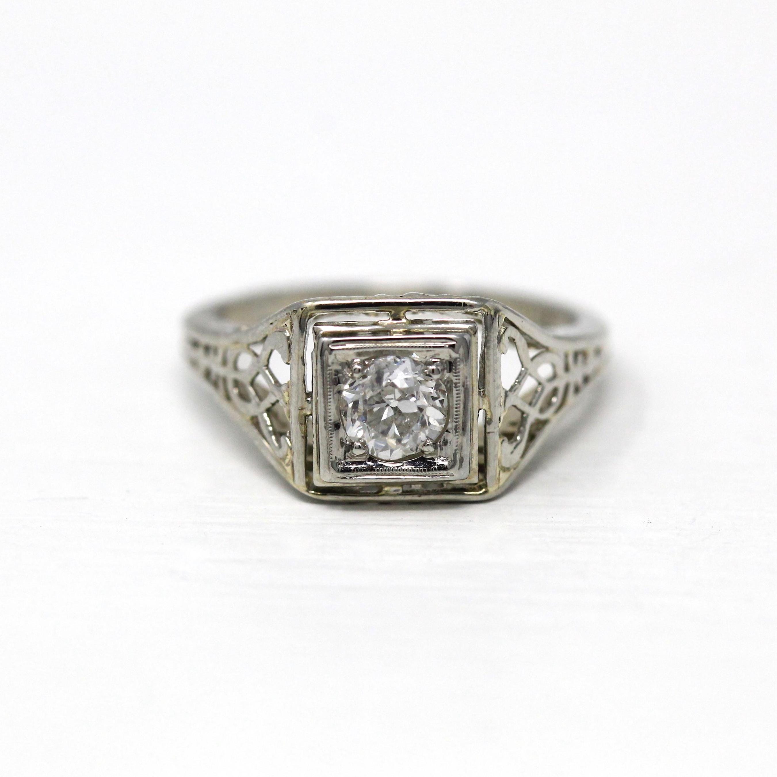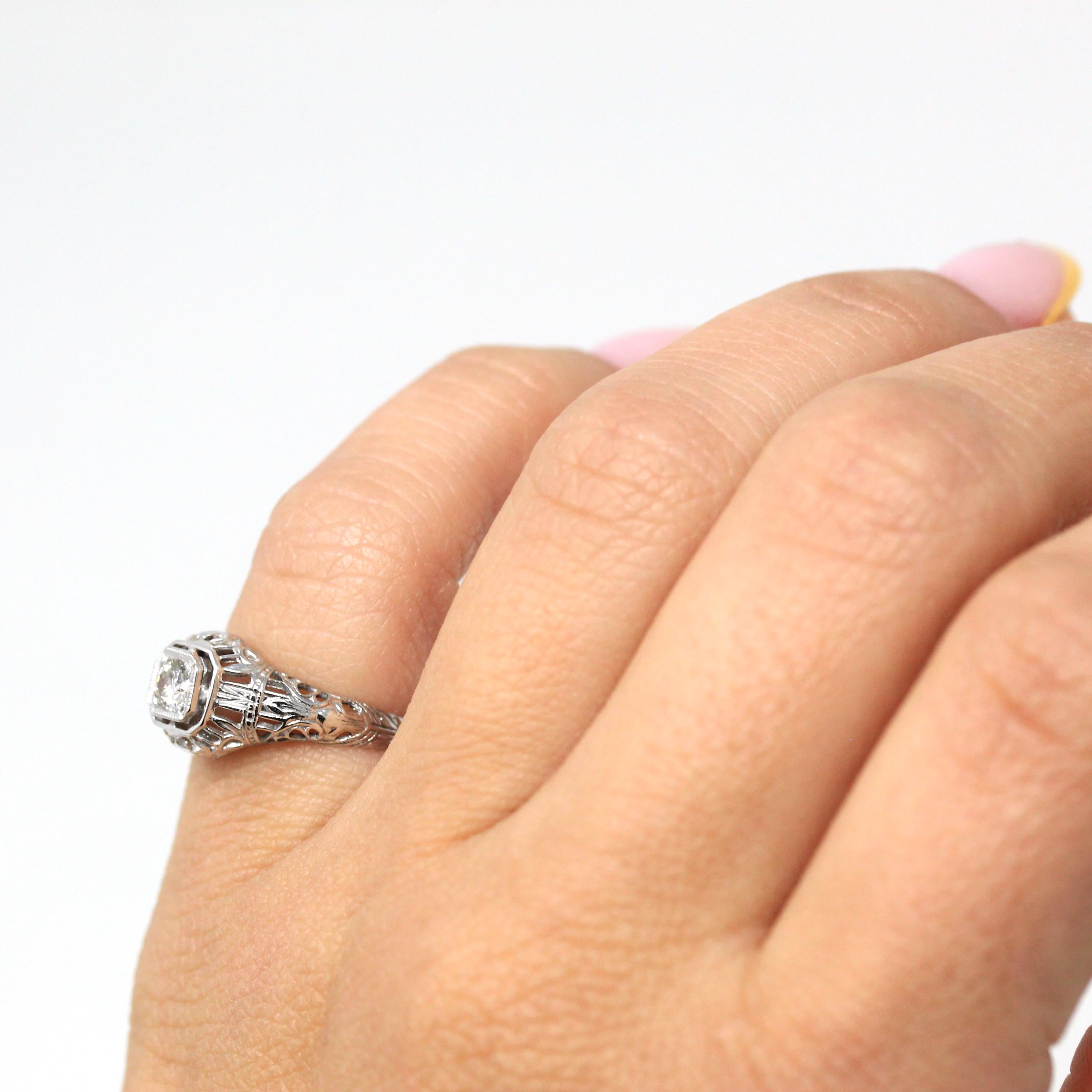 Venta - Broche Art Déco - Filigrana antigua de oro blanco de 14 k Genuino .02 CT Antiguo Pin de diamante europeo - Circa 1920s Era Joyería de accesorios de moda