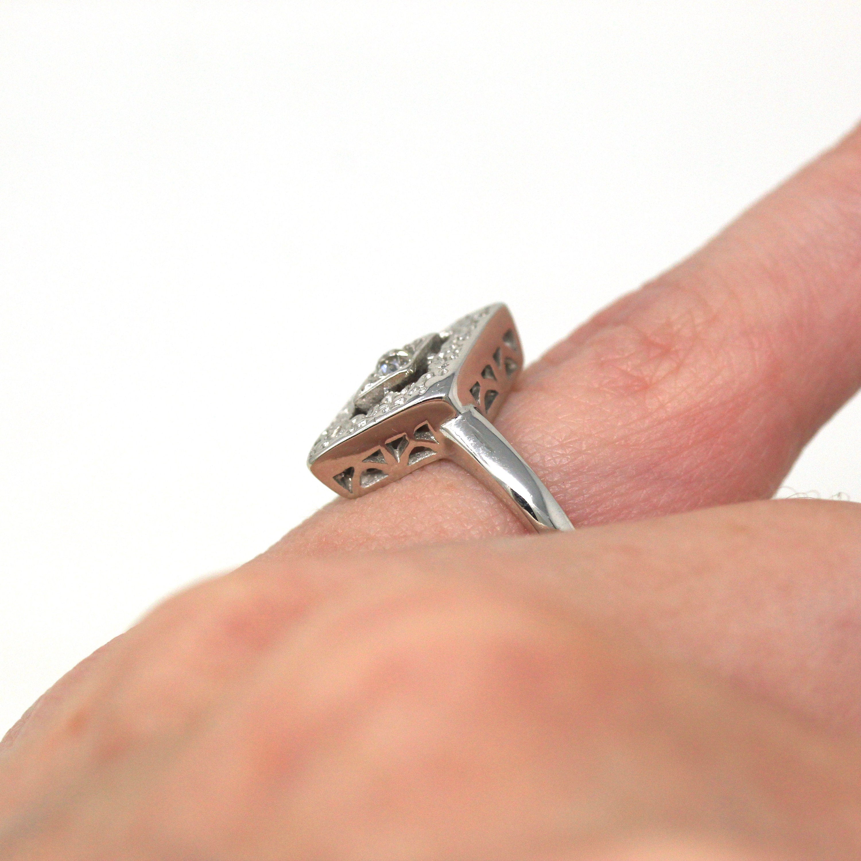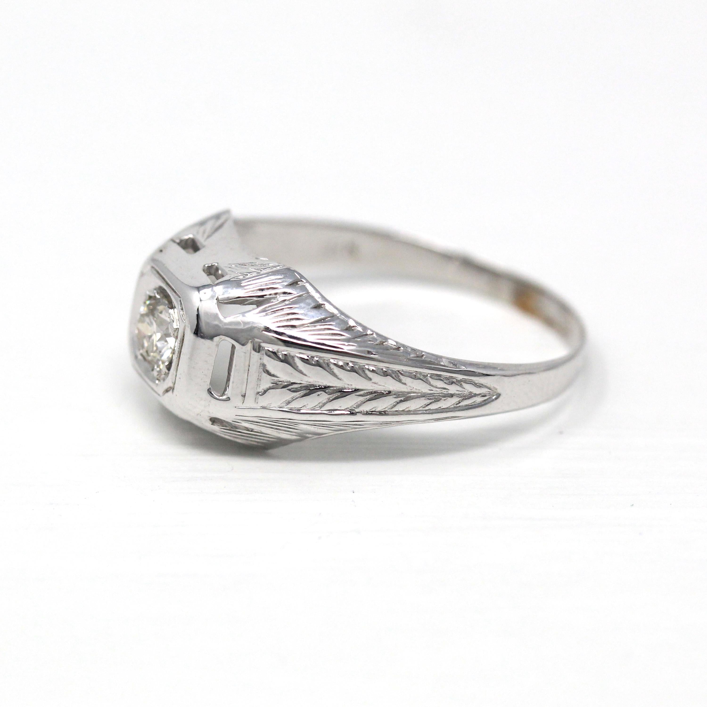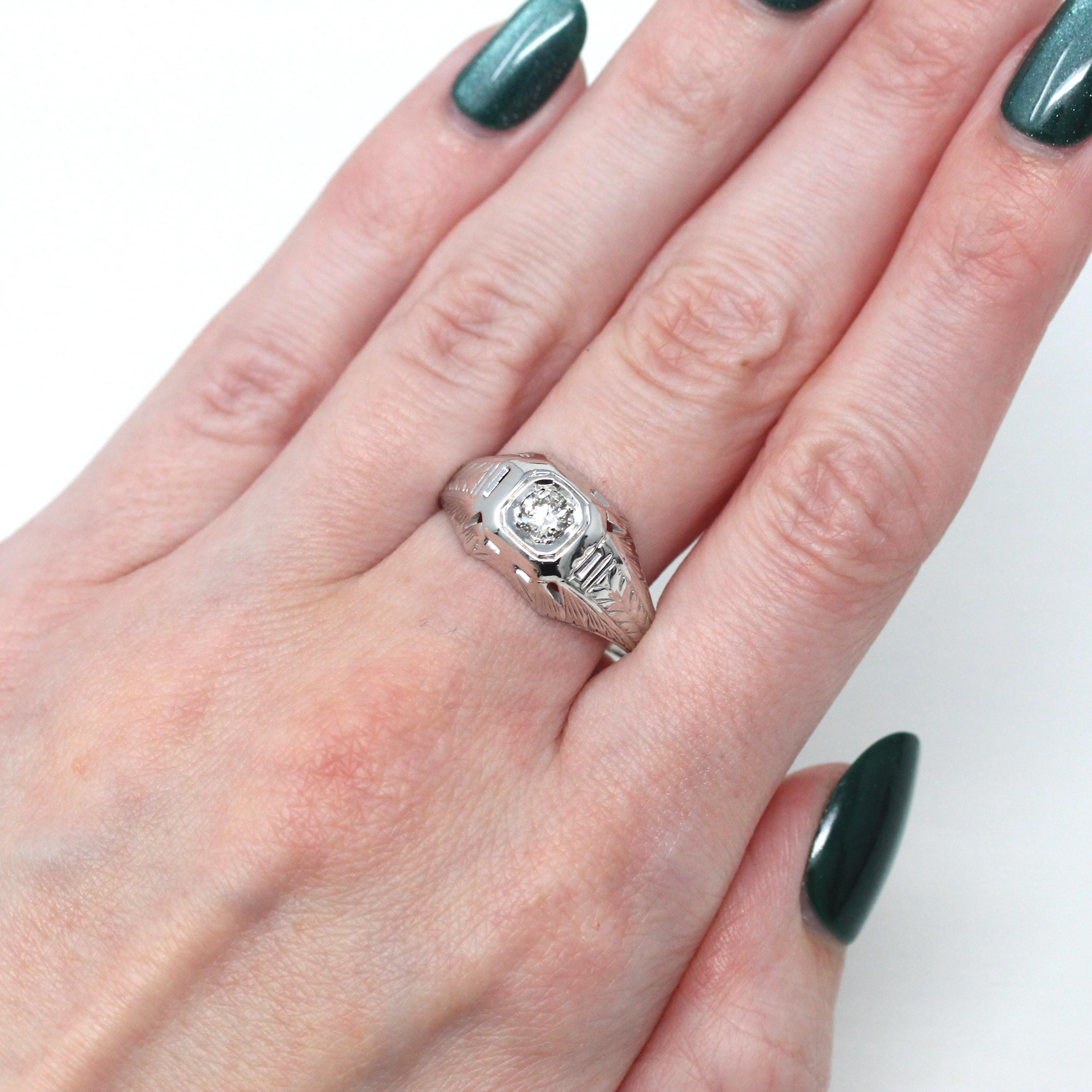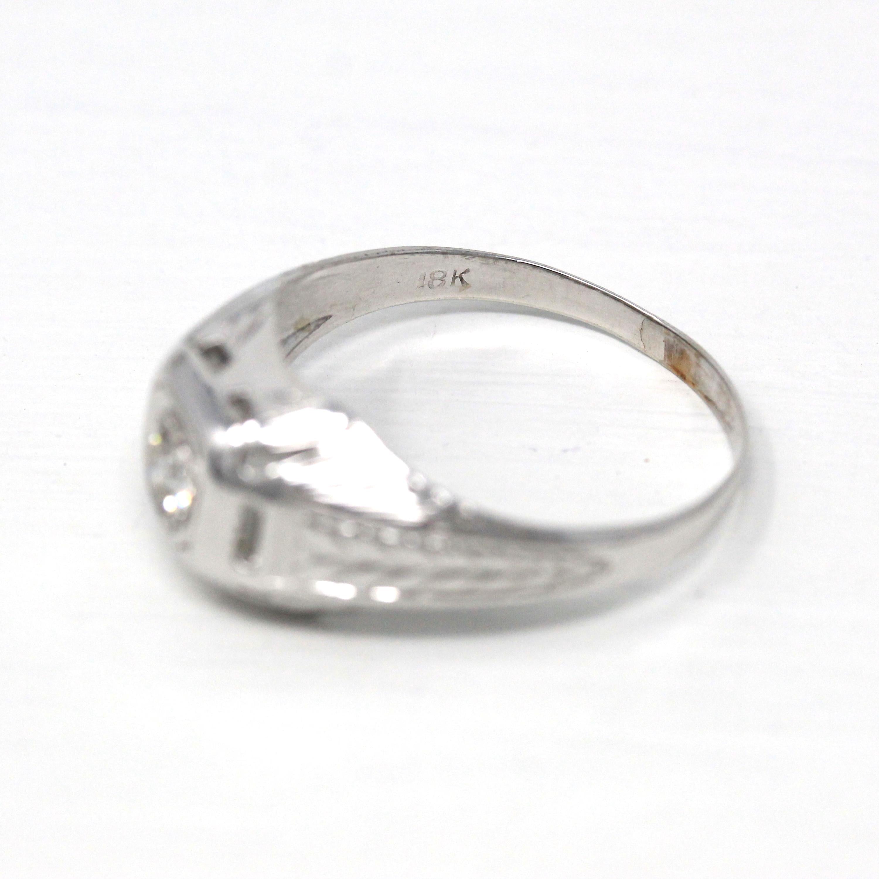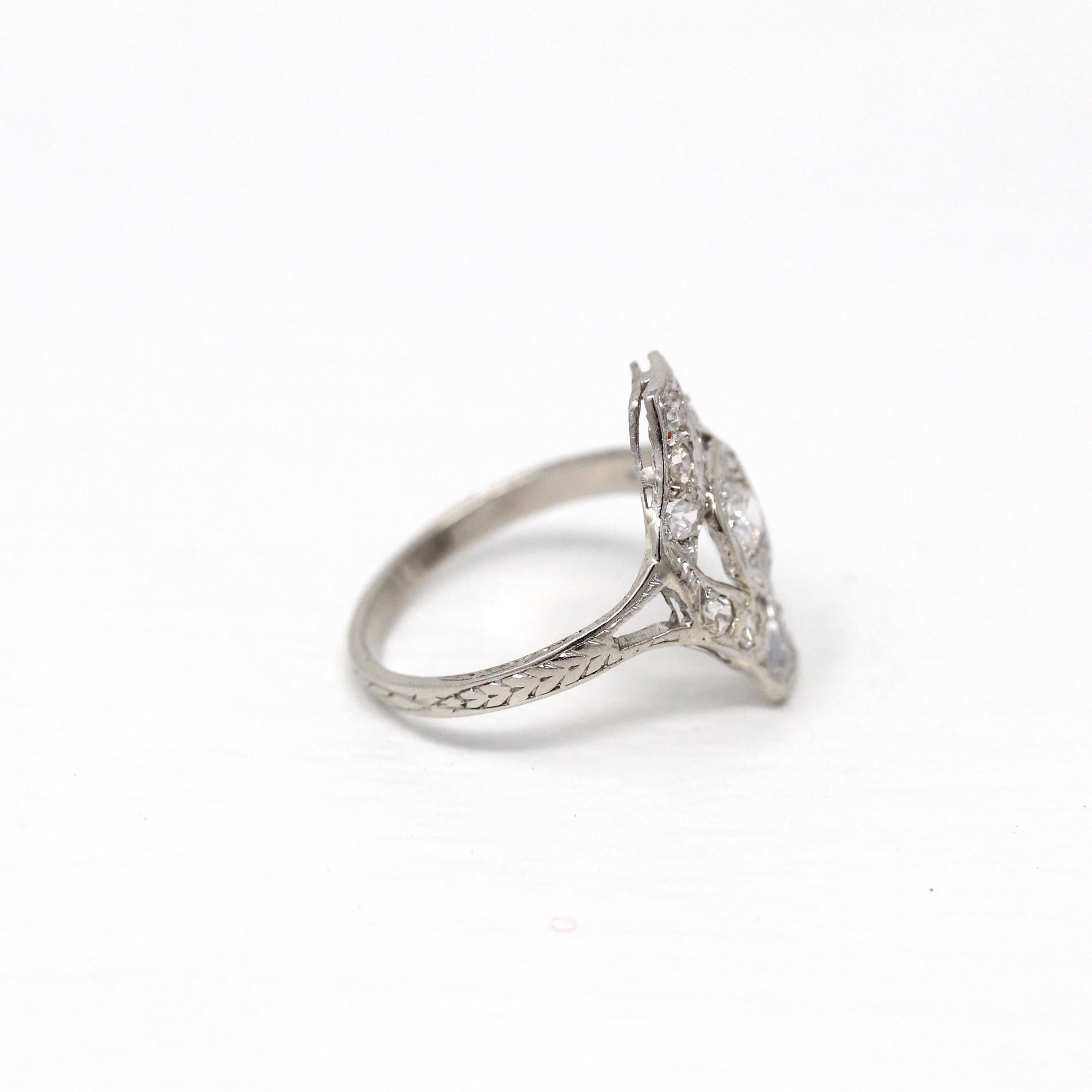 Venta - Broche Art Déco - Filigrana antigua de oro blanco de 14 k Genuino .02 CT Antiguo Pin de diamante europeo - Circa 1920s Era Joyería de accesorios de moda