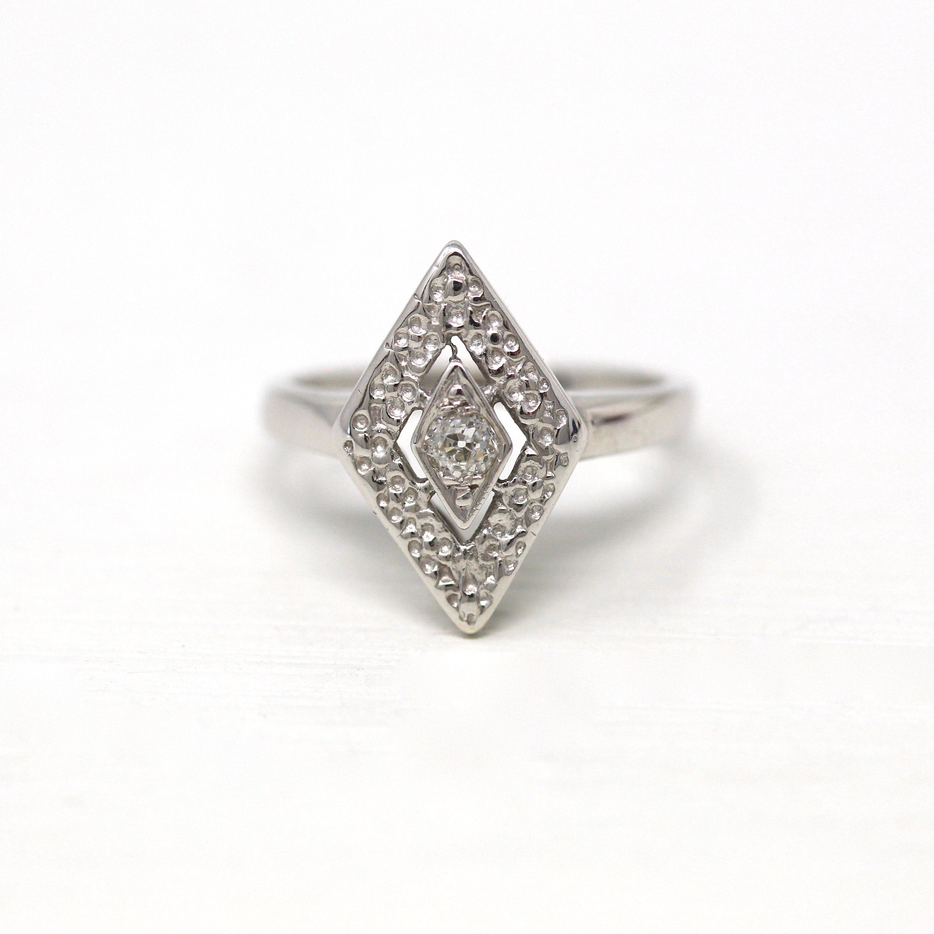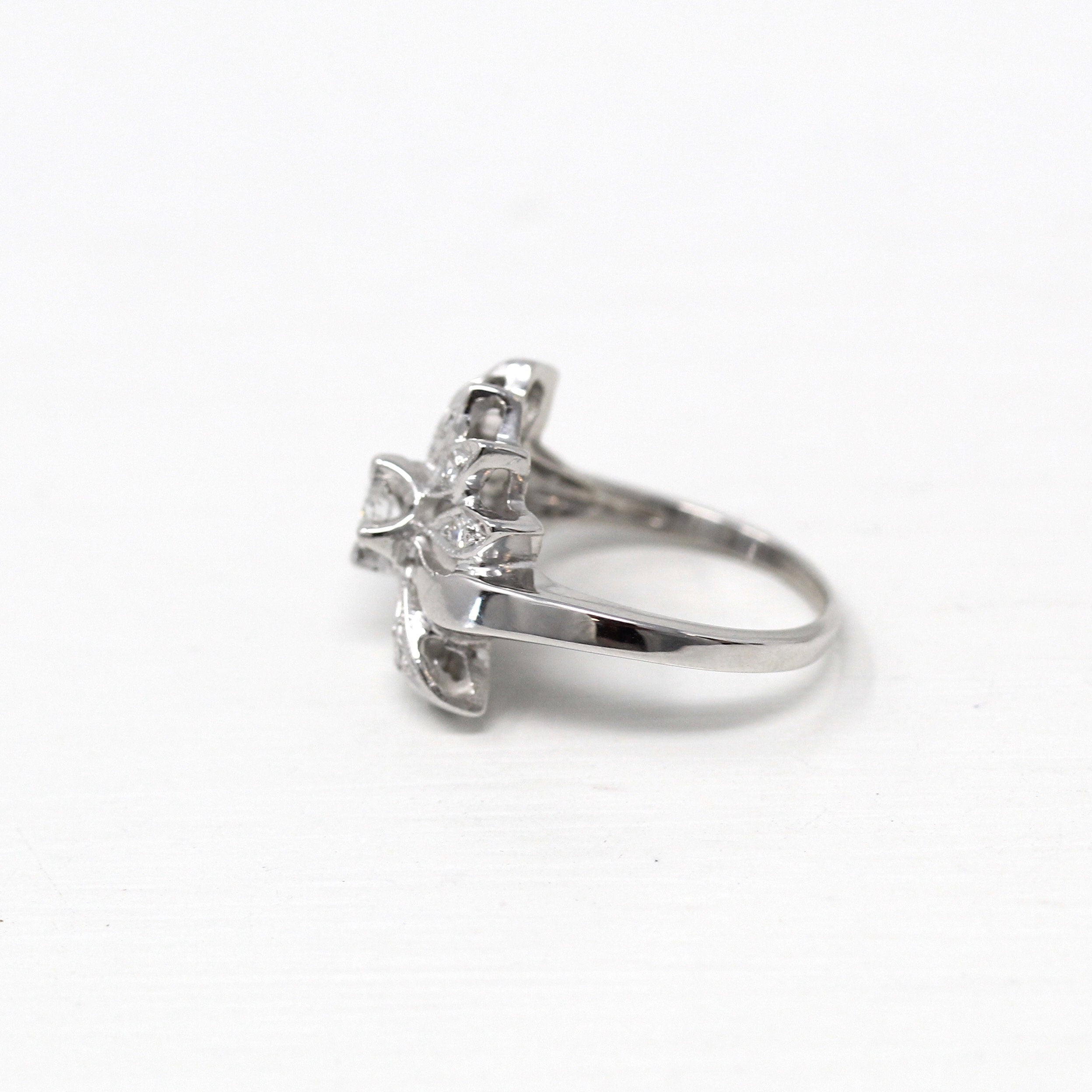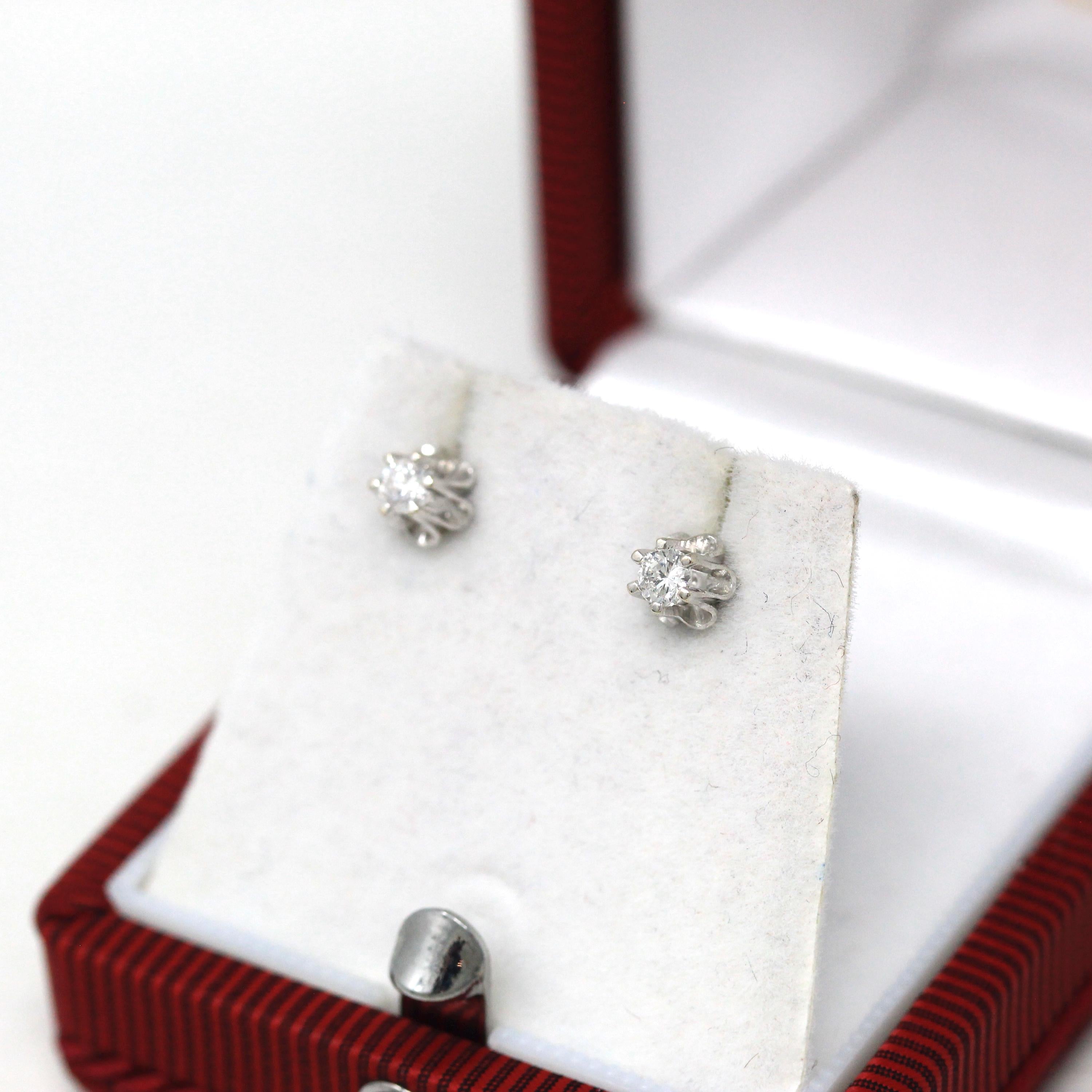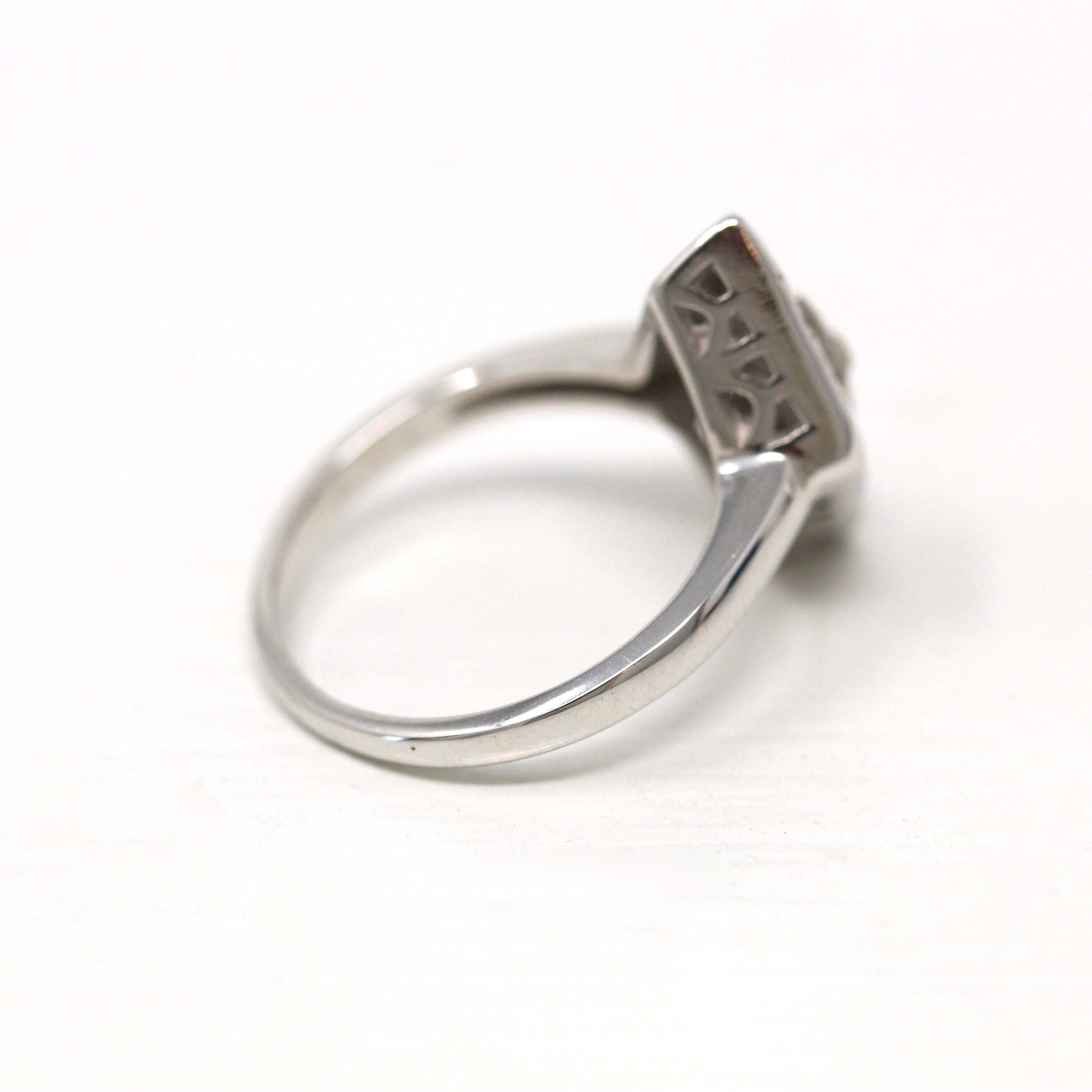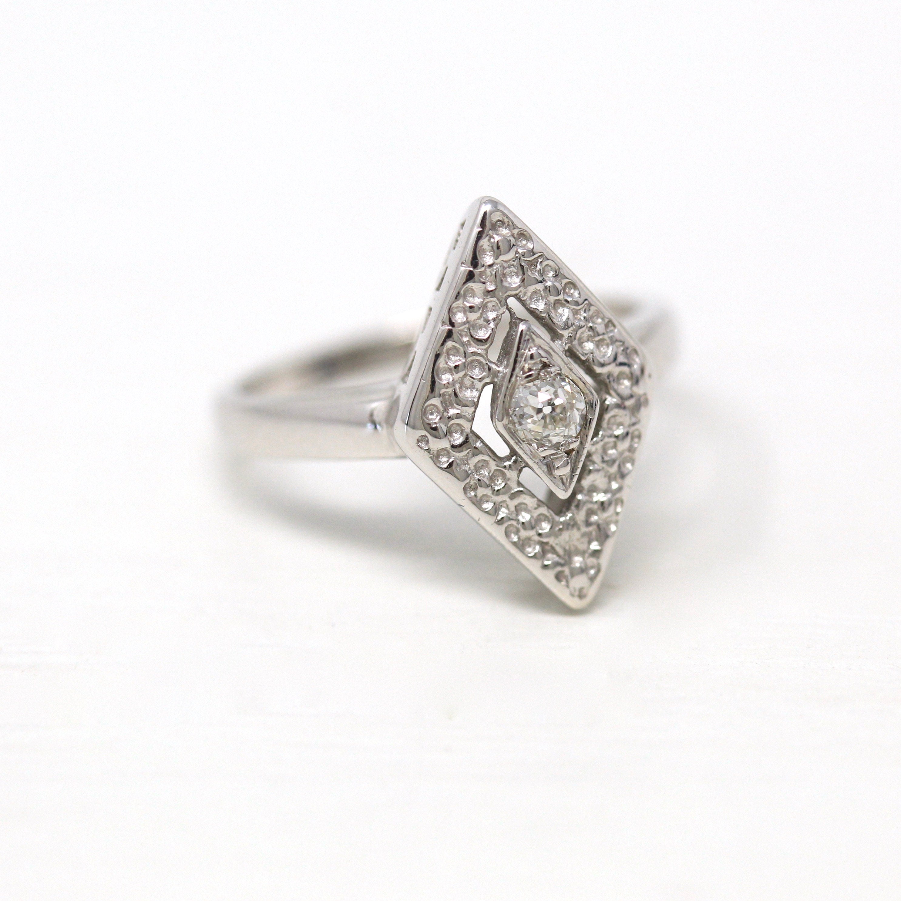 Venta - Broche Art Déco - Filigrana antigua de oro blanco de 14 k Genuino .02 CT Antiguo Pin de diamante europeo - Circa 1920s Era Joyería de accesorios de moda