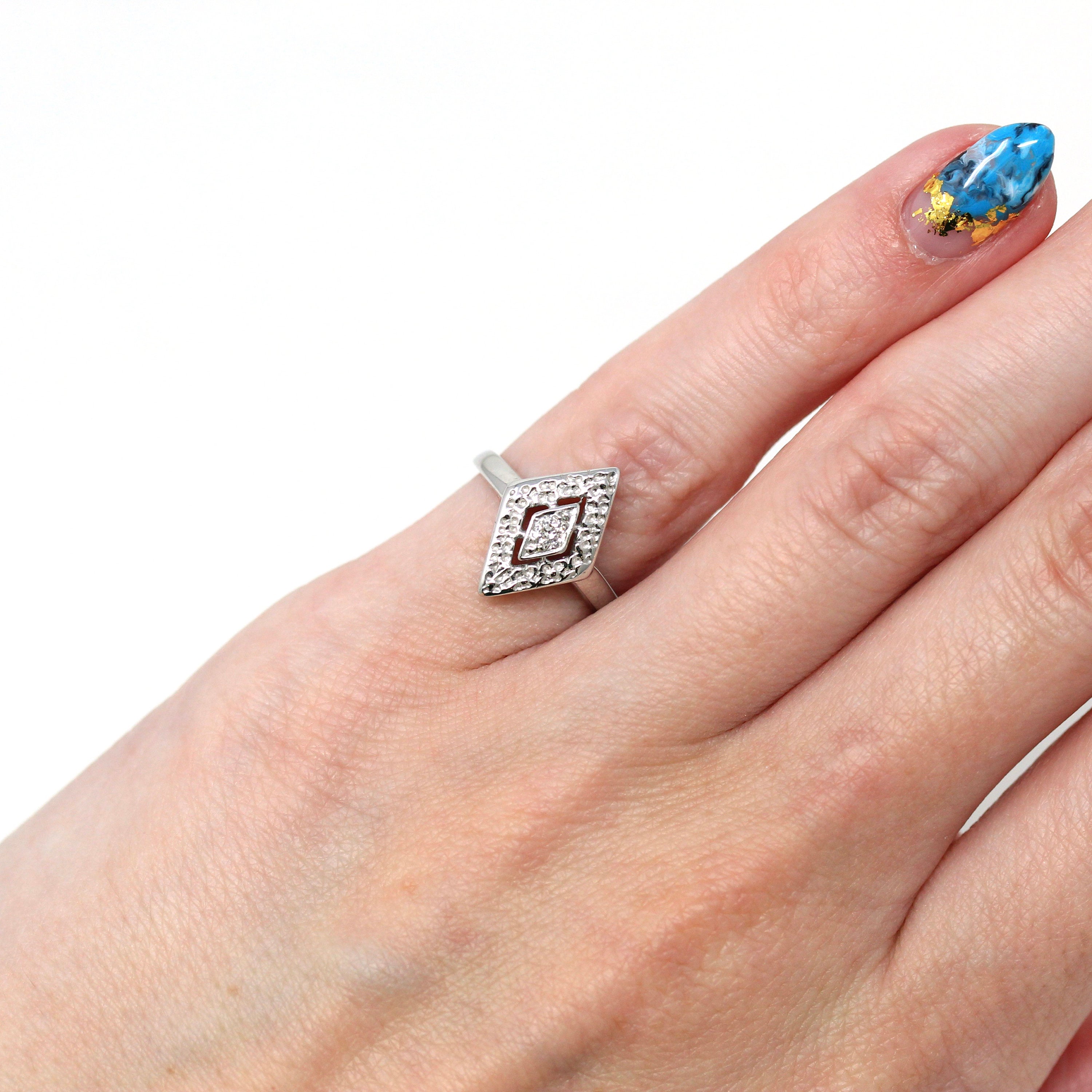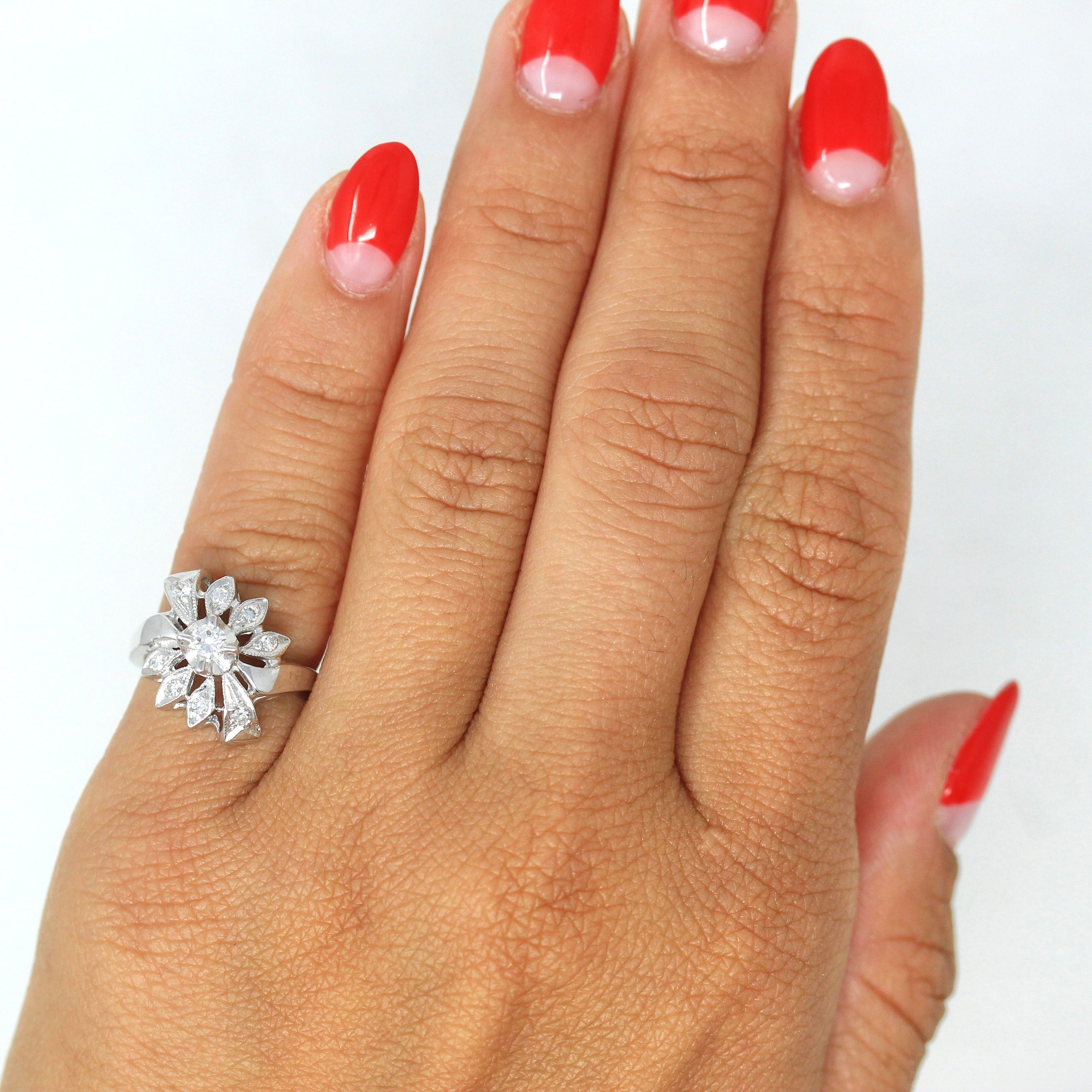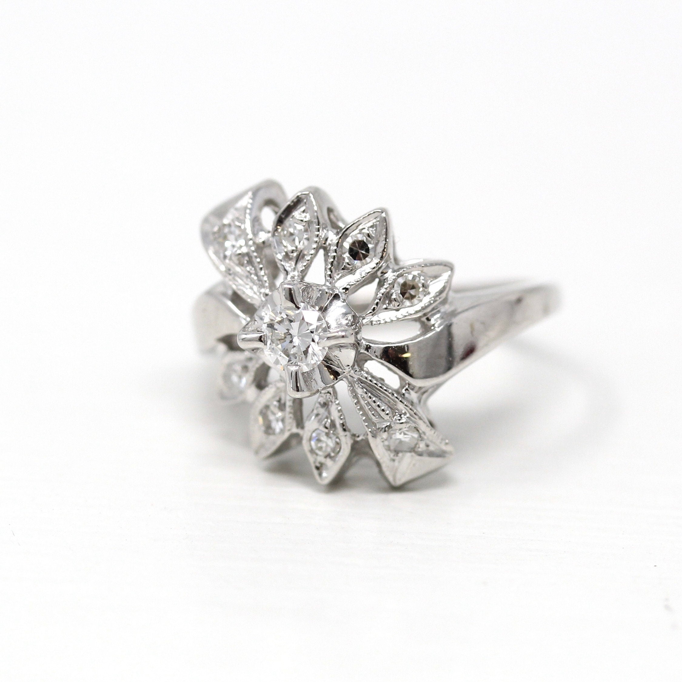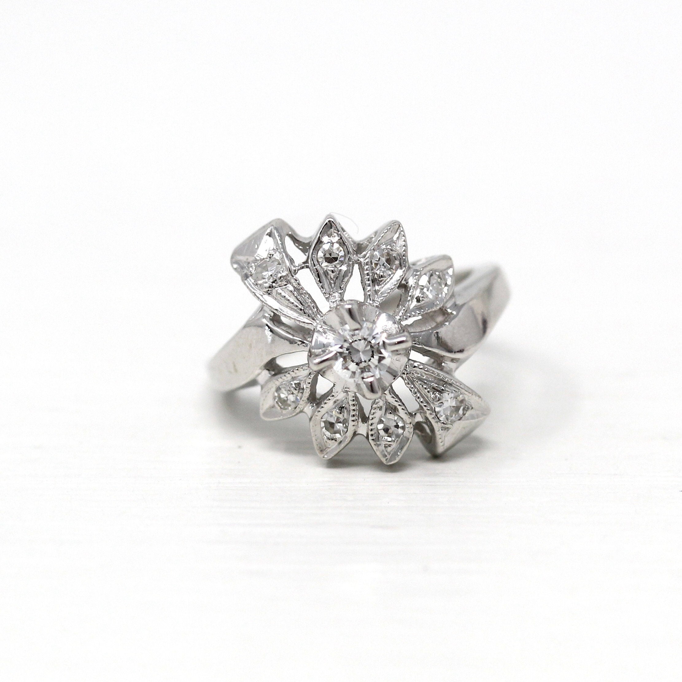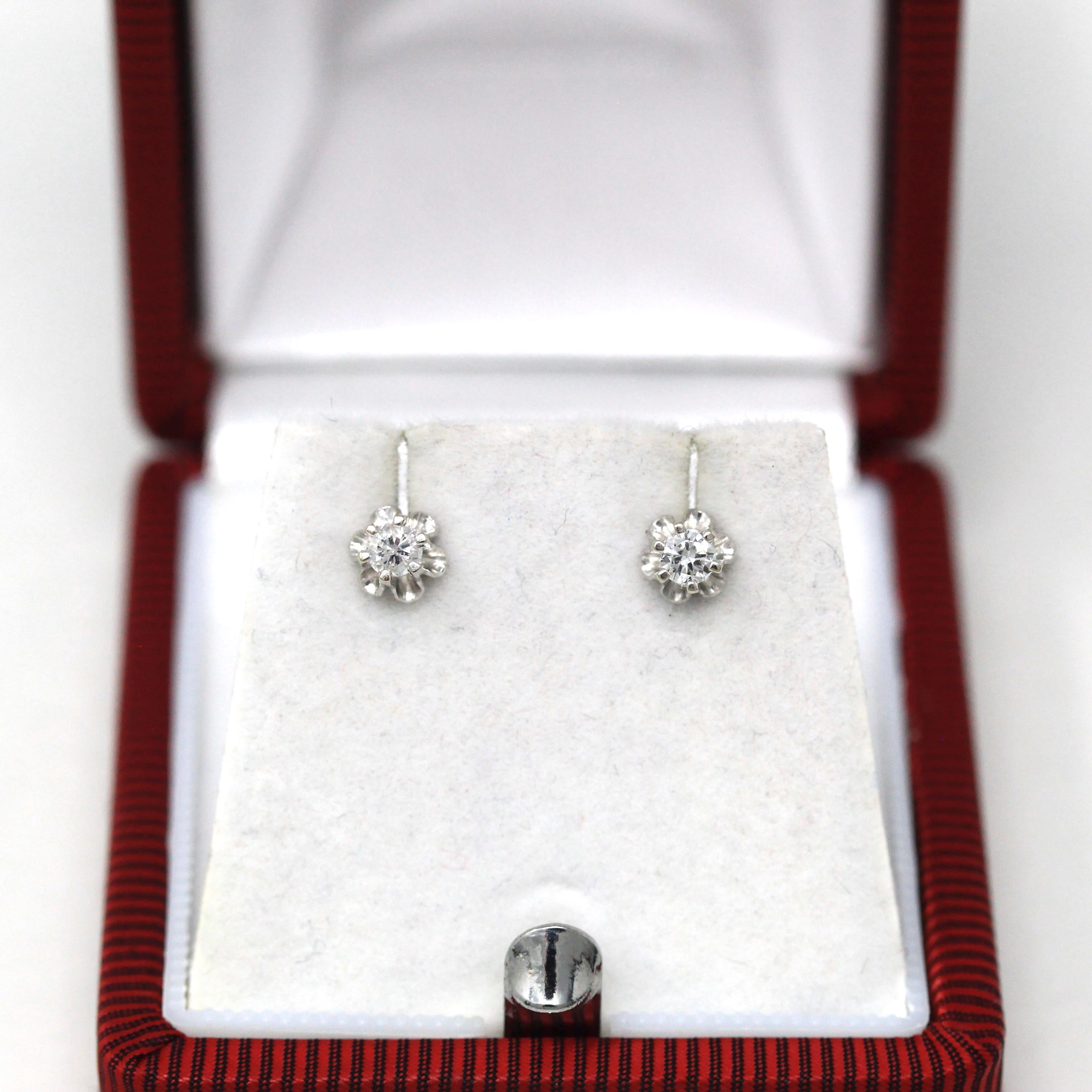Venta - Broche Art Déco - Filigrana antigua de oro blanco de 14 k Genuino .02 CT Antiguo Pin de diamante europeo - Circa 1920s Era Joyería de accesorios de moda