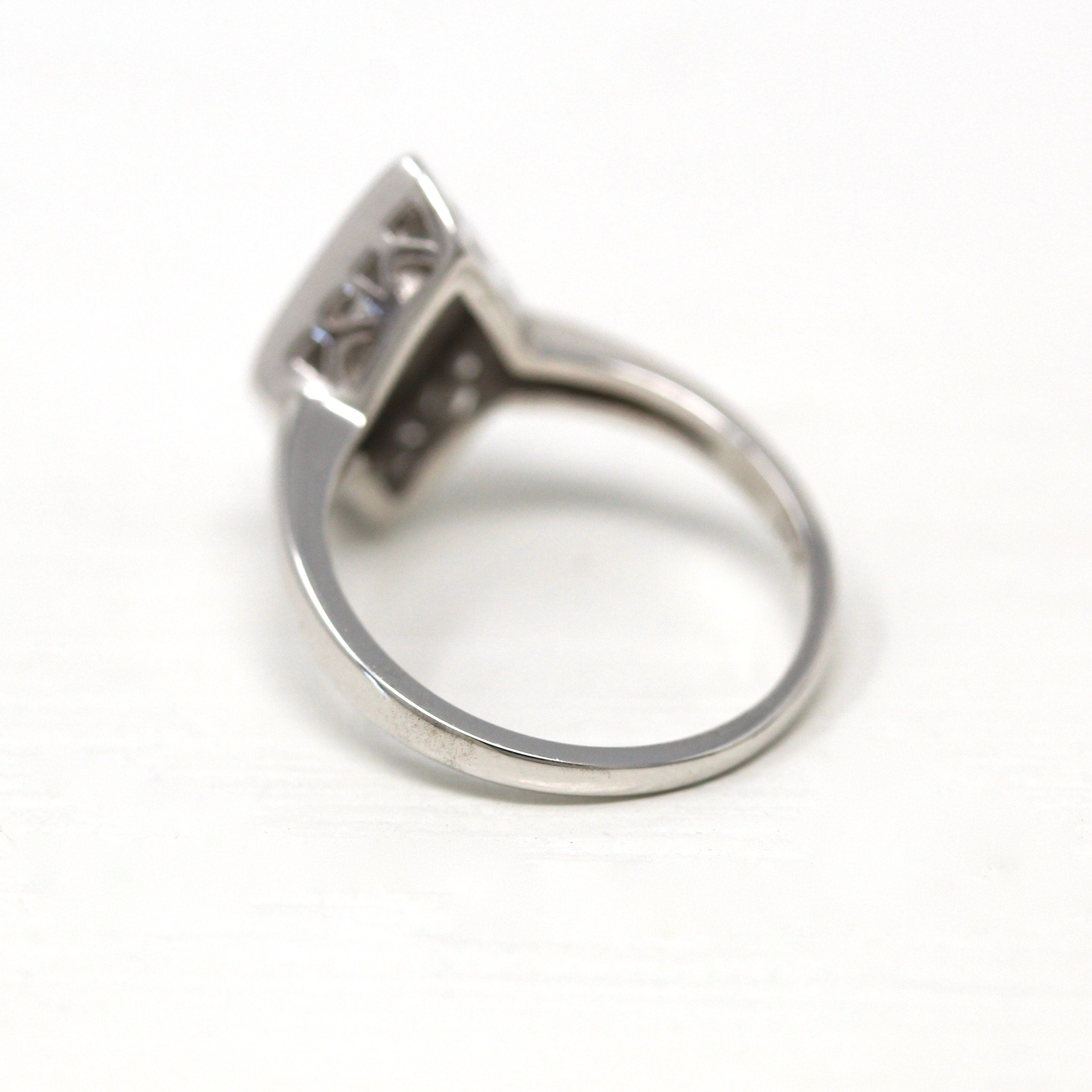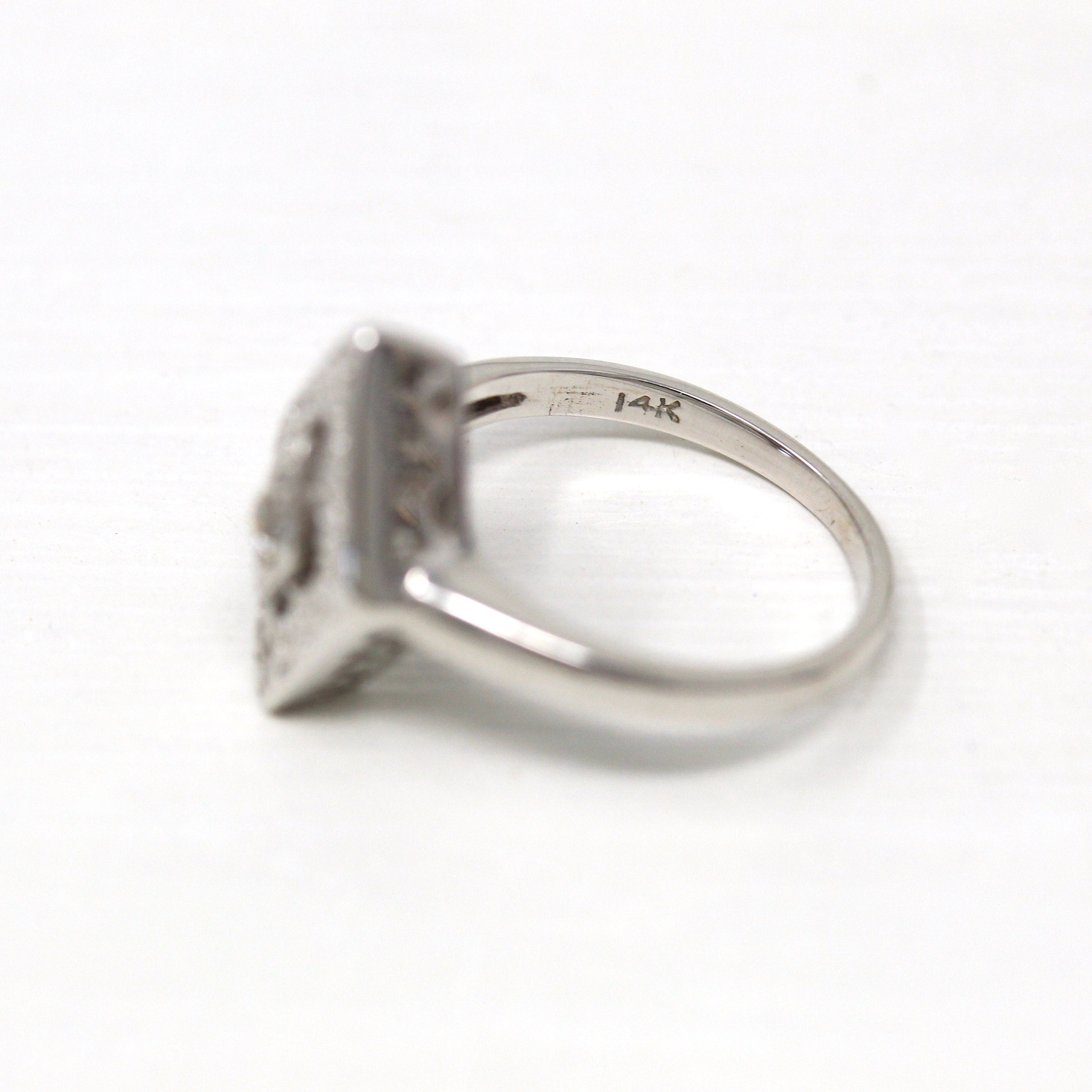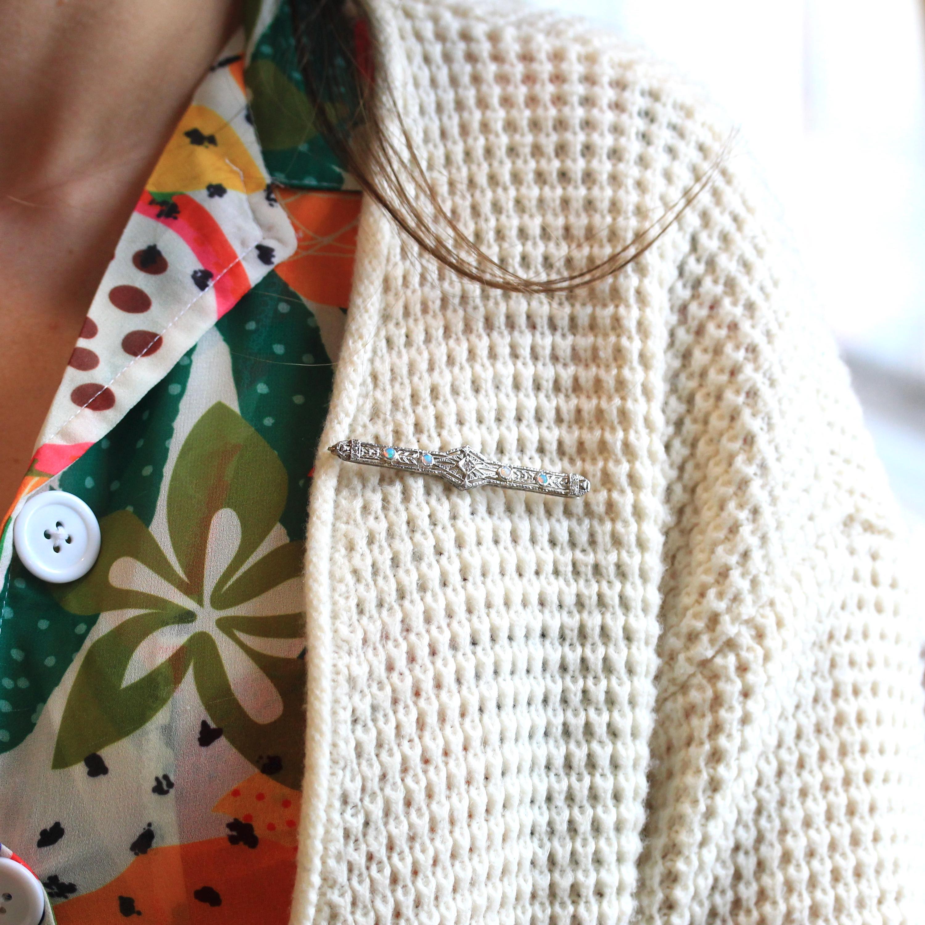 Vintage Opal Brooch - Art Deco 14k White Gold Genuine Gem Diamond Long Pin - Circa 1930s Era Filigree Open Metal Statement Fine 30s Jewelry