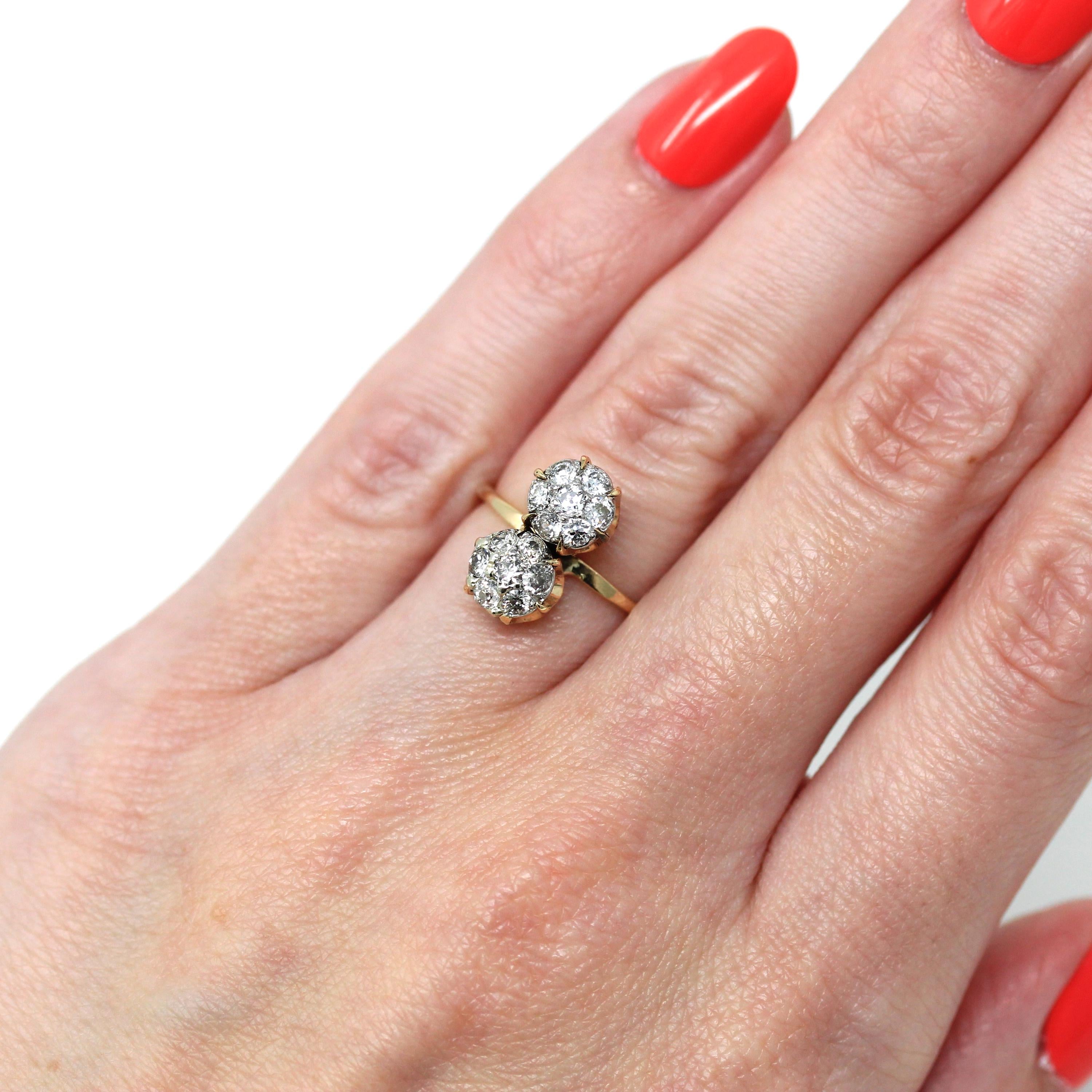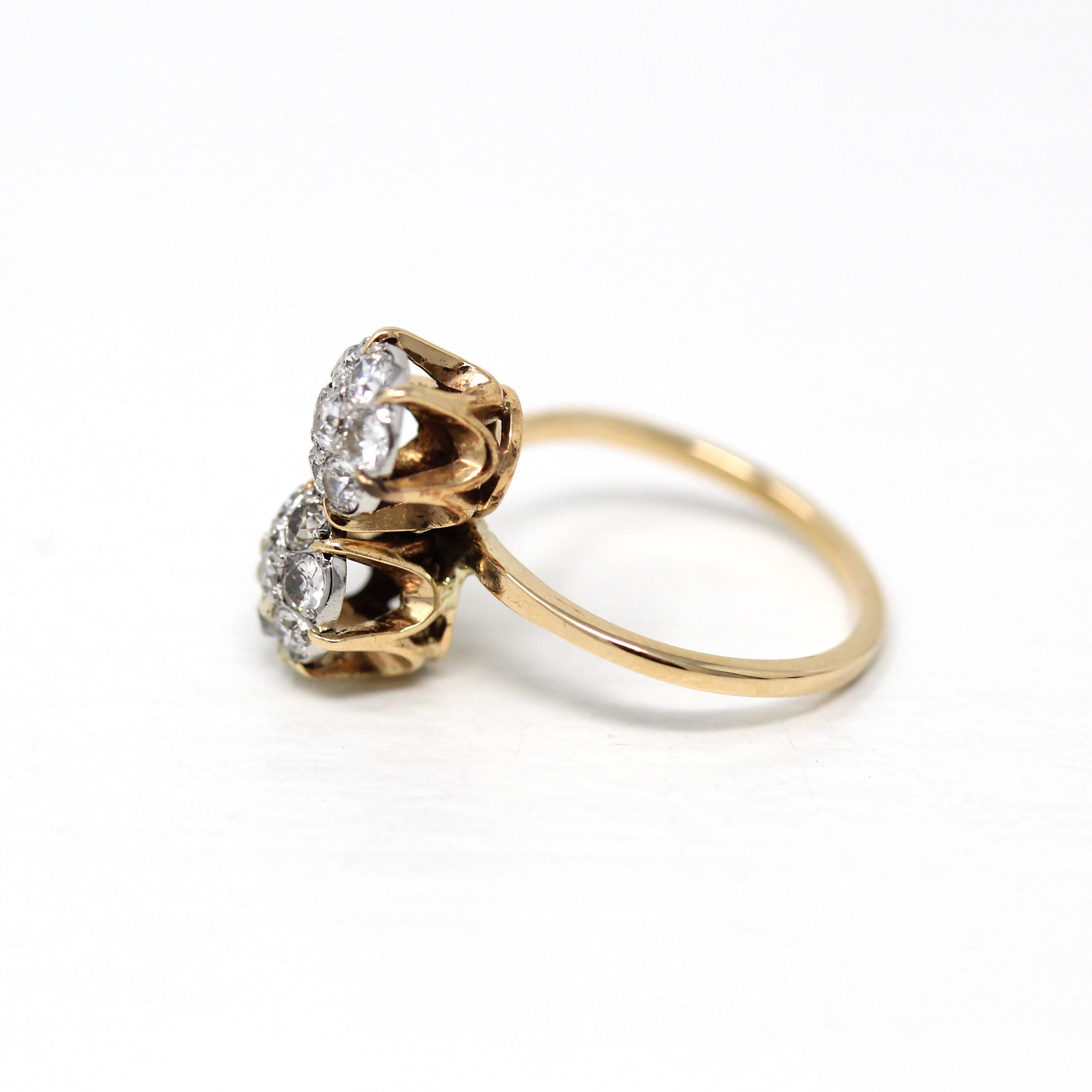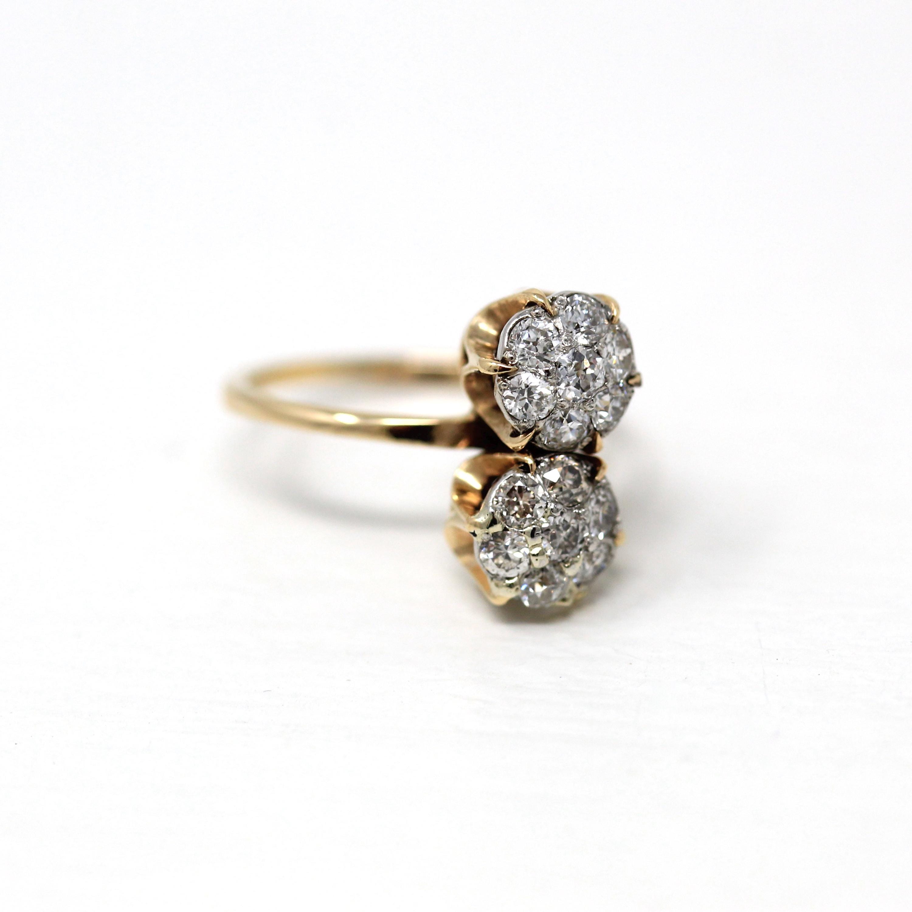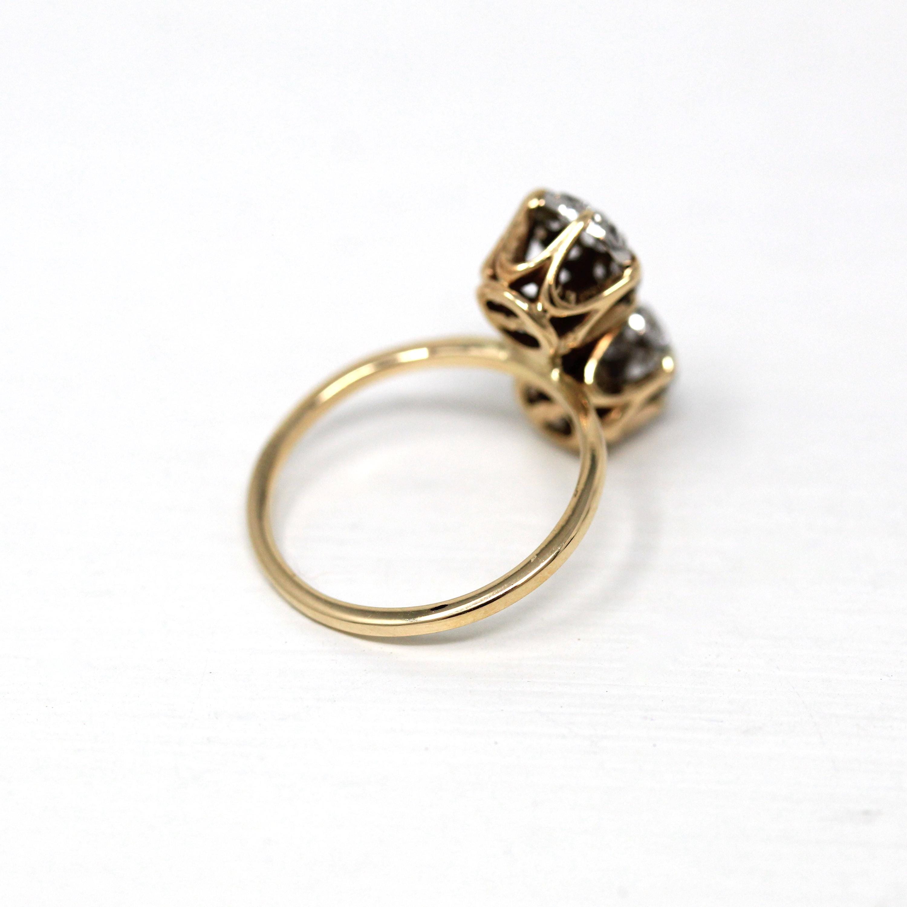 Vintage Engagement Ring - Edwardian Era 18k Yellow Gold Platinum - 1.14 CTW Diamonds Bypass - Toi Et Moi 1910s Size 6 1/4 Jewelry w/ Report