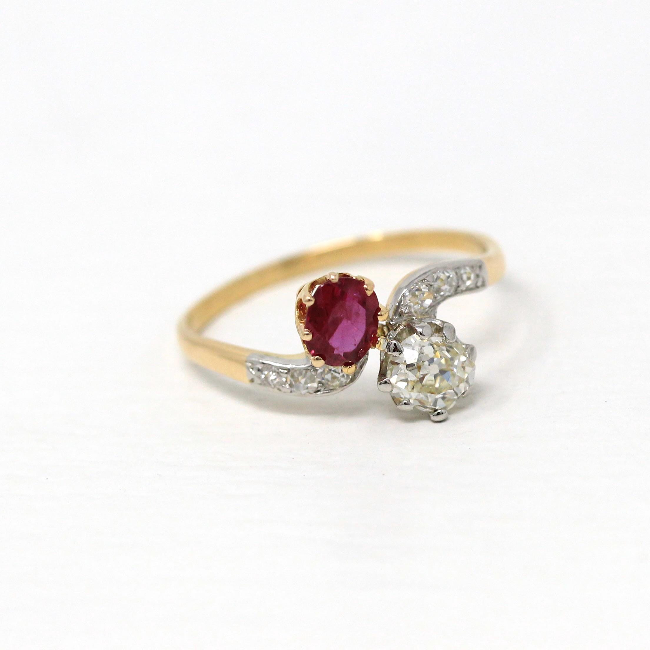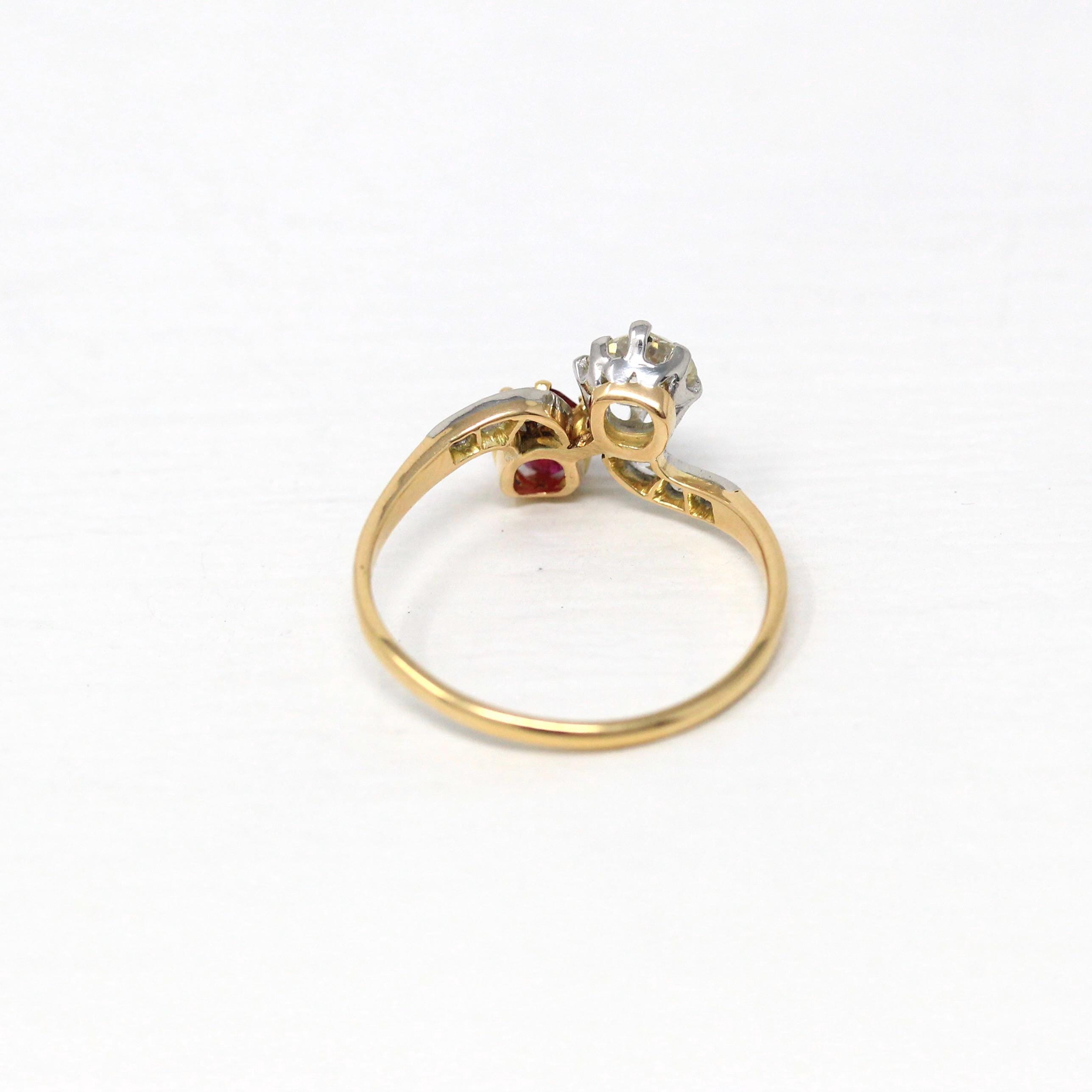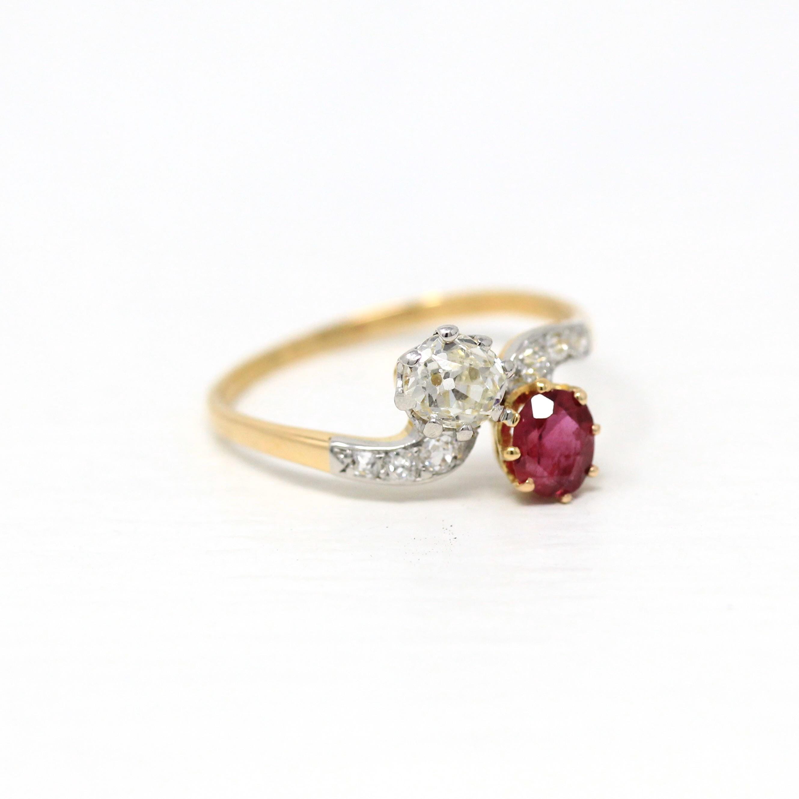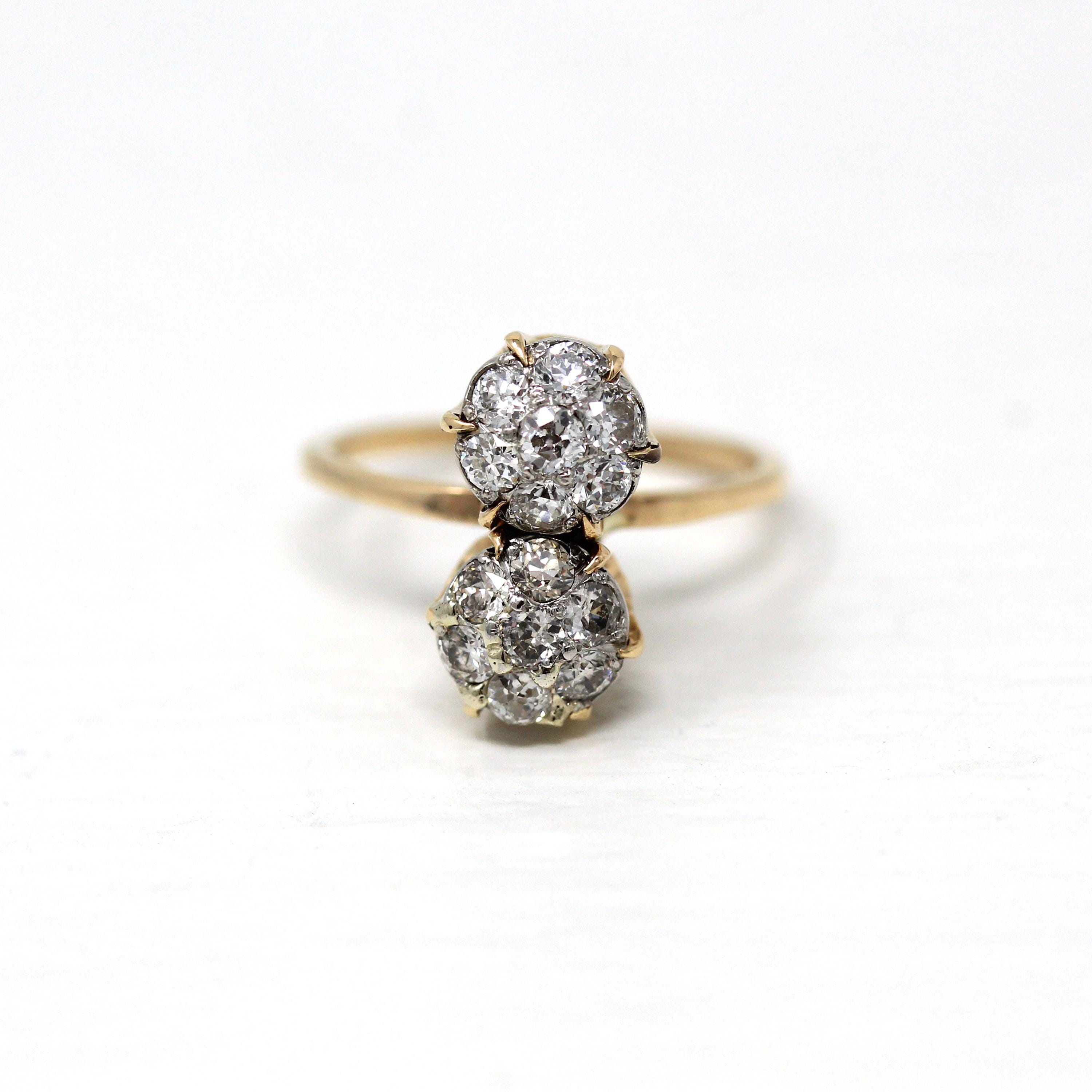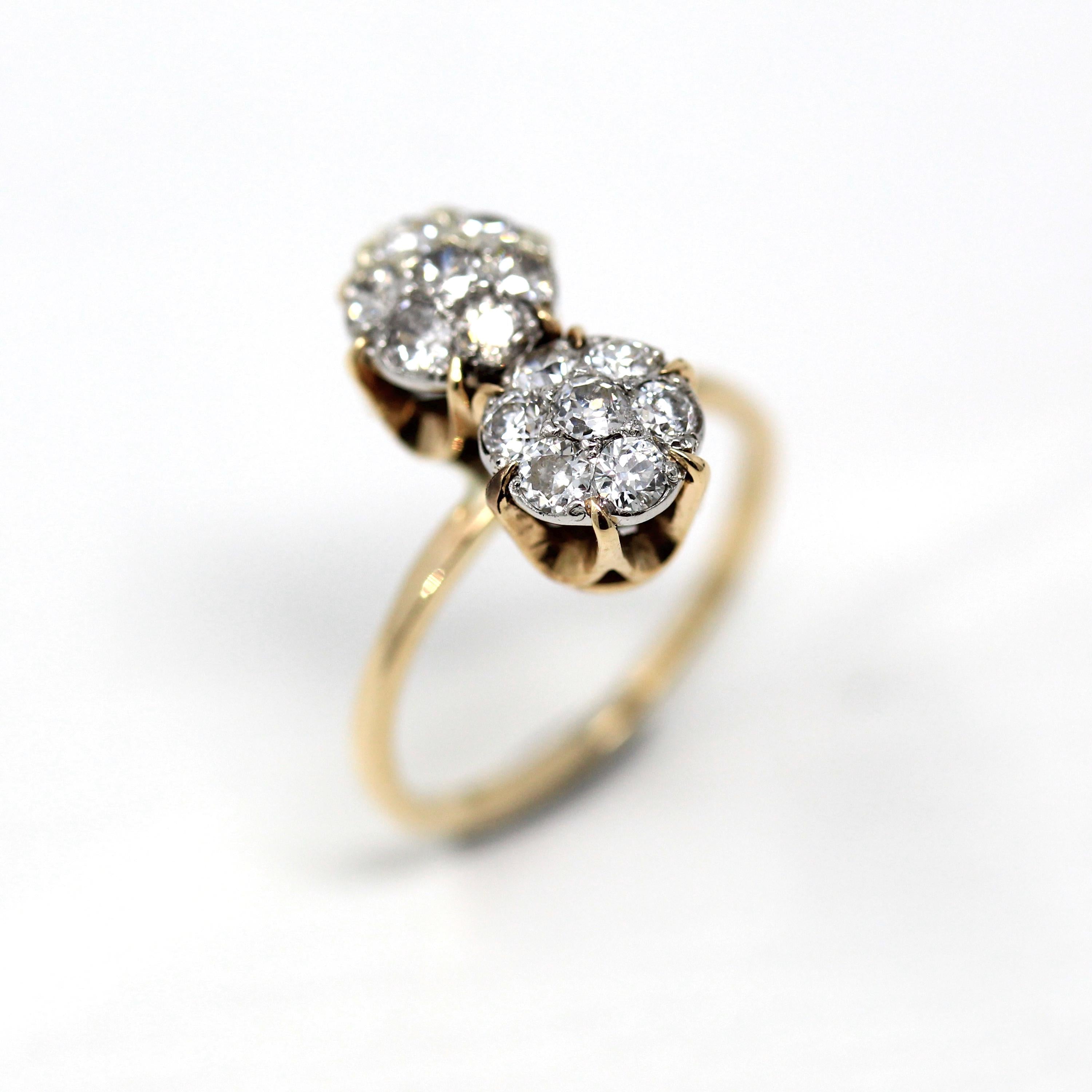 Vintage Engagement Ring - Edwardian Era 18k Yellow Gold Platinum - 1.14 CTW Diamonds Bypass - Toi Et Moi 1910s Size 6 1/4 Jewelry w/ Report