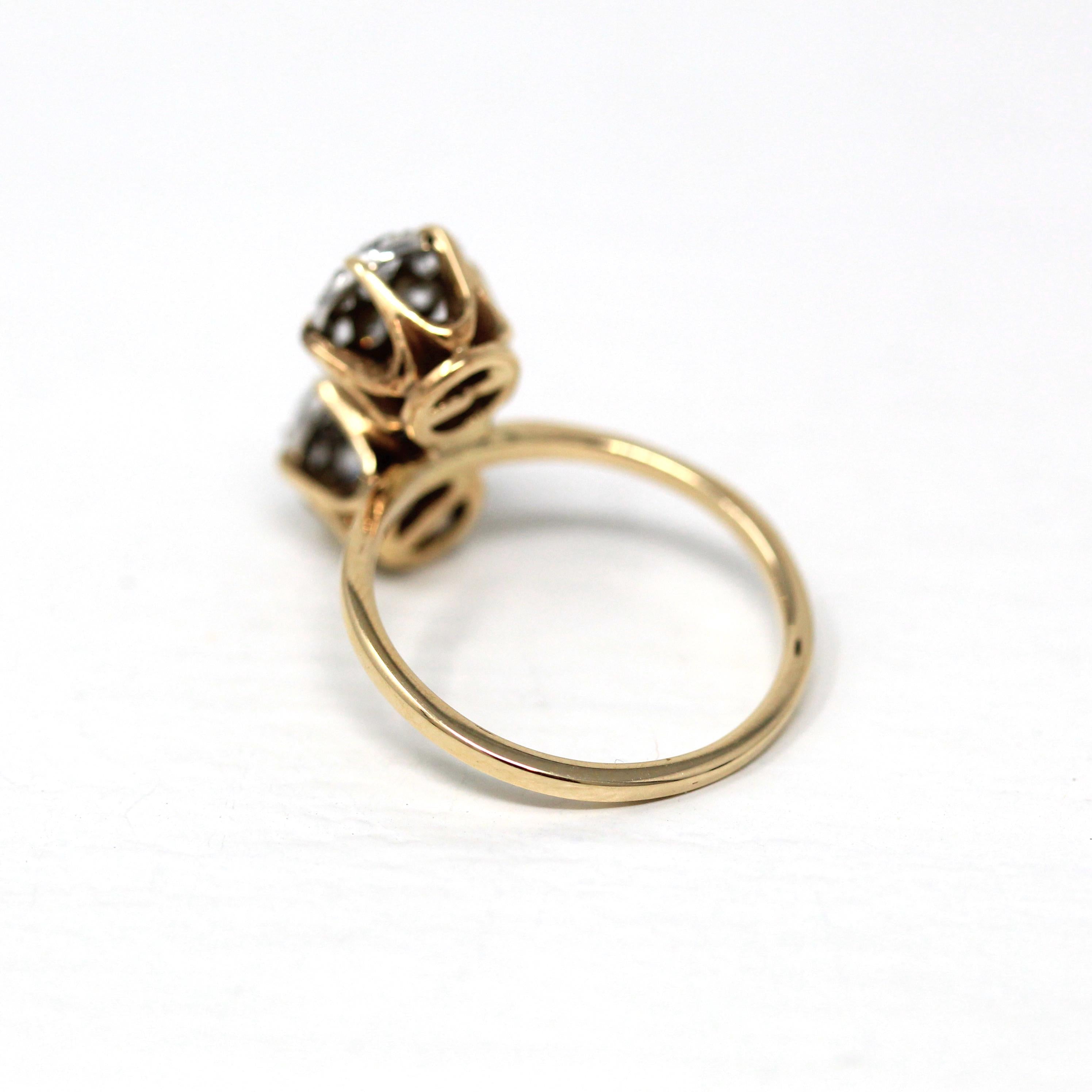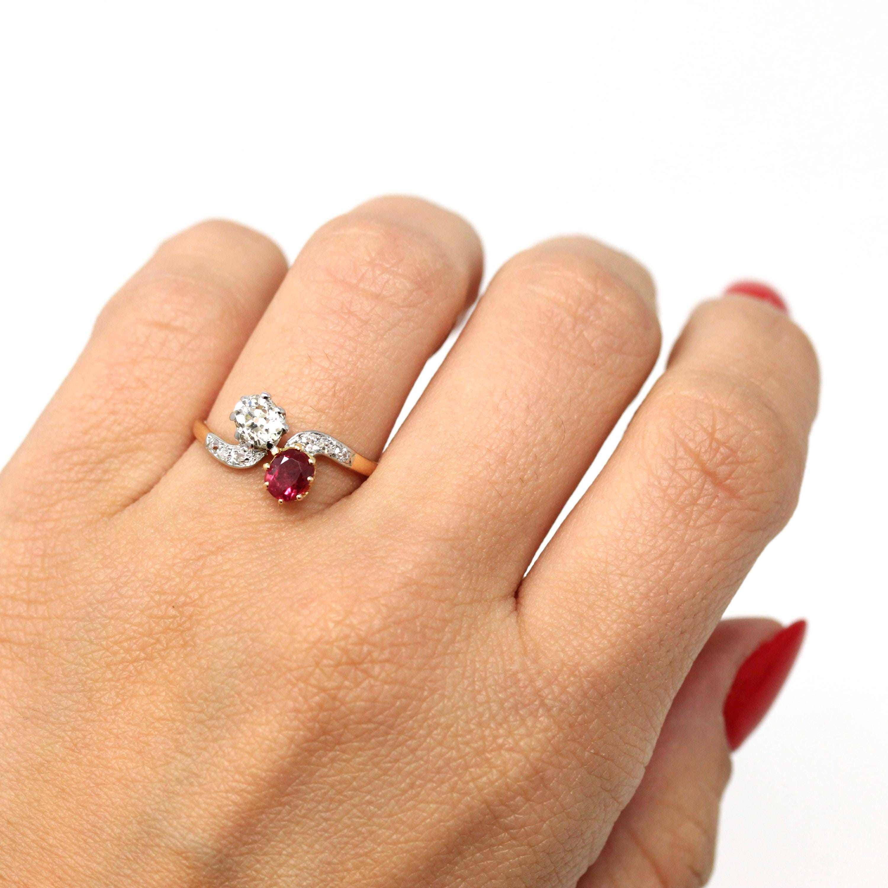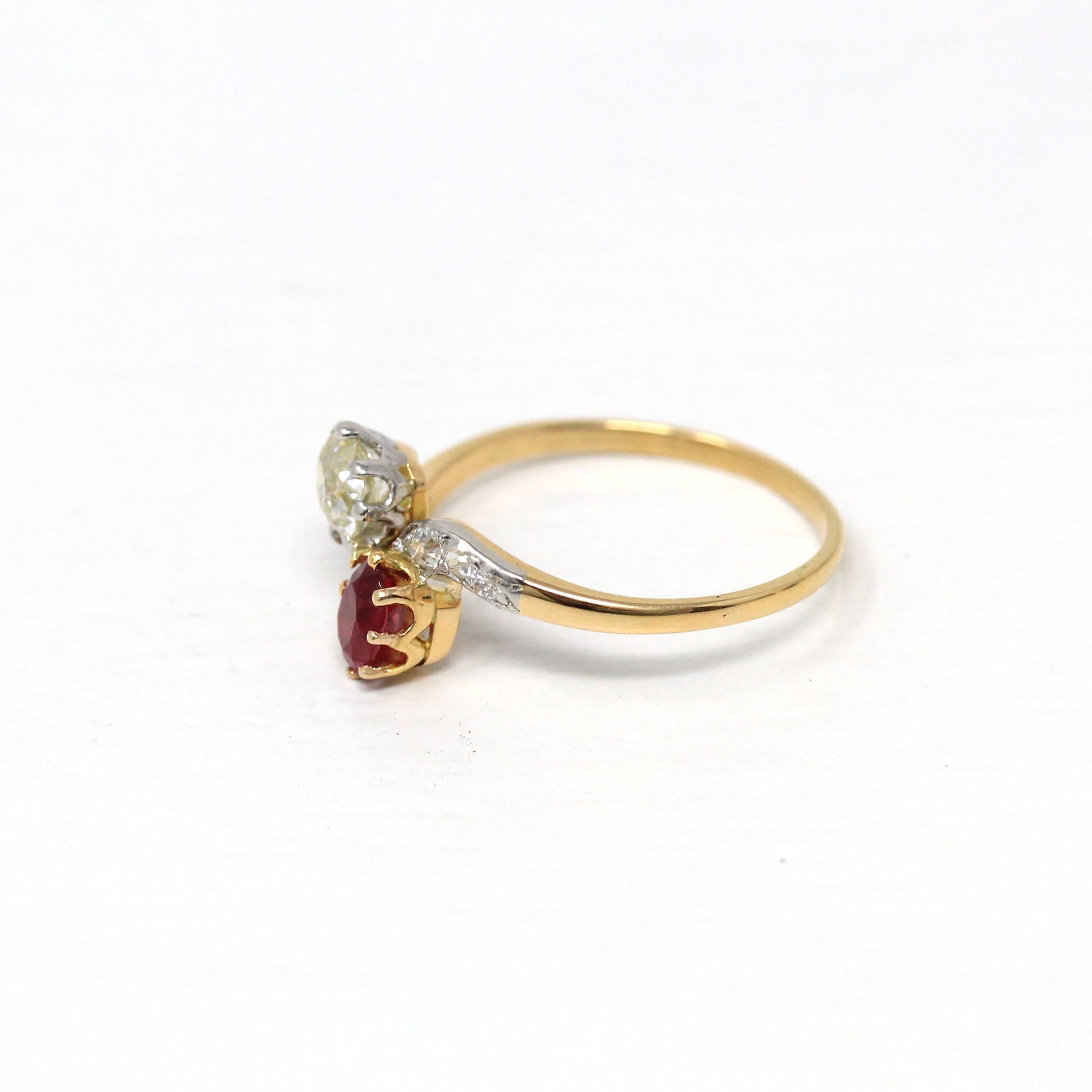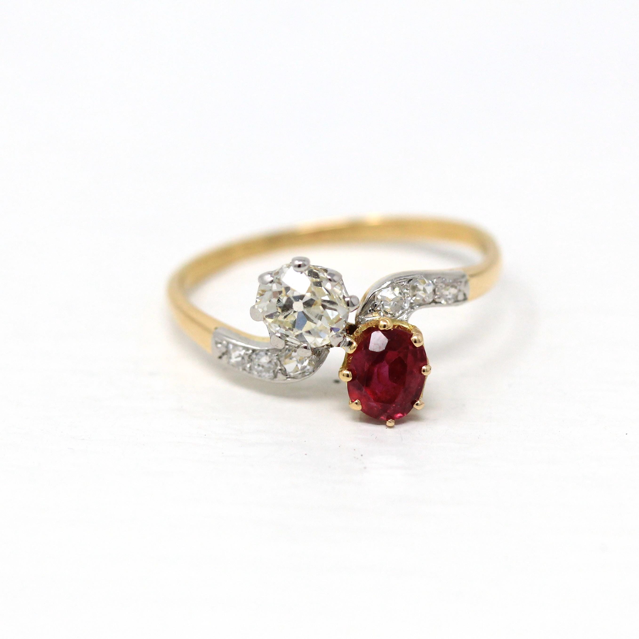 Vintage Engagement Ring - Edwardian Era 18k Yellow Gold Platinum - 1.14 CTW Diamonds Bypass - Toi Et Moi 1910s Size 6 1/4 Jewelry w/ Report