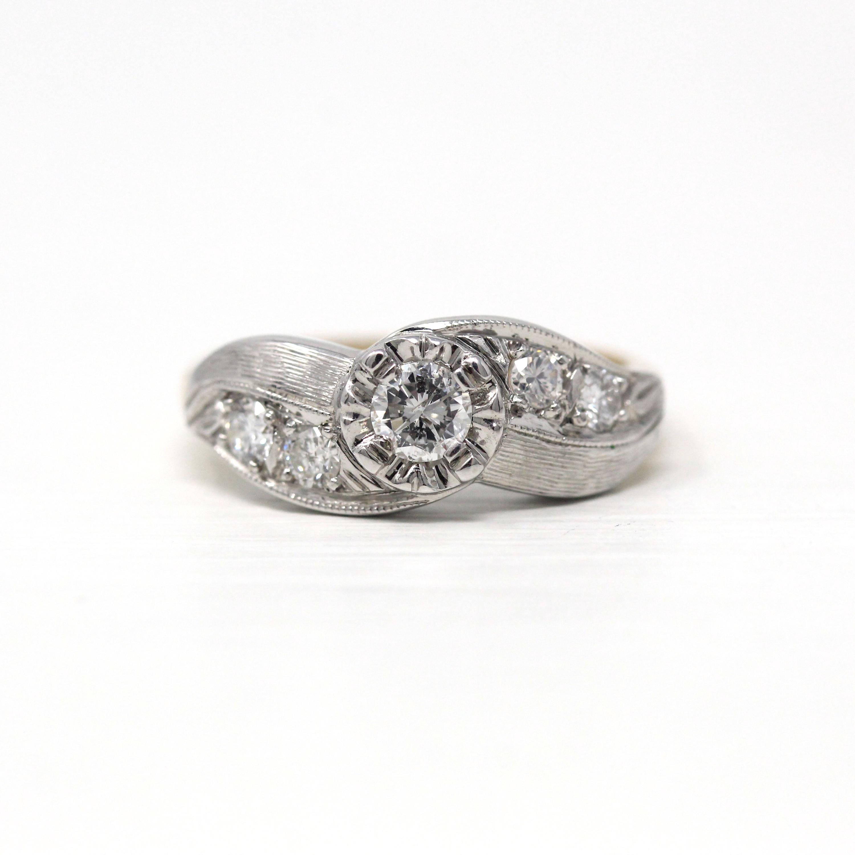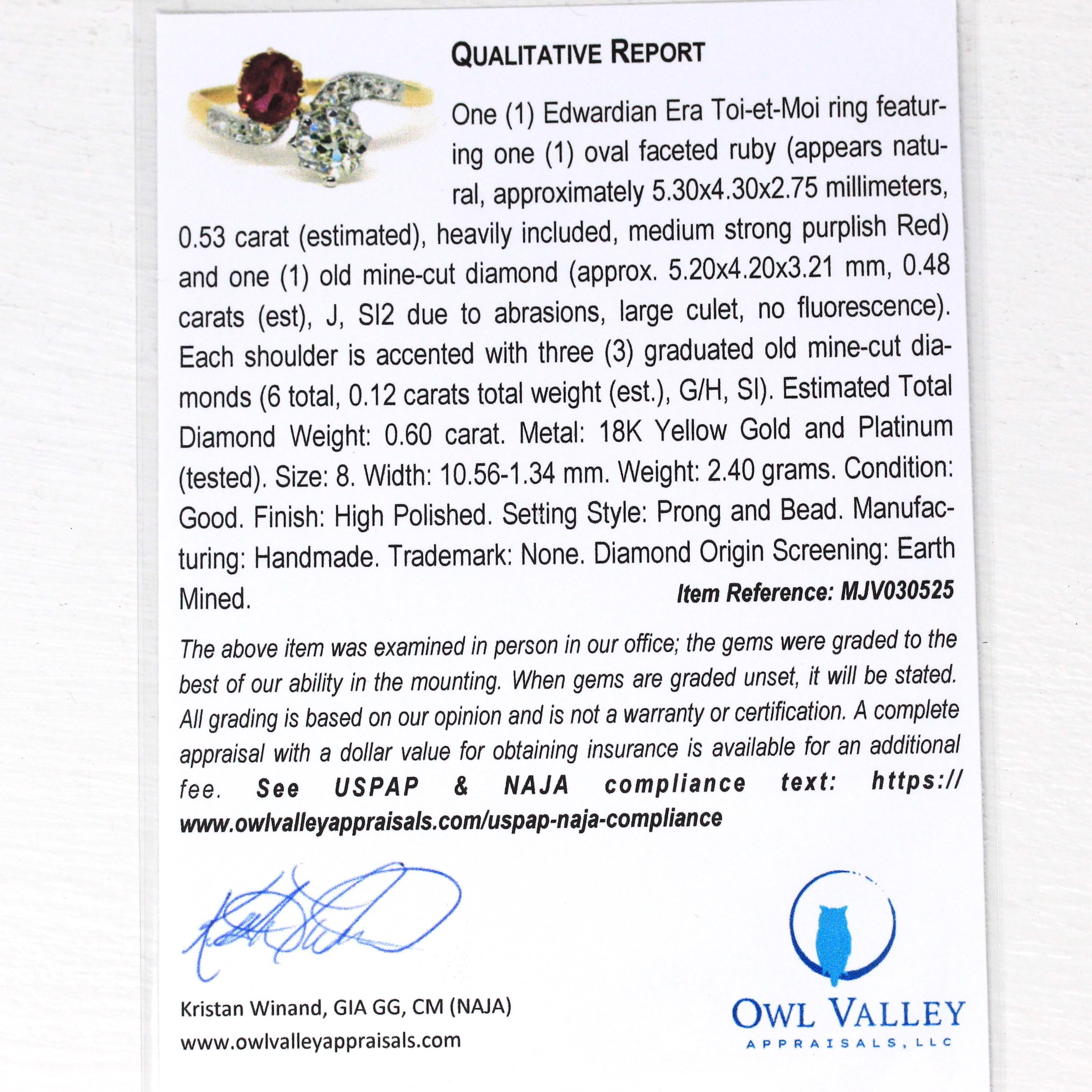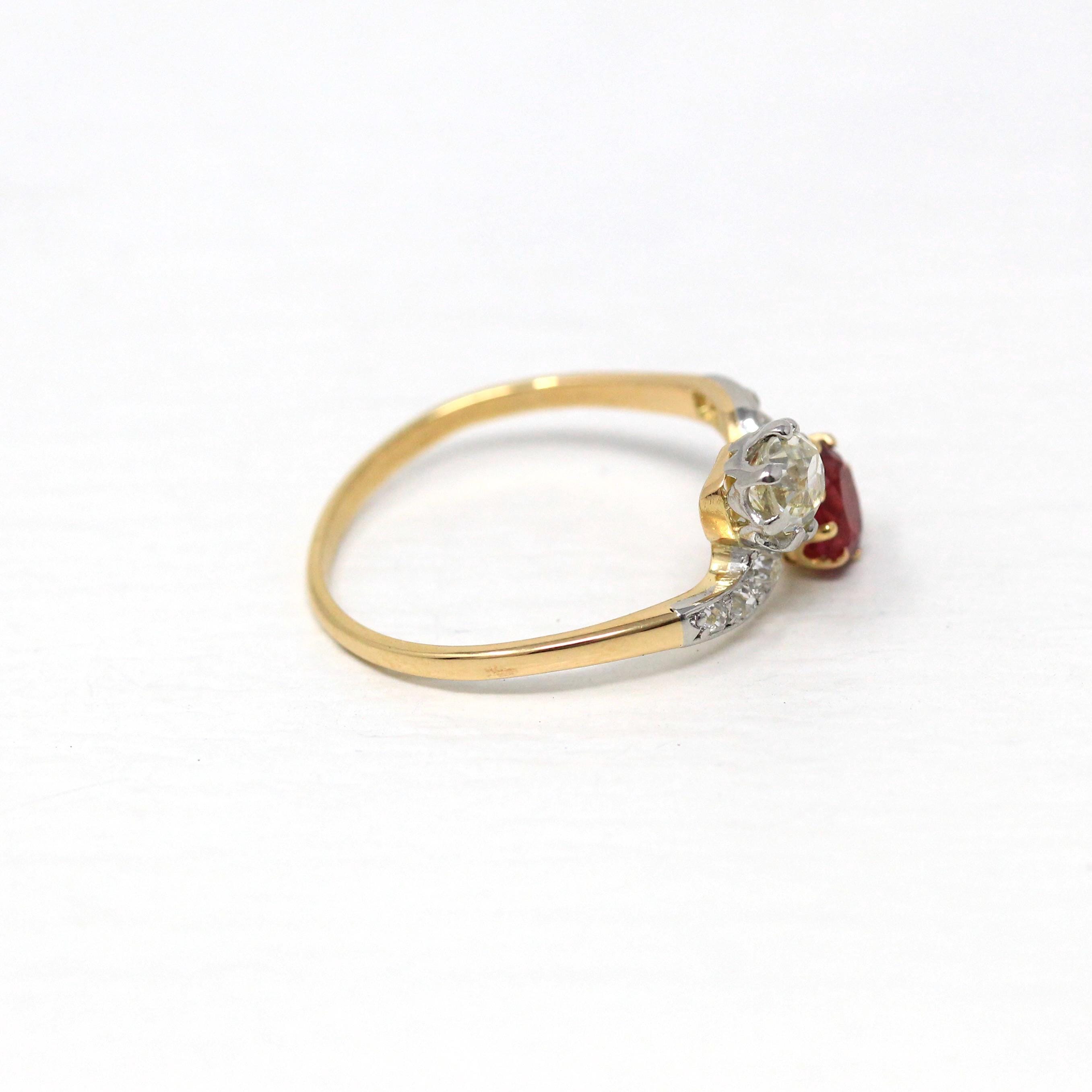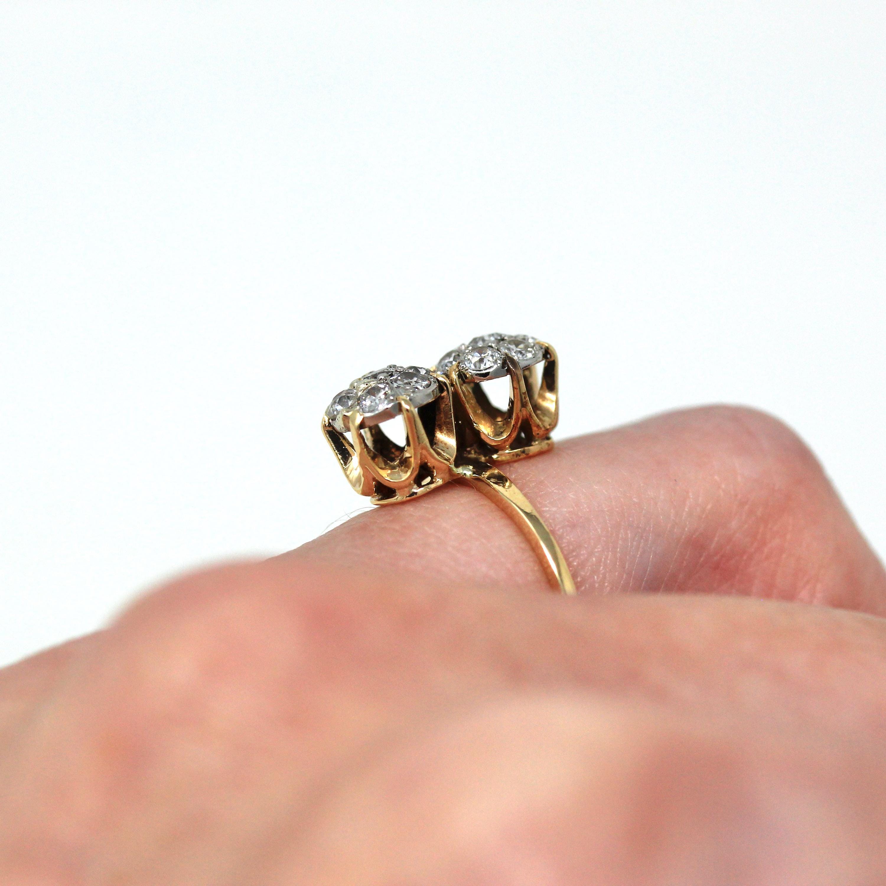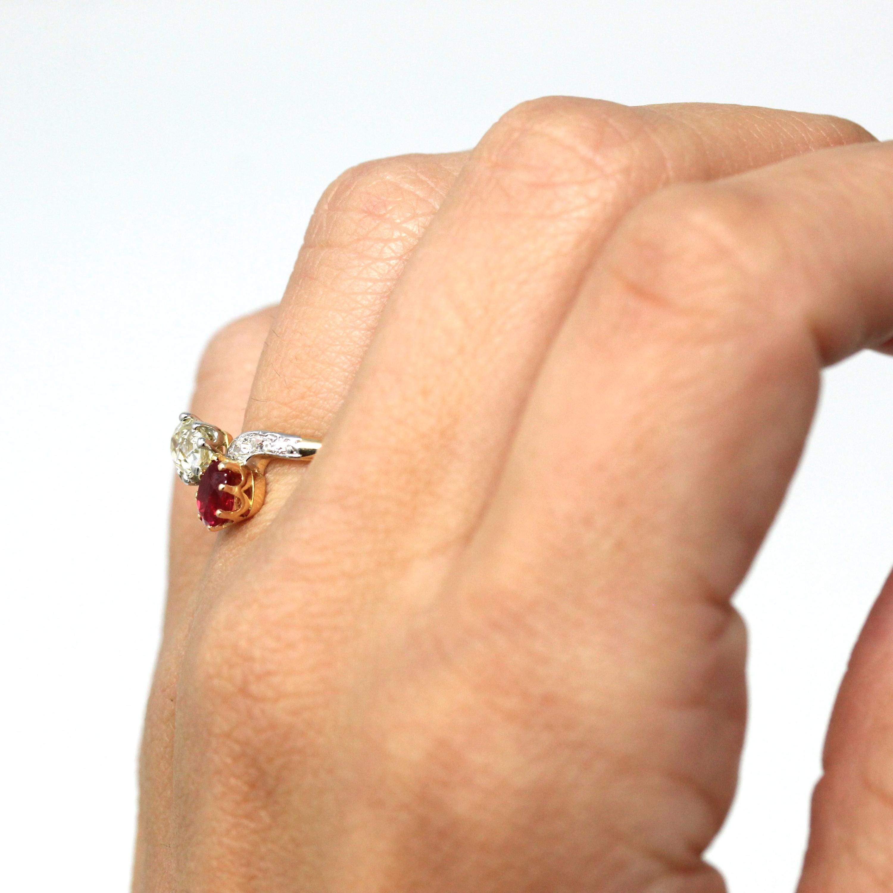 Vintage Engagement Ring - Edwardian Era 18k Yellow Gold Platinum - 1.14 CTW Diamonds Bypass - Toi Et Moi 1910s Size 6 1/4 Jewelry w/ Report