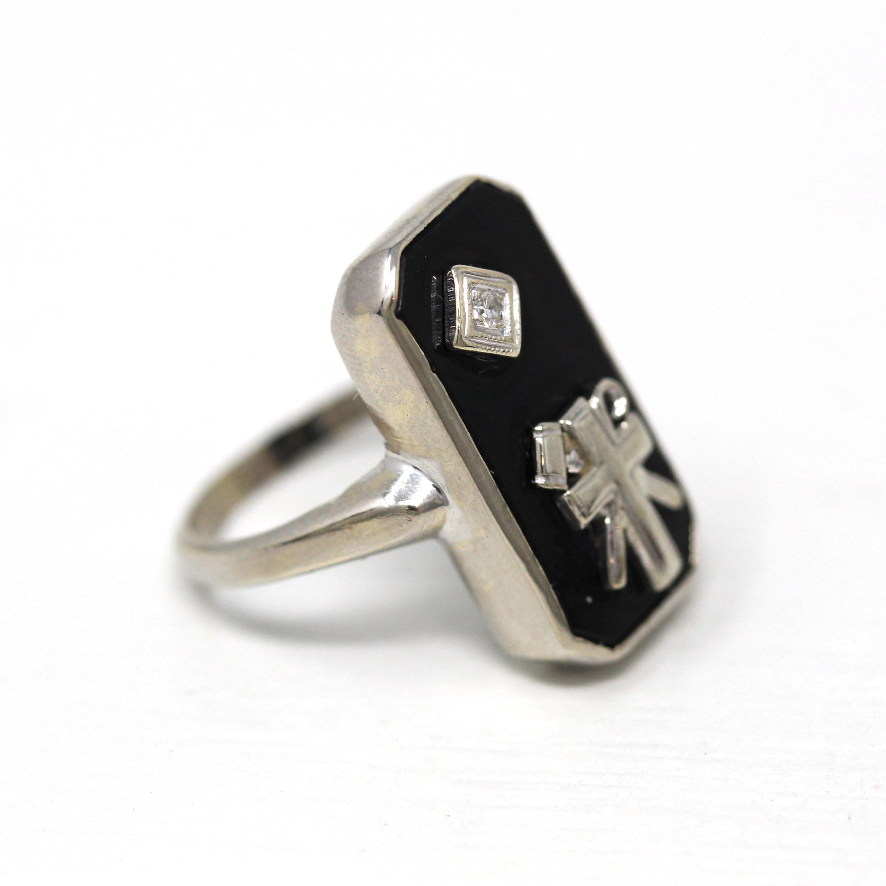 Venta - Anillo de letras "BD" - Art Déco oro amarillo de 14 k dos iniciales sello de cara de desplazamiento - Vintage alrededor de la década de 1930 Tamaño 6 1/4 Declaración joyería fina