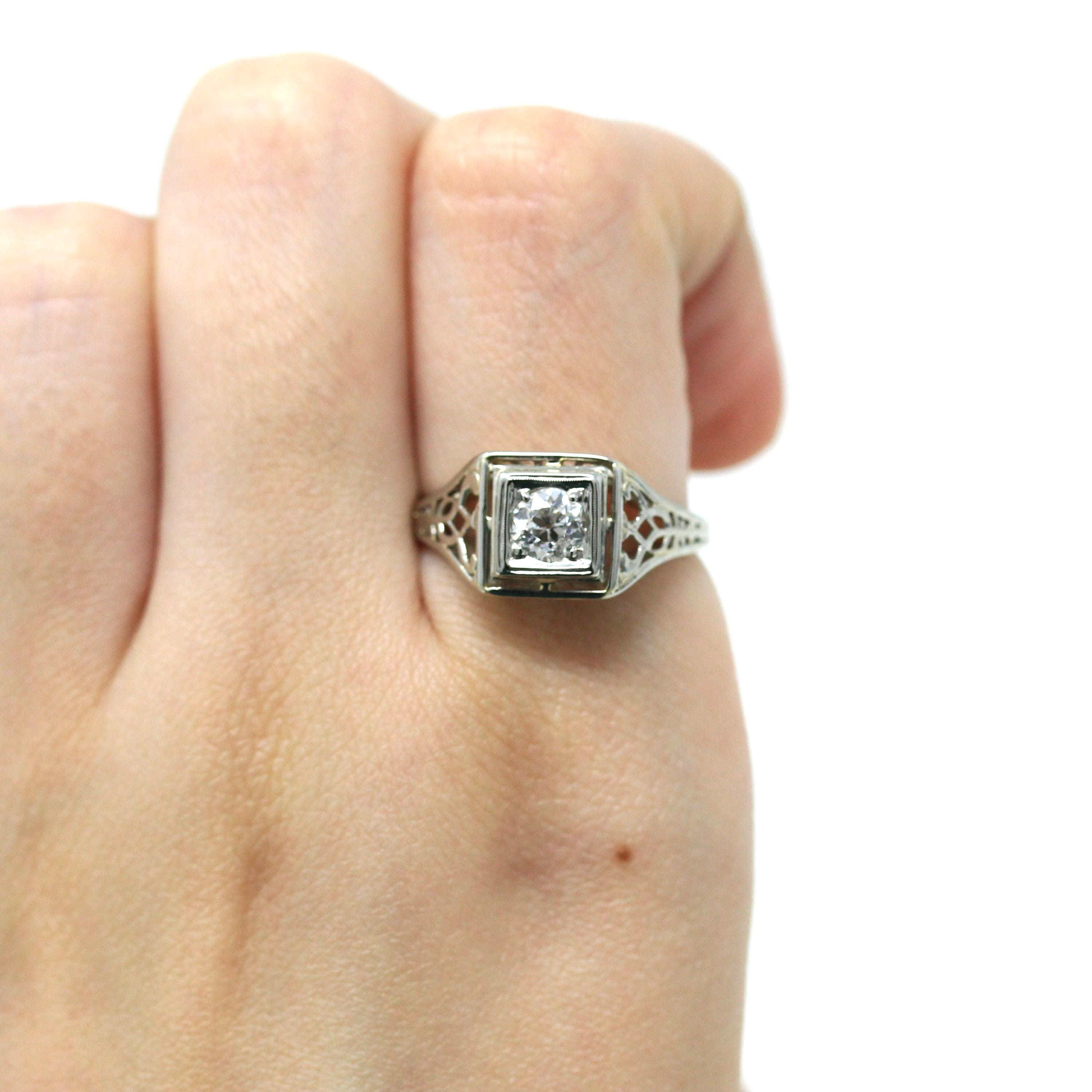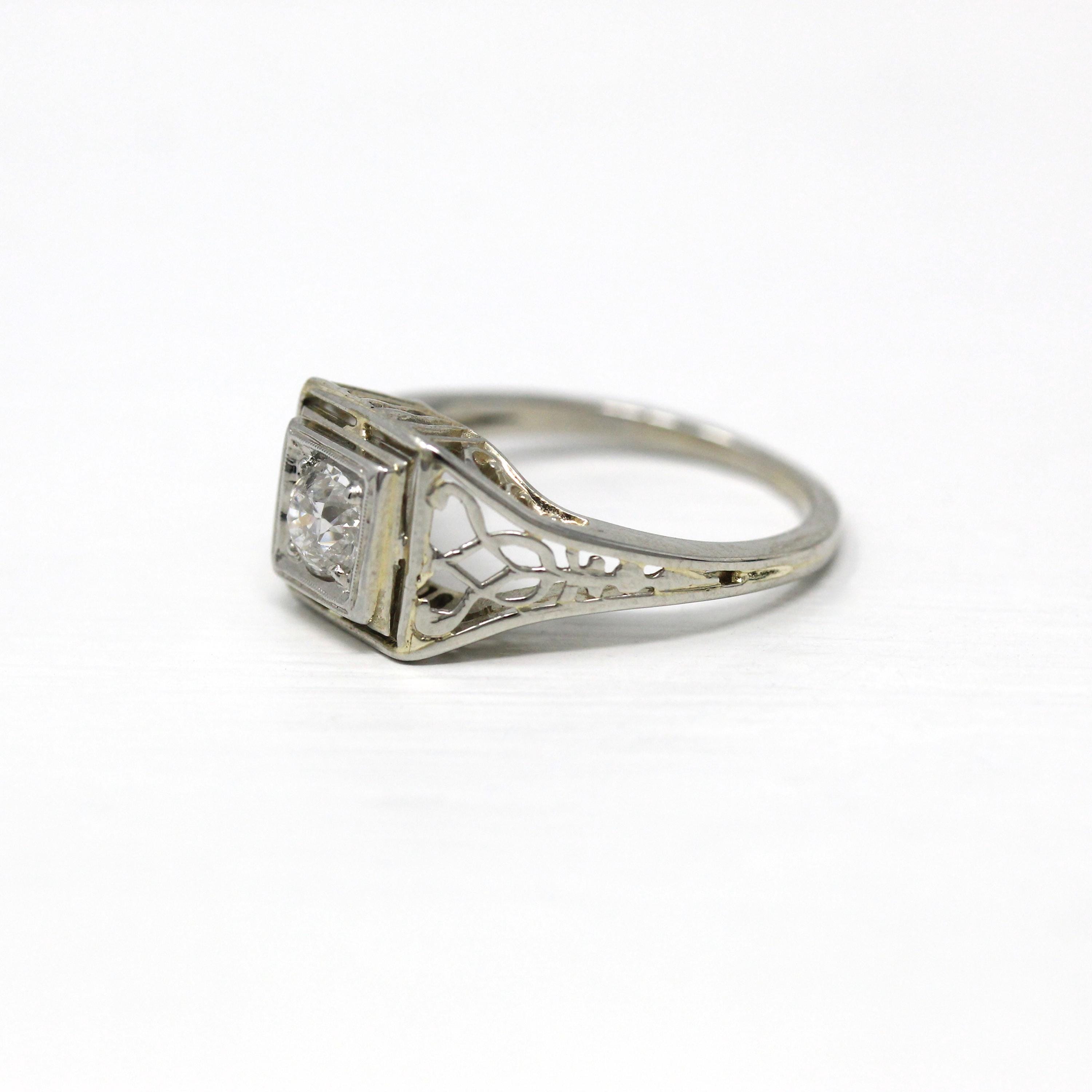 1.22 Carat Old European Diamond Ring - Vintage Platinum GIA Report Solitaire Engagement - Size 5 1/4 Filigree Art Deco 1920s Fine Jewelry