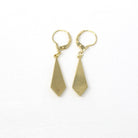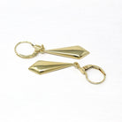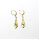 Lovely estate circa 1990's era 14k yellow gold earrings! These pretty earrings have an elongated geometric design, and have lever style earring closures. A stylish pair of fine new old stock earrings!