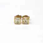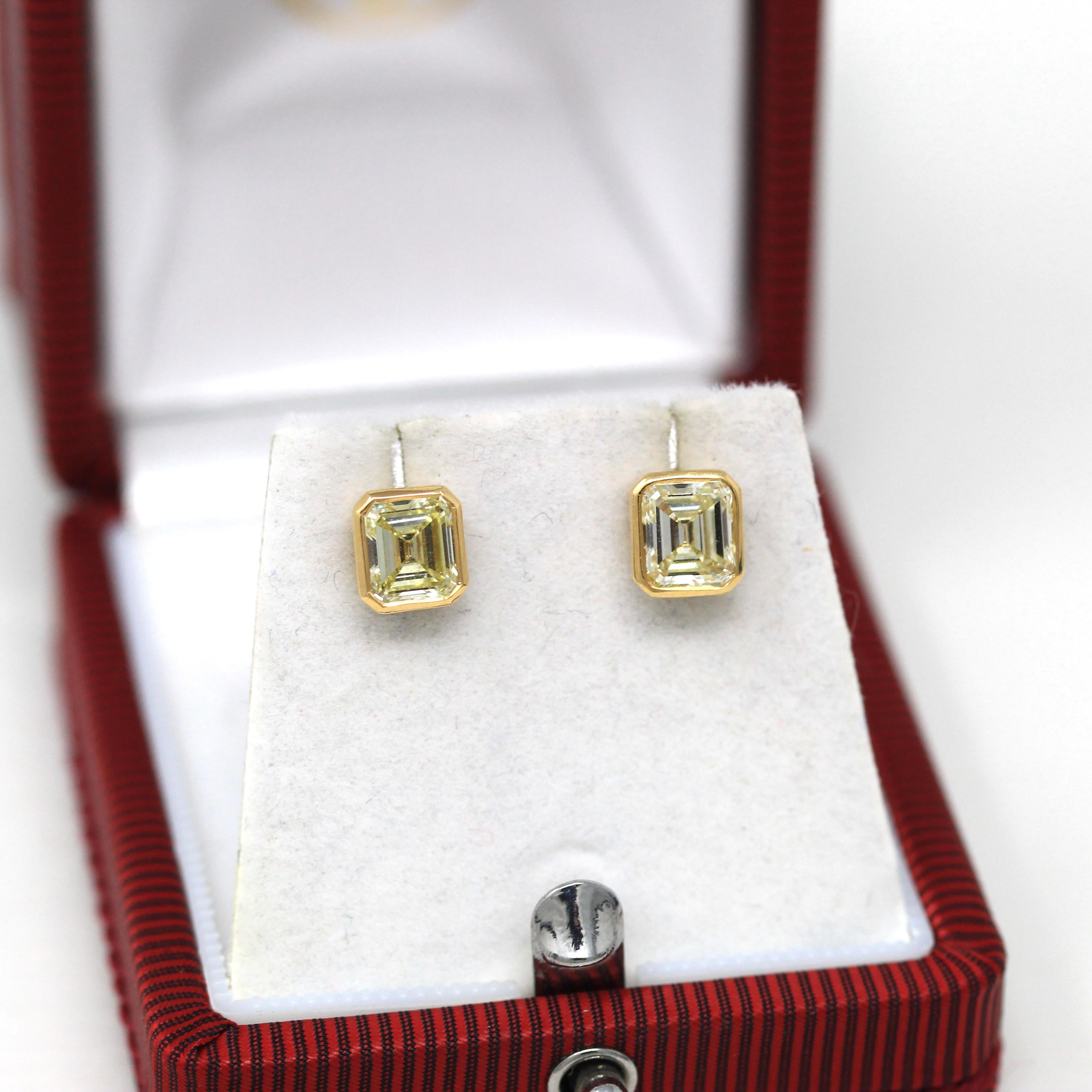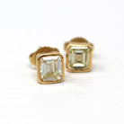 Genuine Diamond Earrings - Modern 18k Yellow Gold 1.59 CTW Gemstones Pierced Posts Studs - Bezel Set Emerald Cut Light Yellow Fine Jewelry