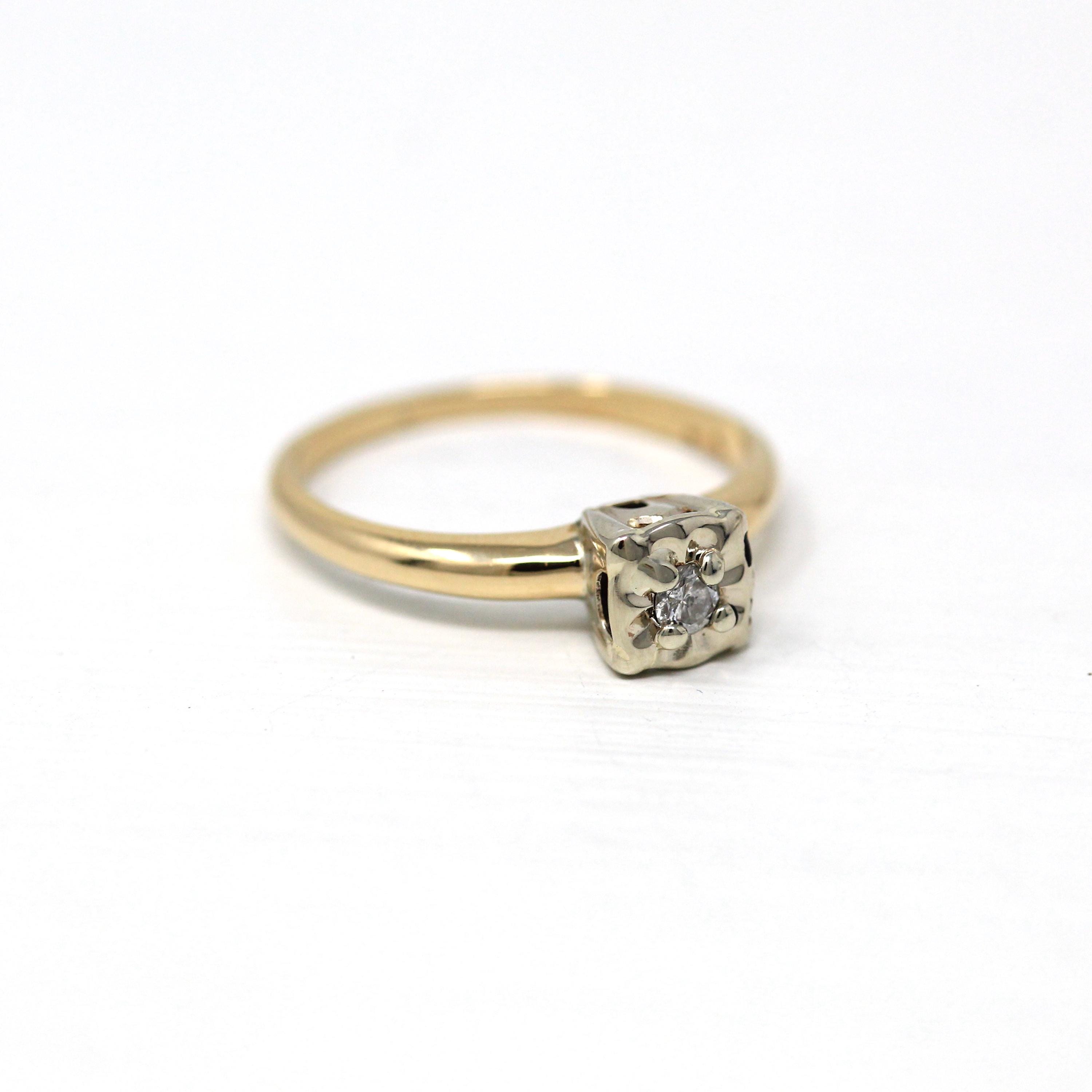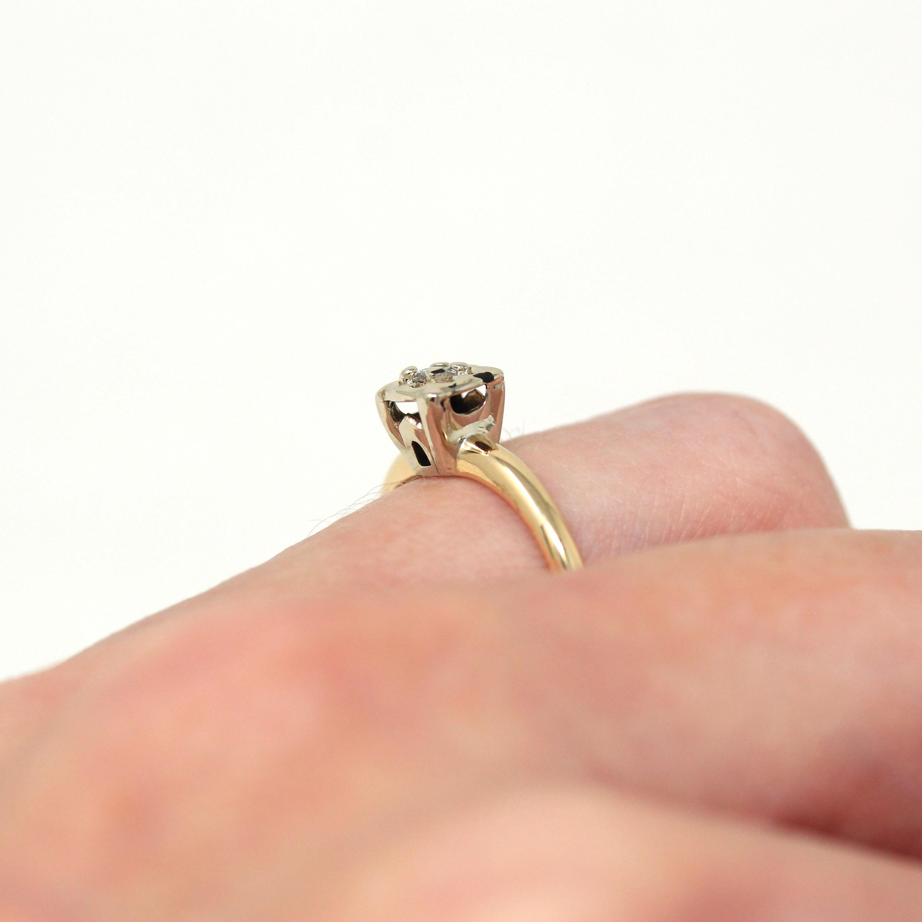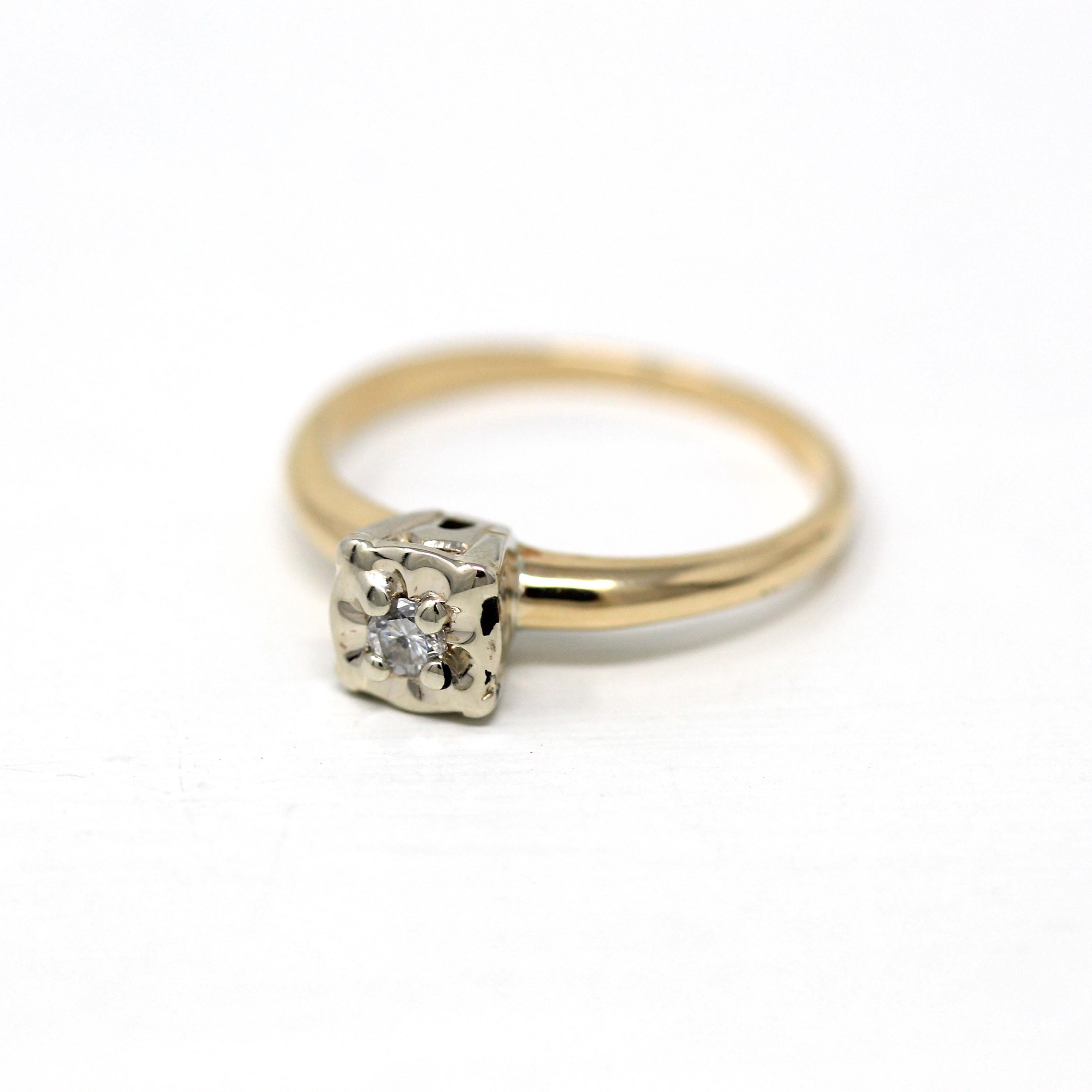 Vintage Diamond Ring - 14k Yellow & White Gold Round .17 CT Solitaire Engagement - Size 8 Retro Era 1990s Illusion Head Fine Wheat Jewelry