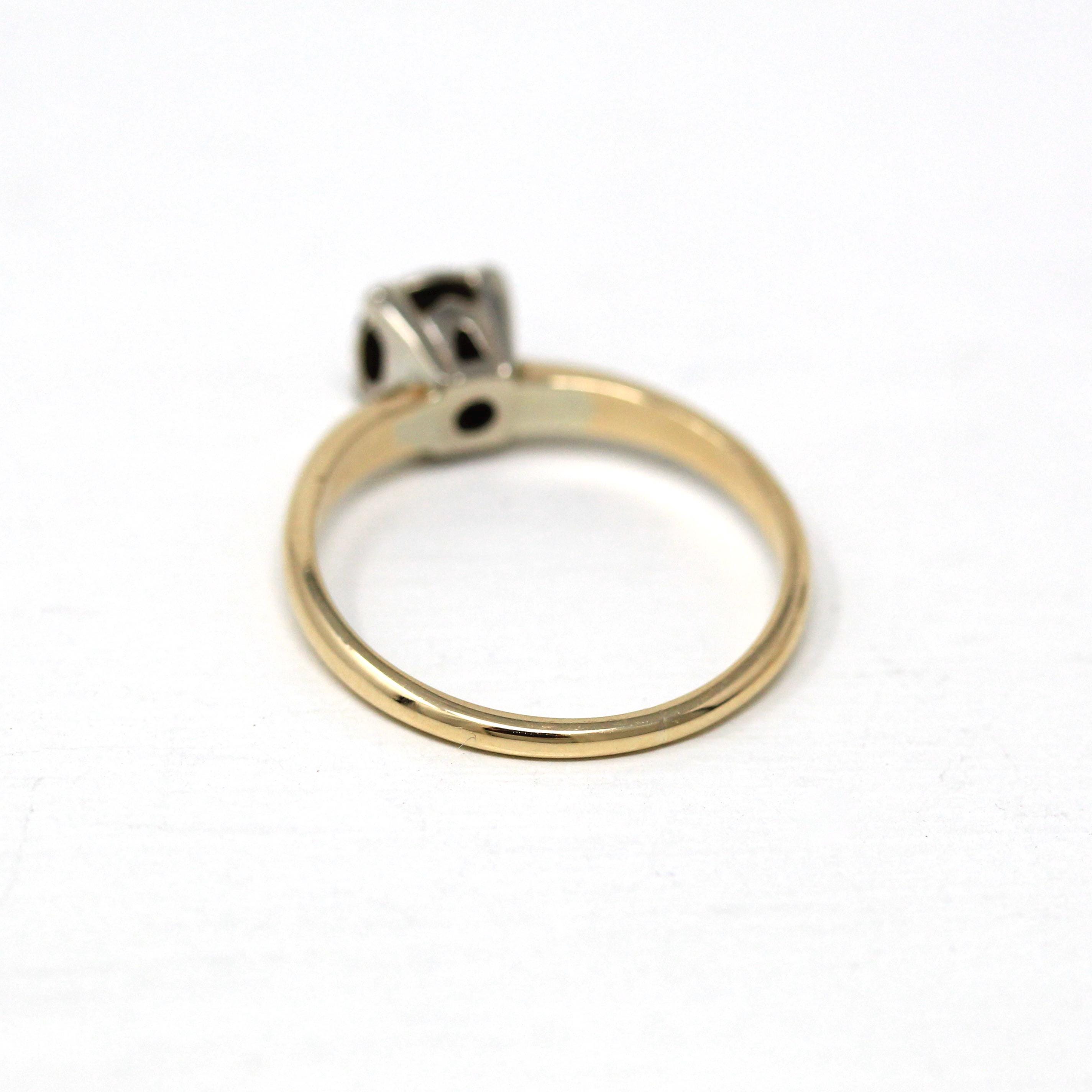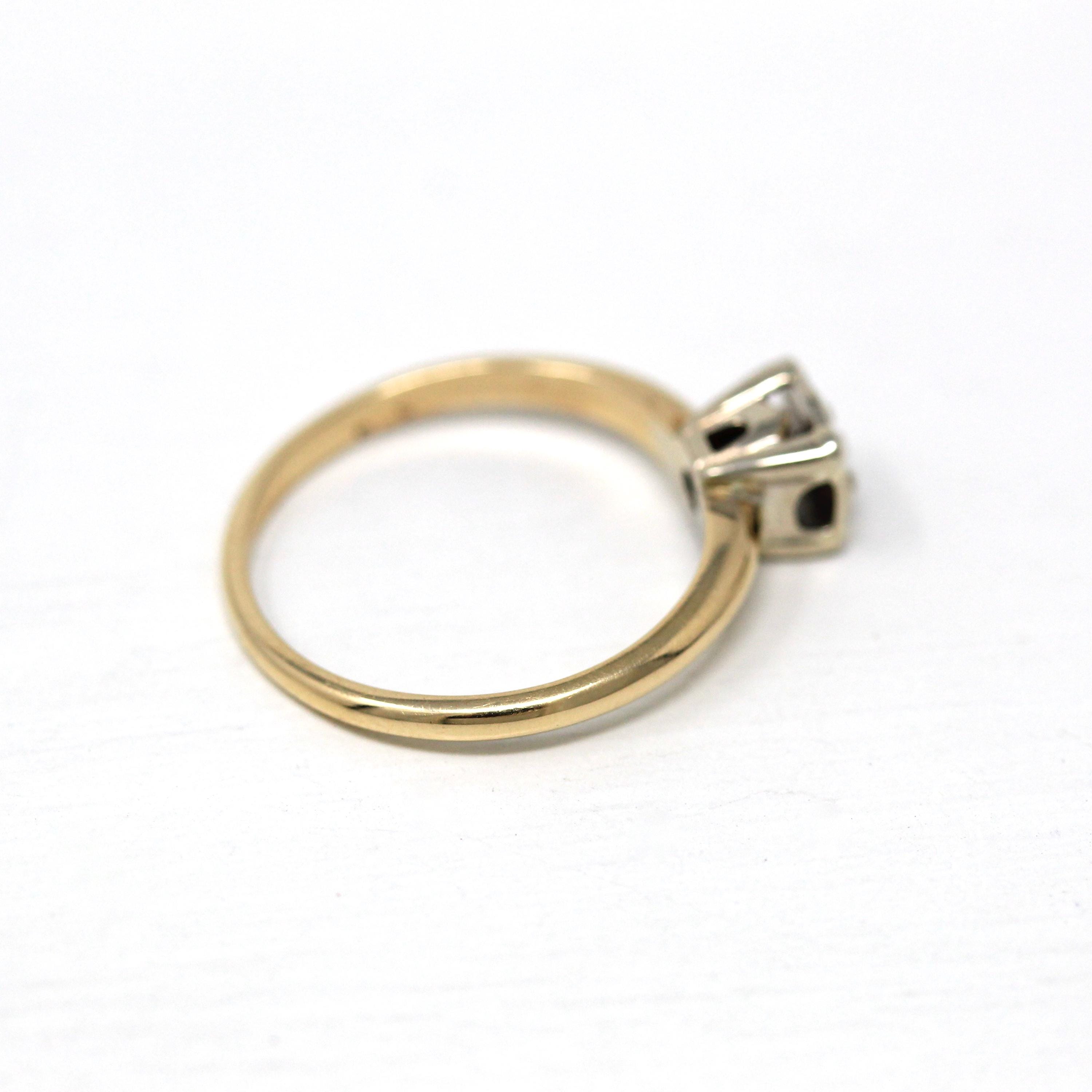 Diamond Engagement Ring - 14k Yellow & White Gold Natural .47 CT Emerald Cut - Size 4 1/4 Circa 1960s Retro Solitaire Fine Report Jewelry