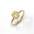 Antique 1.61 ct Old Mine Cut Diamond Engagement Ring - 18k Yellow Gold Bezel Fancy Light Yellow Gem - Size 6 GIA Report Fine Cushion Jewelry