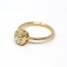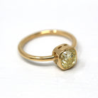 An absolutely stunning diamond engagement ring, featuring an antique diamond in a modern 18k yellow gold setting. The fancy light yellow diamond is 1.61 carats, and is securely bezel set. The GIA diamond is set low to the finger, and is set on a high polished dainty band. Incredible engagement ring!