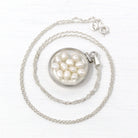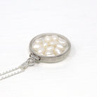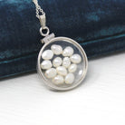 METAL/MATERIAL: medallón de plata de ley, cadena de plata de ley, cubiertas transparentes de lucita, 1 tornillo (se puede abrir y cerrar con un destornillador pequeño), 12 perlas barrocas (aprox. 4,73 x 3,14 mm, que varían en tamaño)