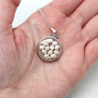 Medallón de agitador de perlas barrocas - Encanto de collar colgante de lucita de plata de ley hecho a mano - Joyería de tamaño de níquel con bisel de moneda de piedra de nacimiento de junio