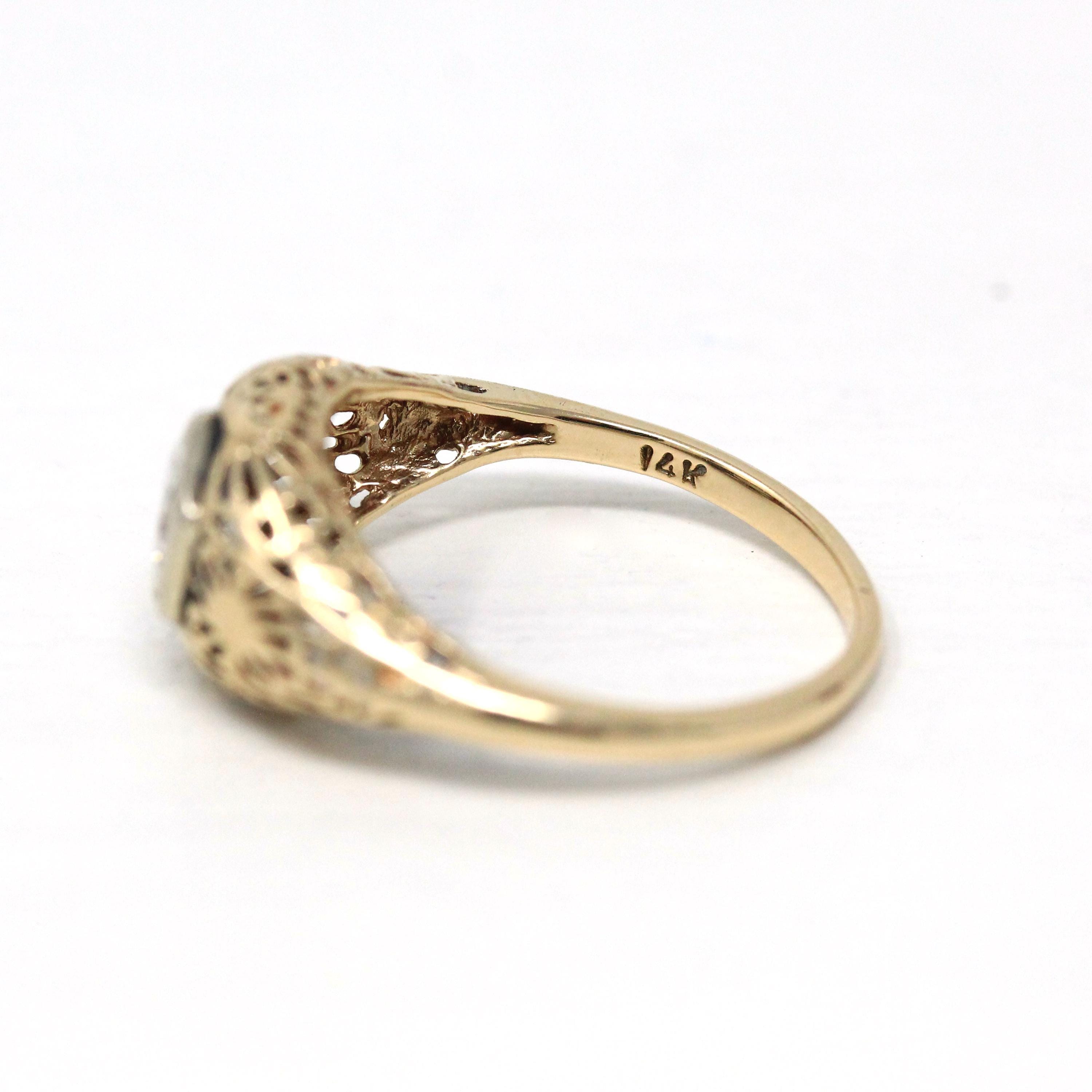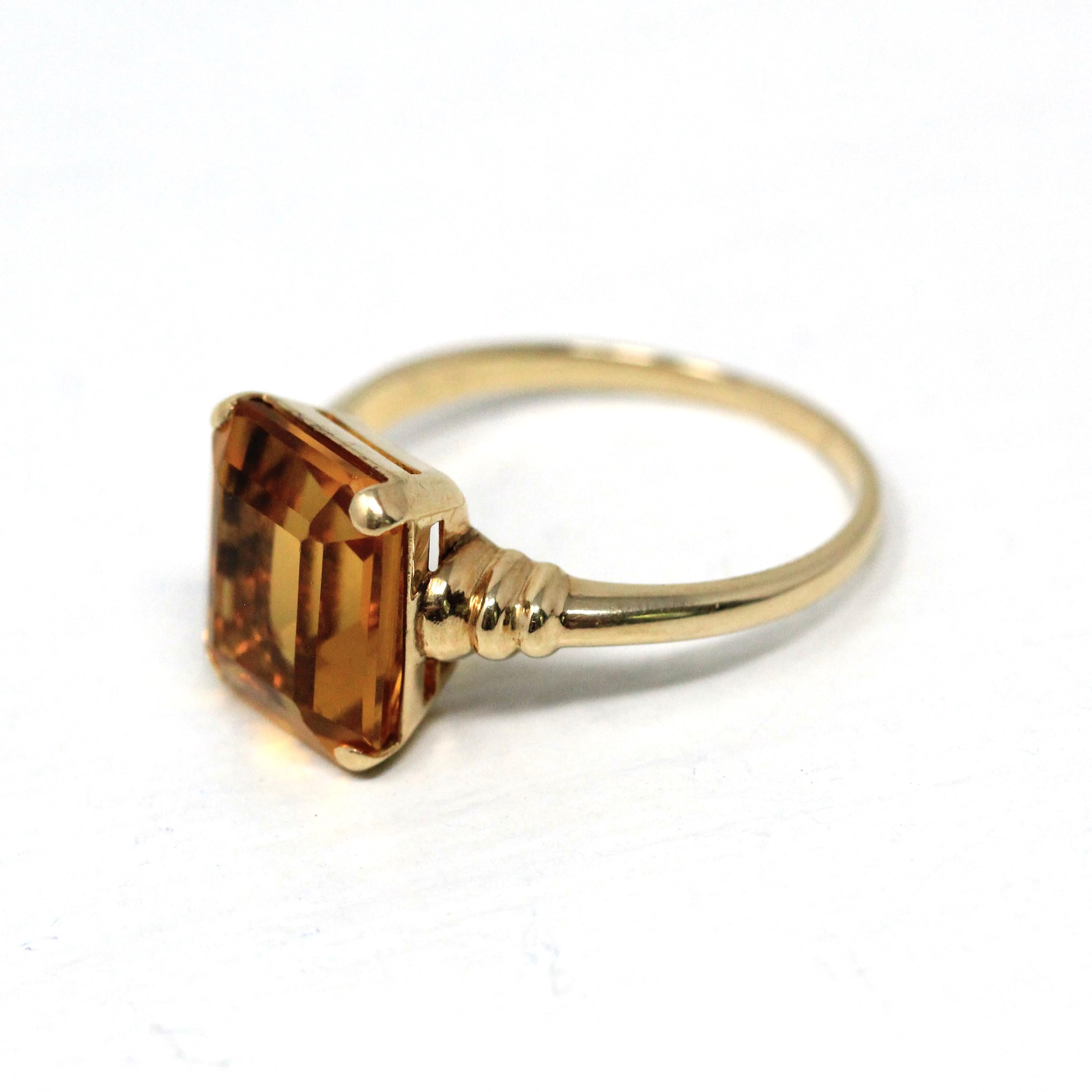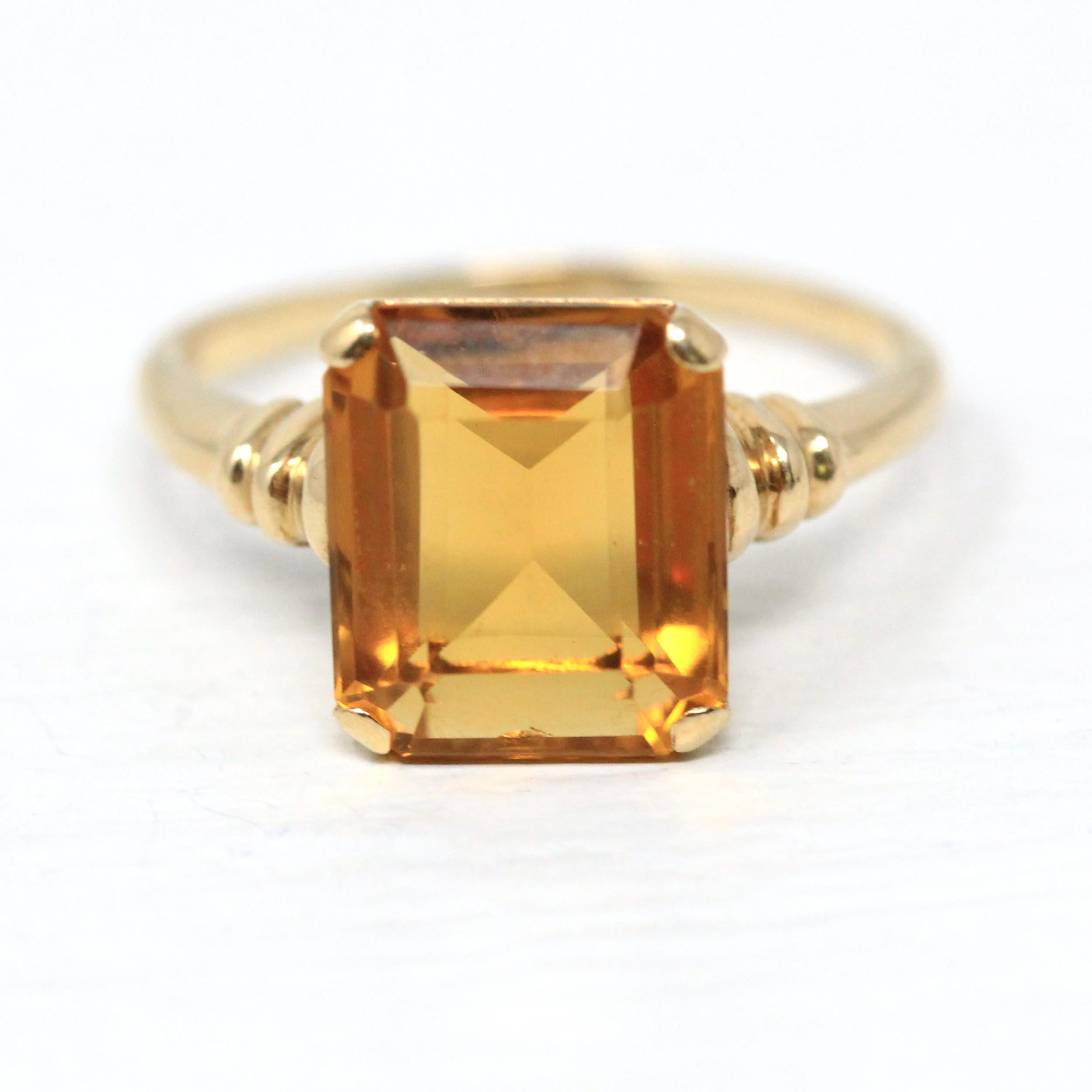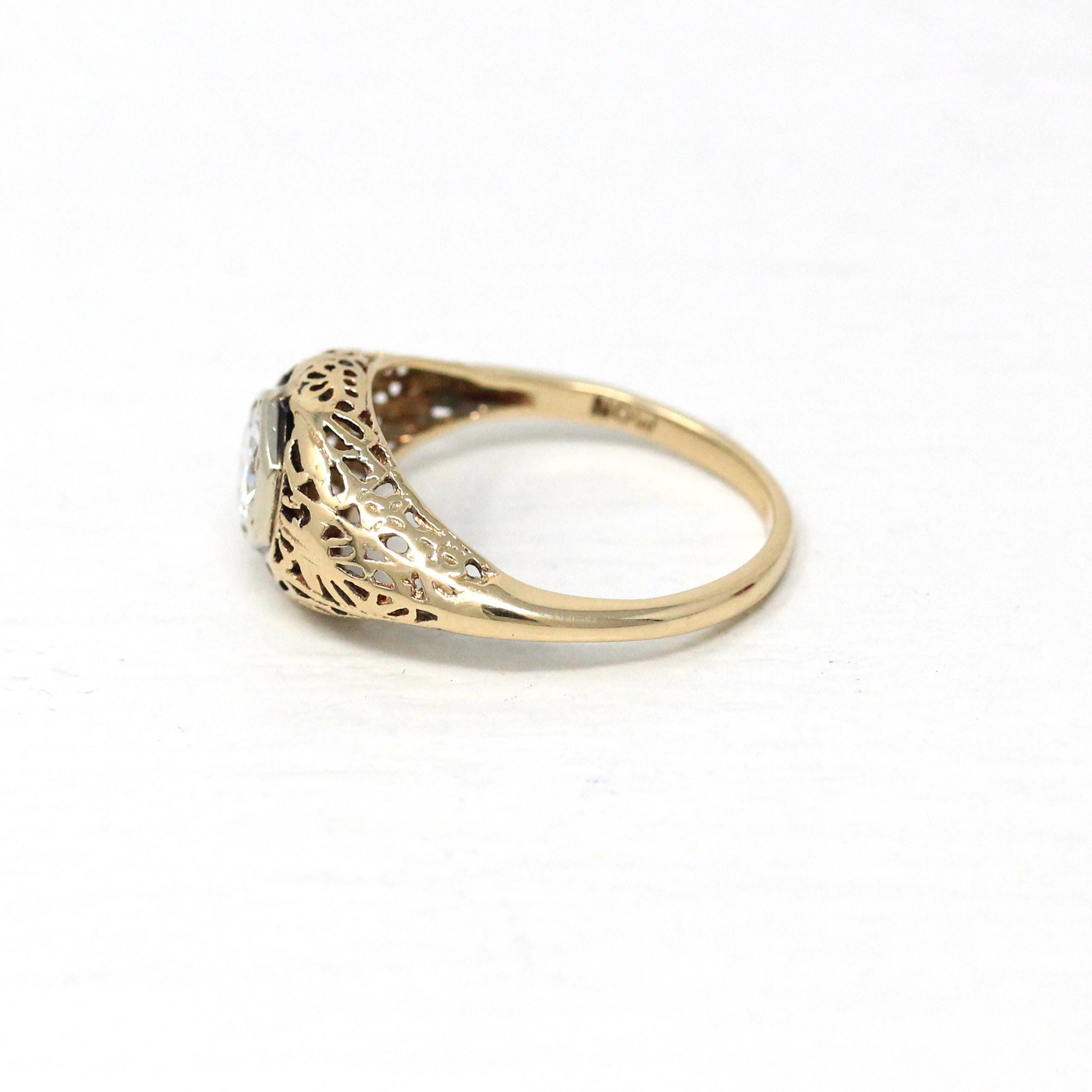 Vintage Onyx Ring - Retro 10k Yellow Gold Rectangular Cut Natural Black Chalcedony Gem - Circa 1940s Size 6 Statement Fine Diamond Jewelry