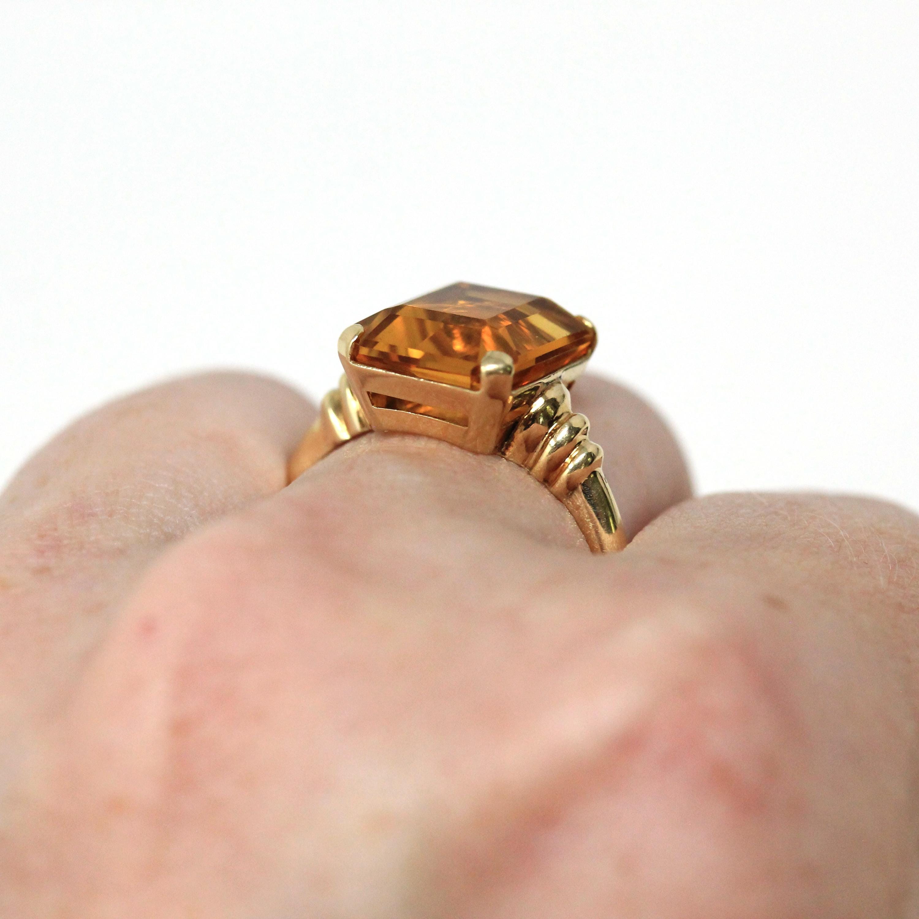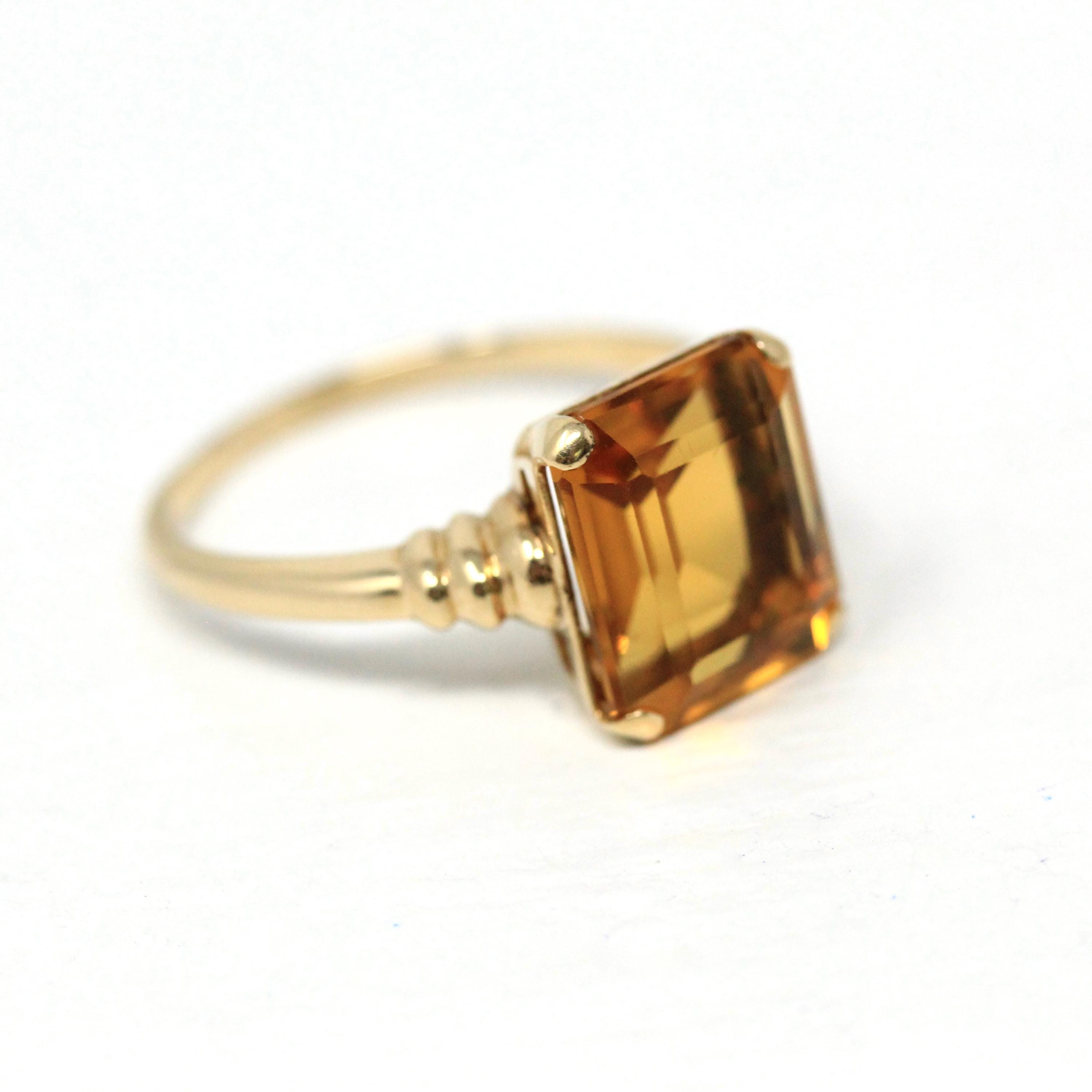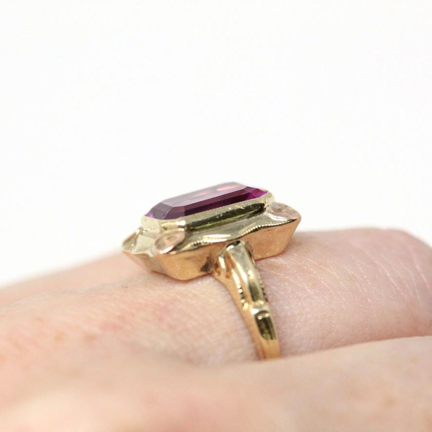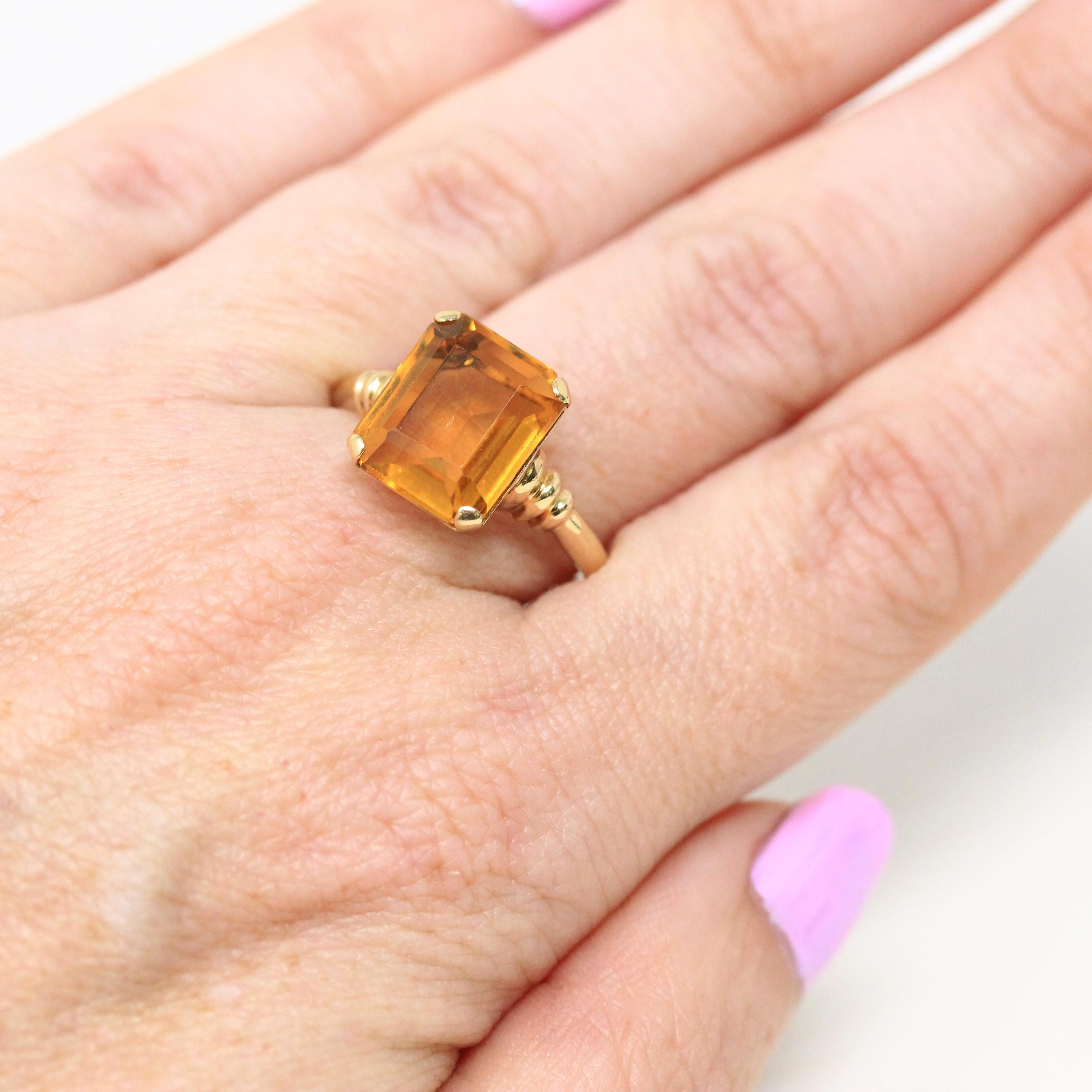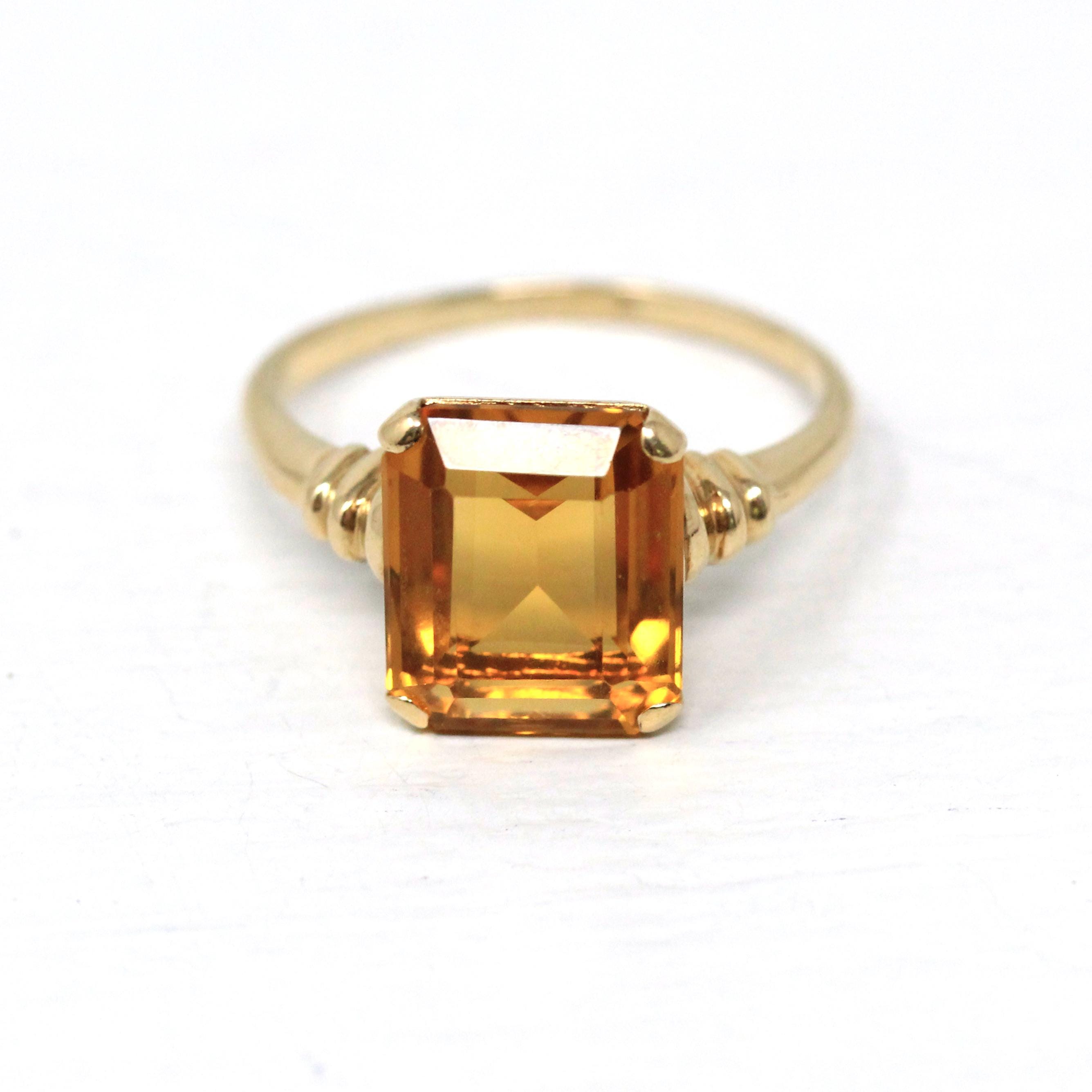 Vintage Onyx Ring - Retro 10k Yellow Gold Rectangular Cut Natural Black Chalcedony Gem - Circa 1940s Size 6 Statement Fine Diamond Jewelry