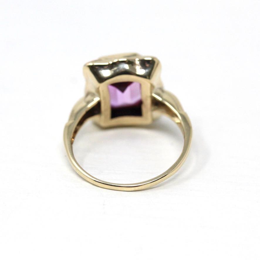 Created Star Sapphire Ring - Retro 10k Yellow Gold Cabochon .47 CT Gemstone - Vintage Circa 1970s Size 6 September Birthstone Fine Jewelry