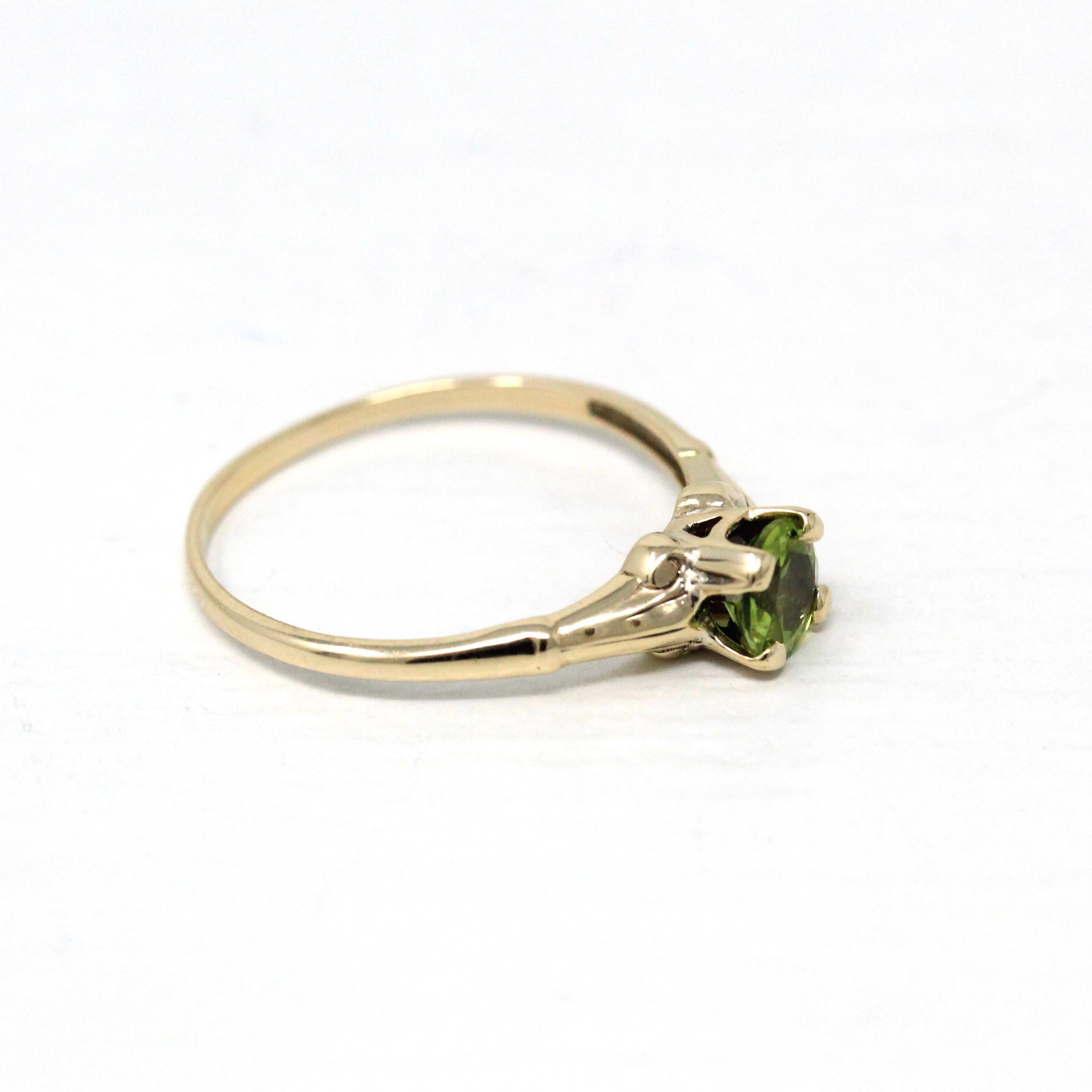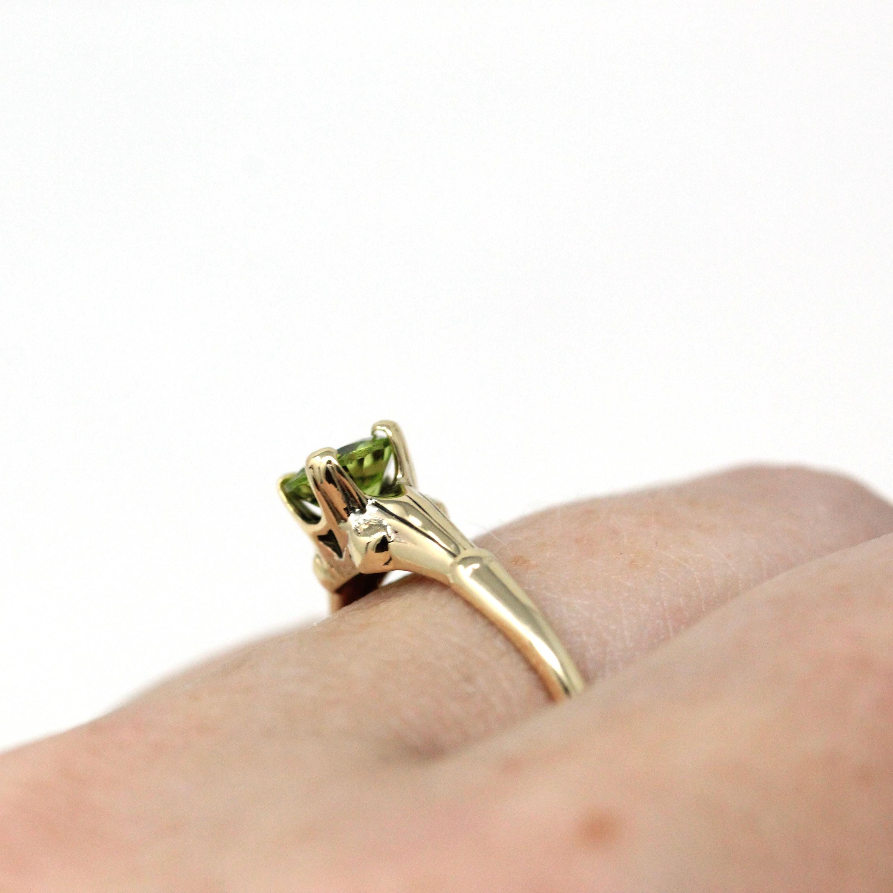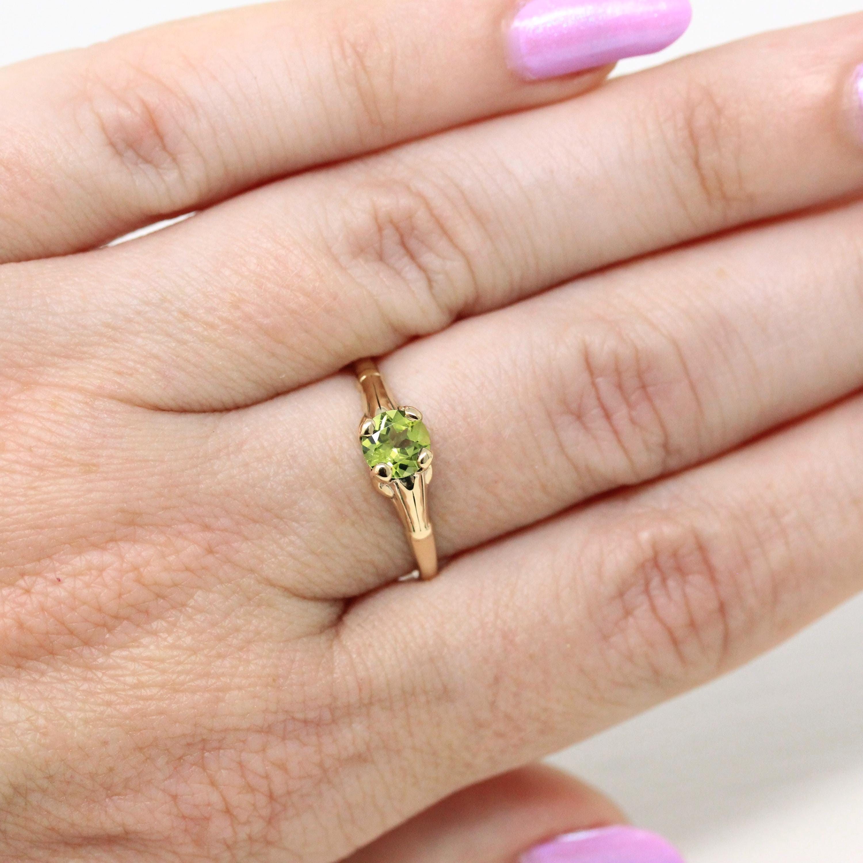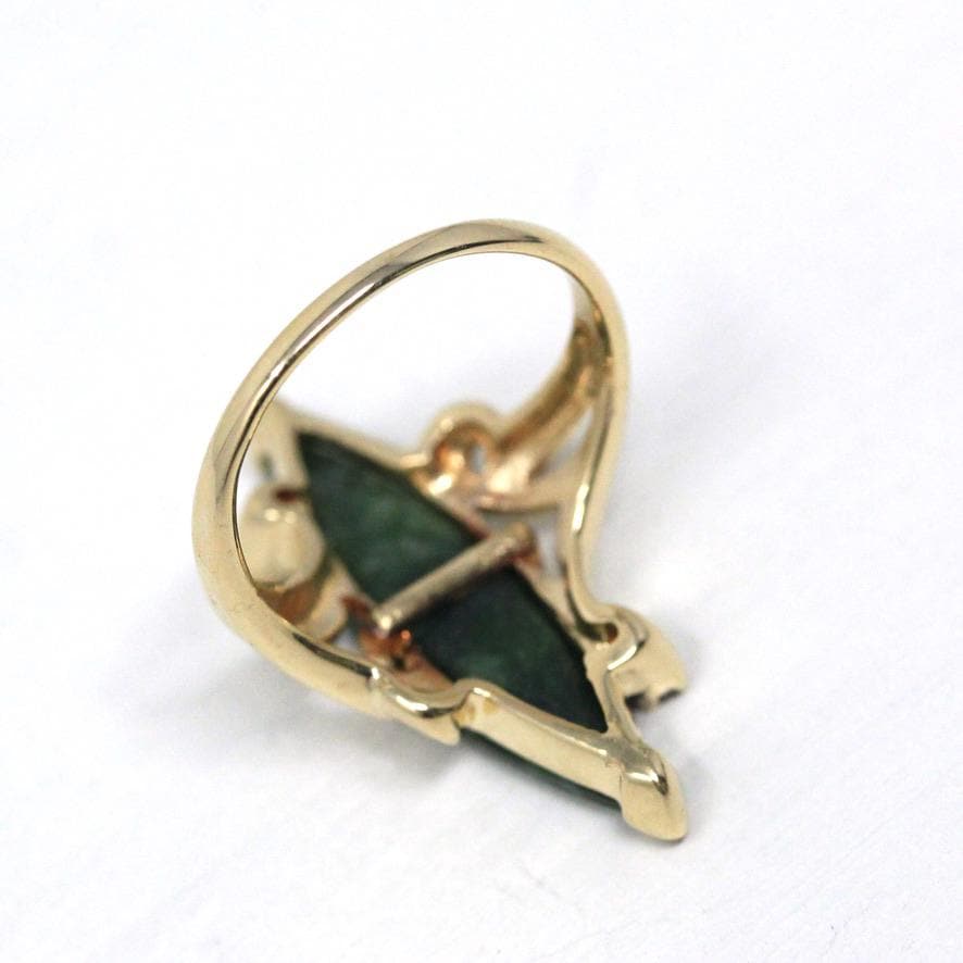 Nephrite Jade Ring - Retro 10k Yellow Gold Marquise Cut Natural Green Gemstone - Vintage 1960s Era Size 5 Navette Statement Fine 60s Jewelry