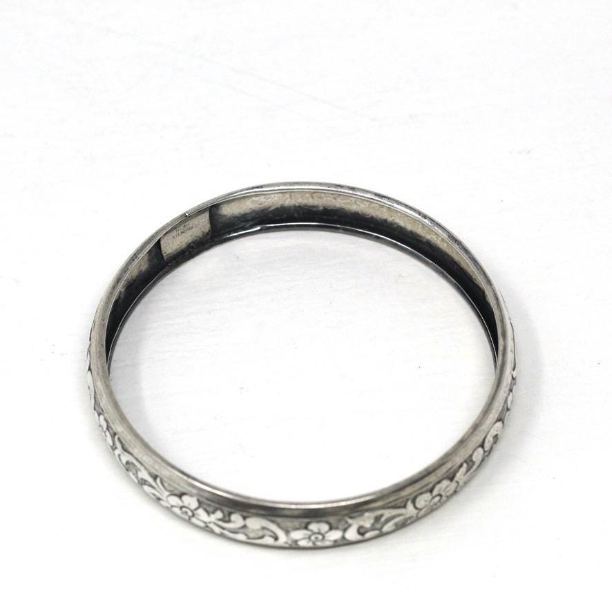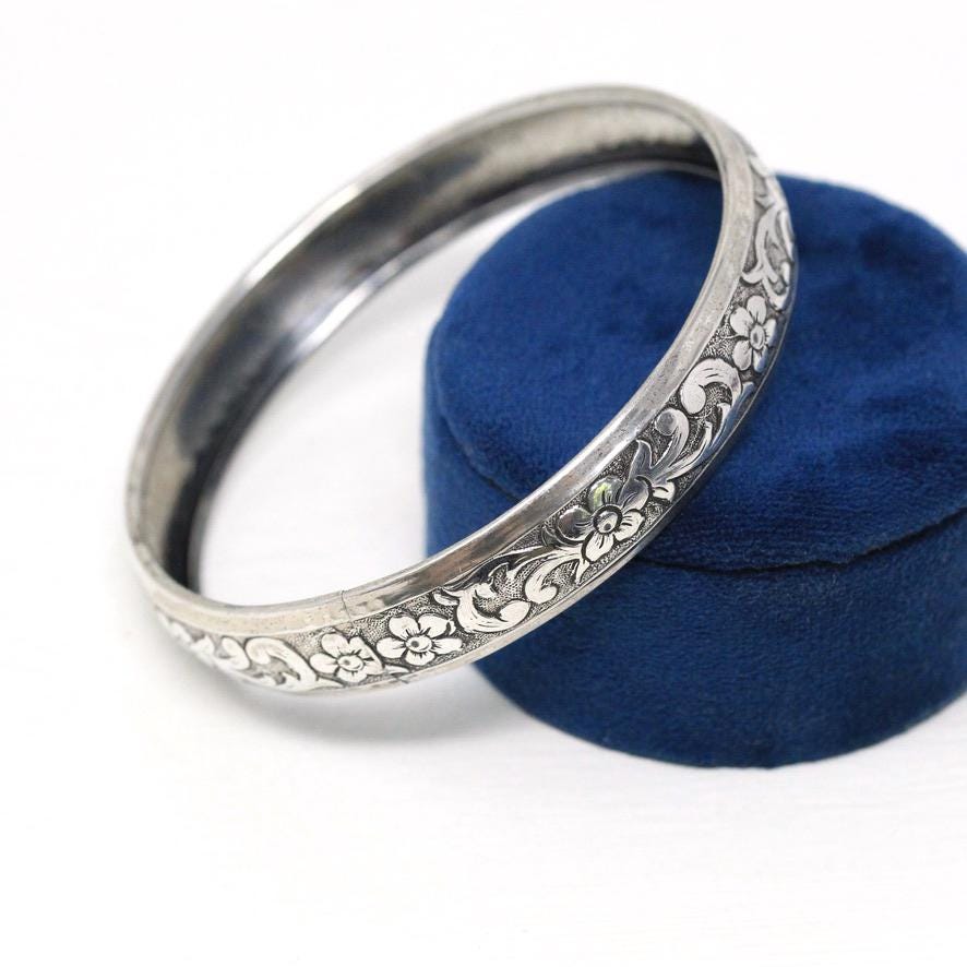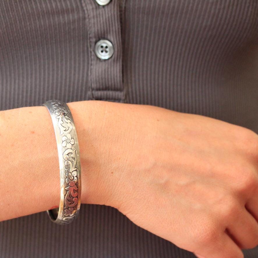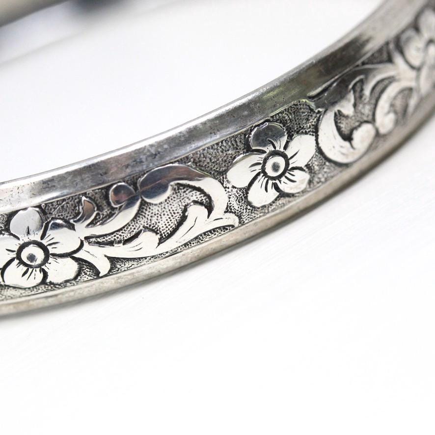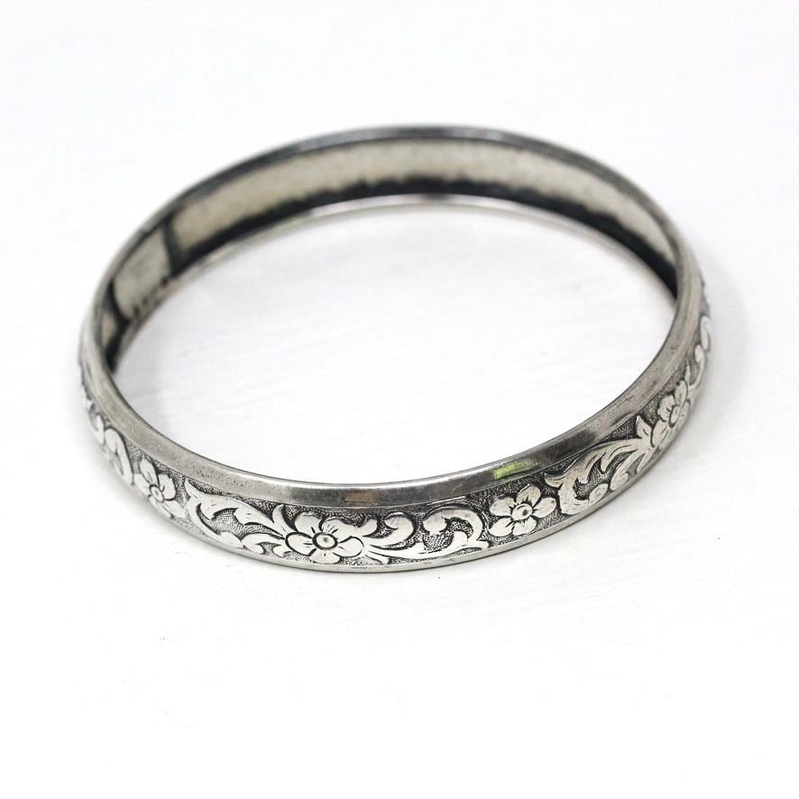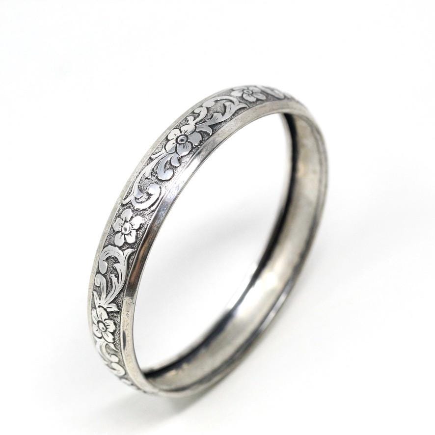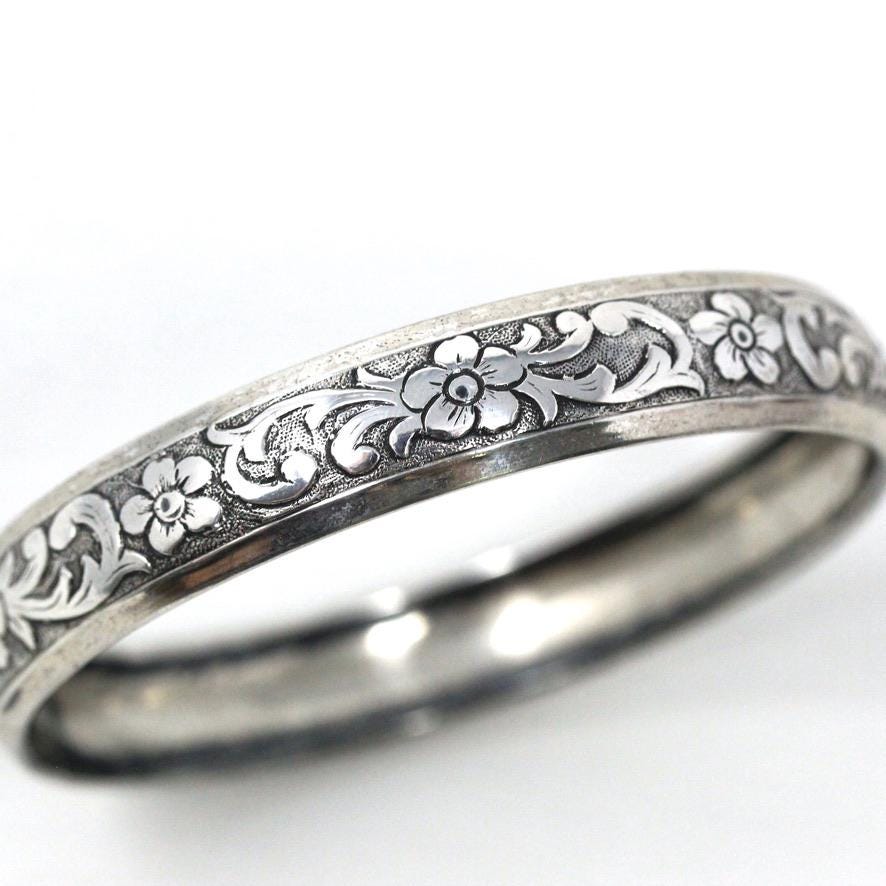 Vintage Flower Bangle - Retro 14k Gold Filled Engraved Flower Design Polished Bracelet - Circa 1960s Era Statement HFB H.F. Barrows Jewelry