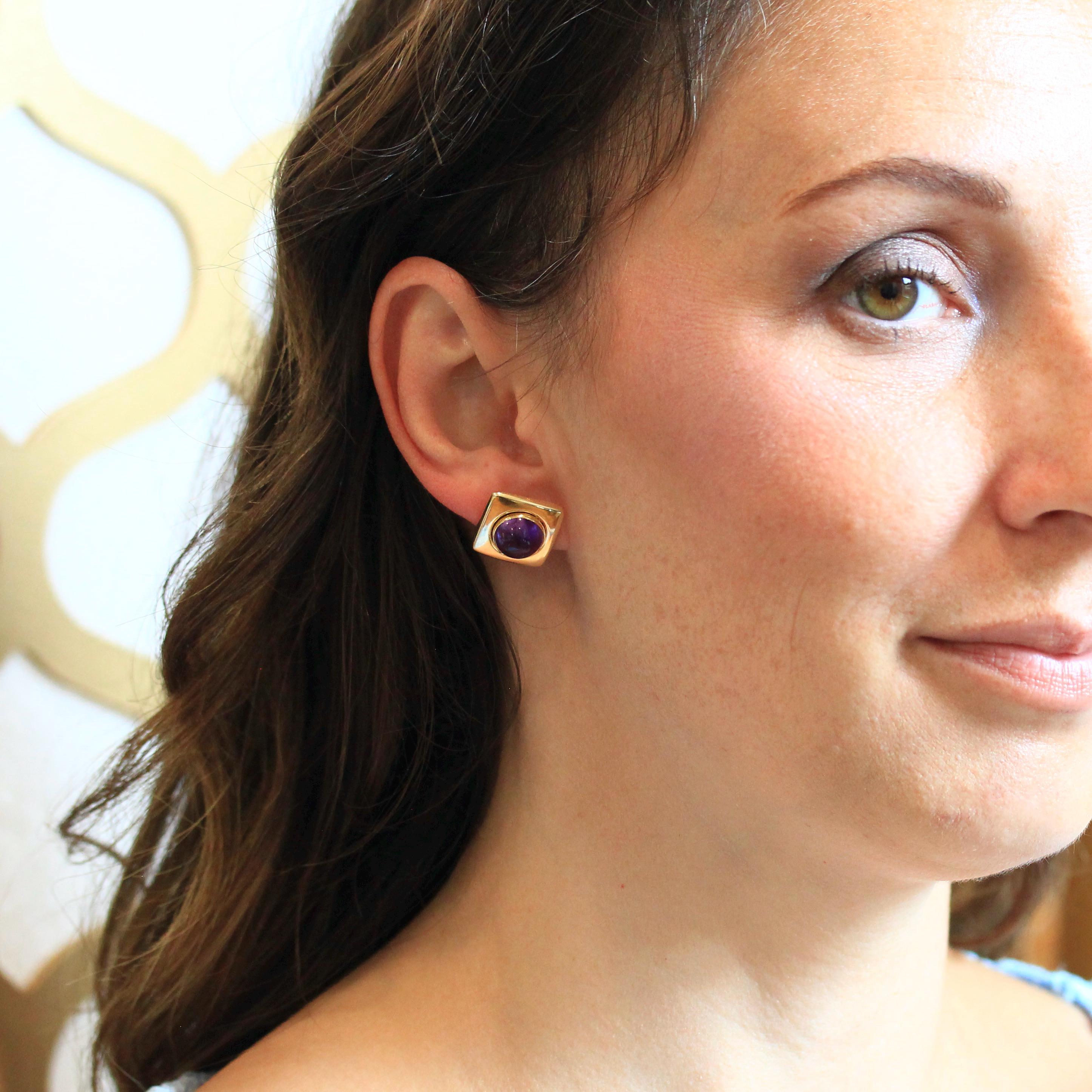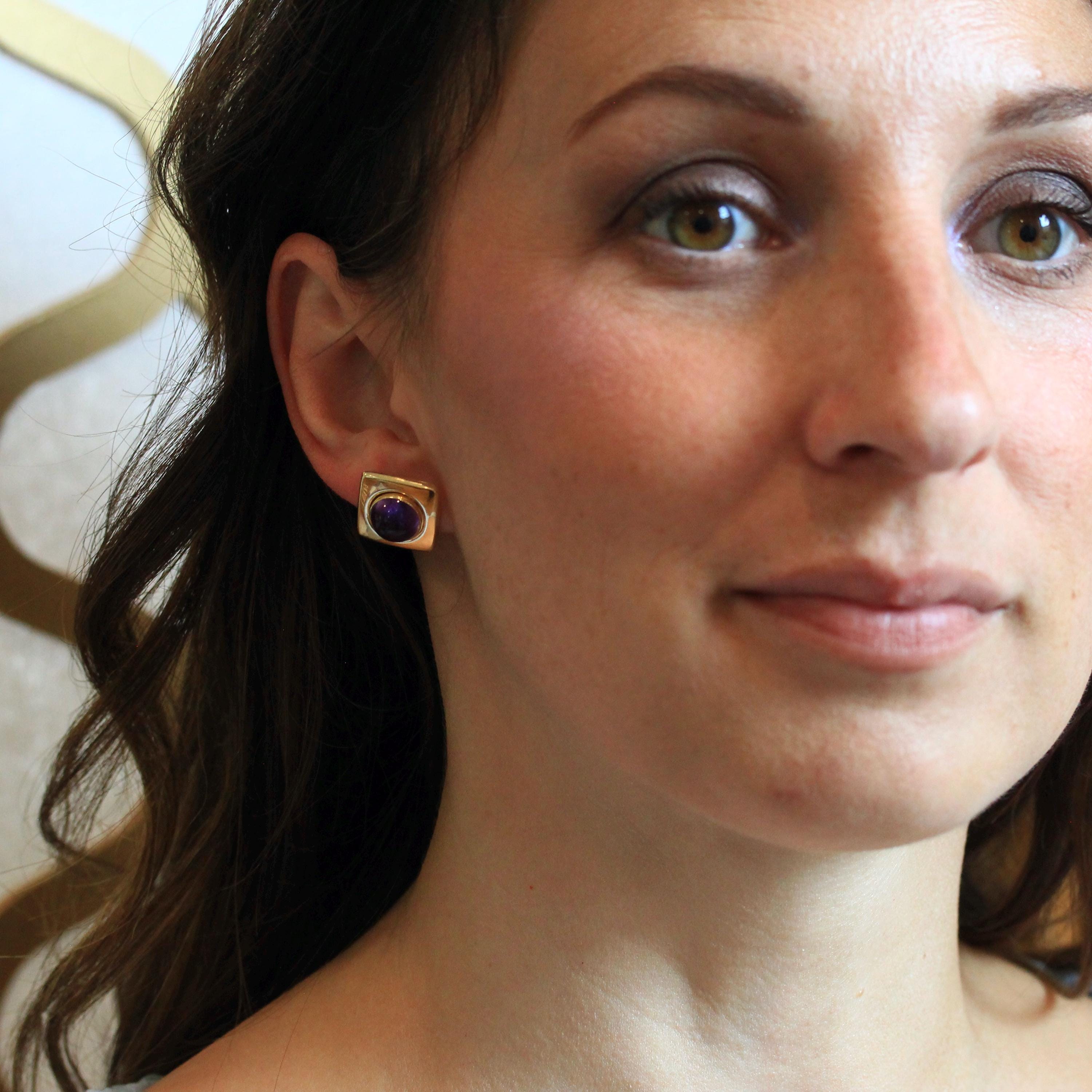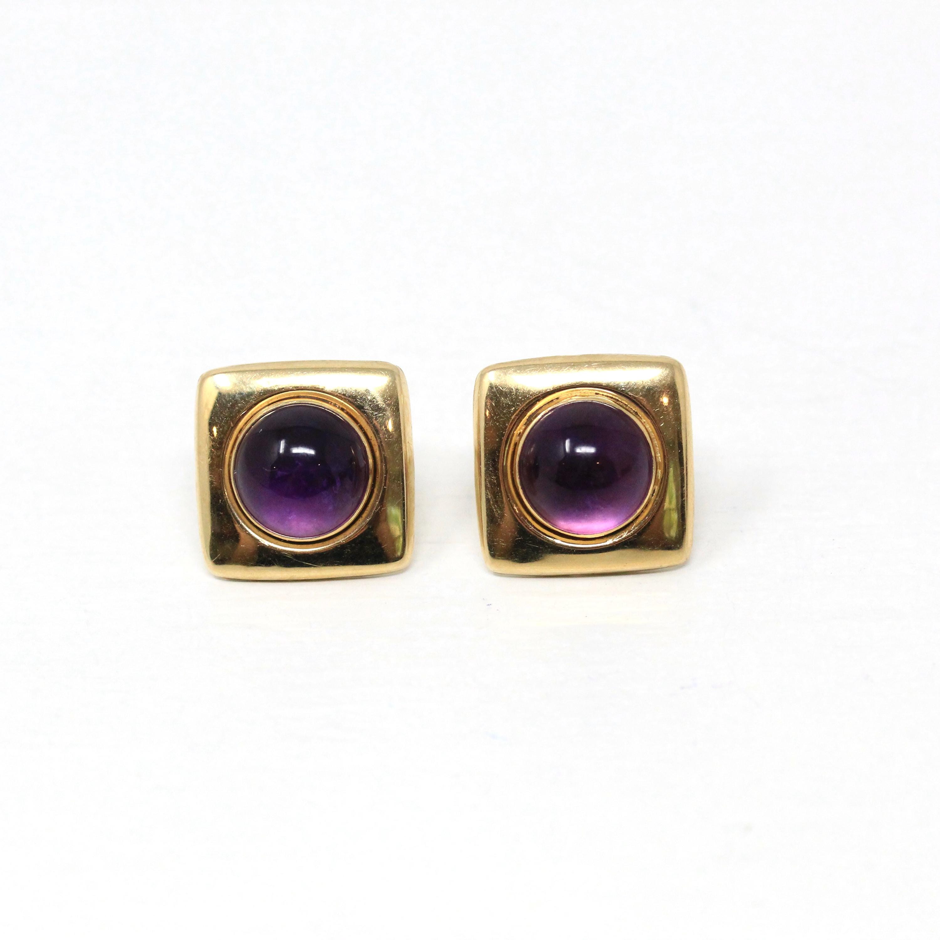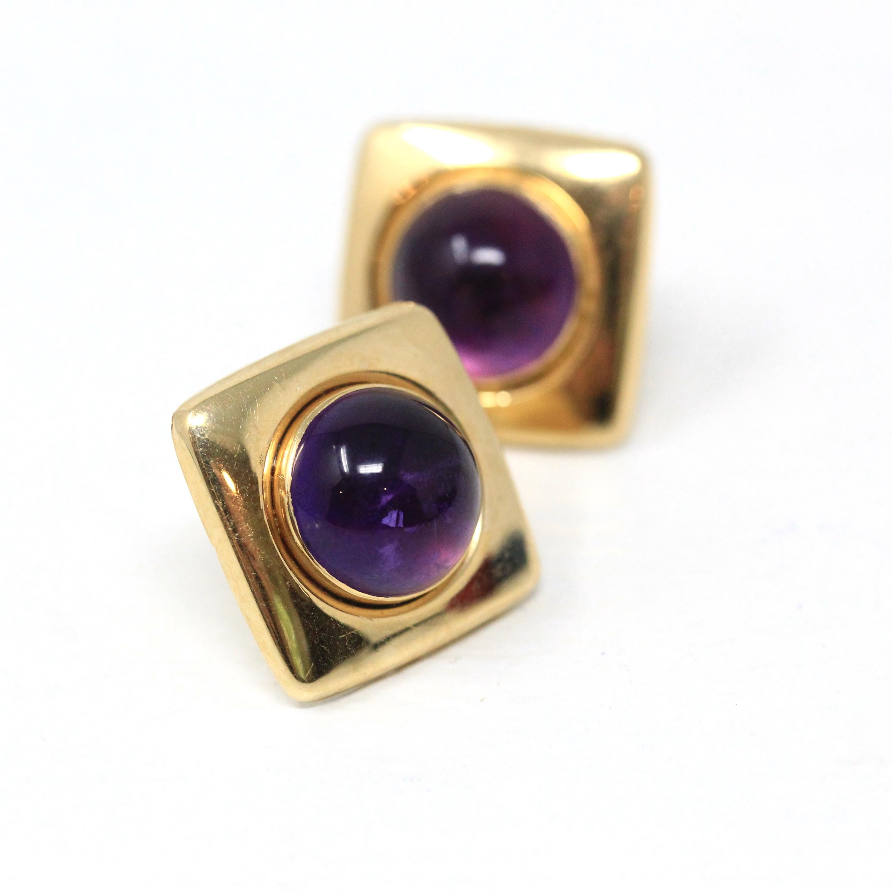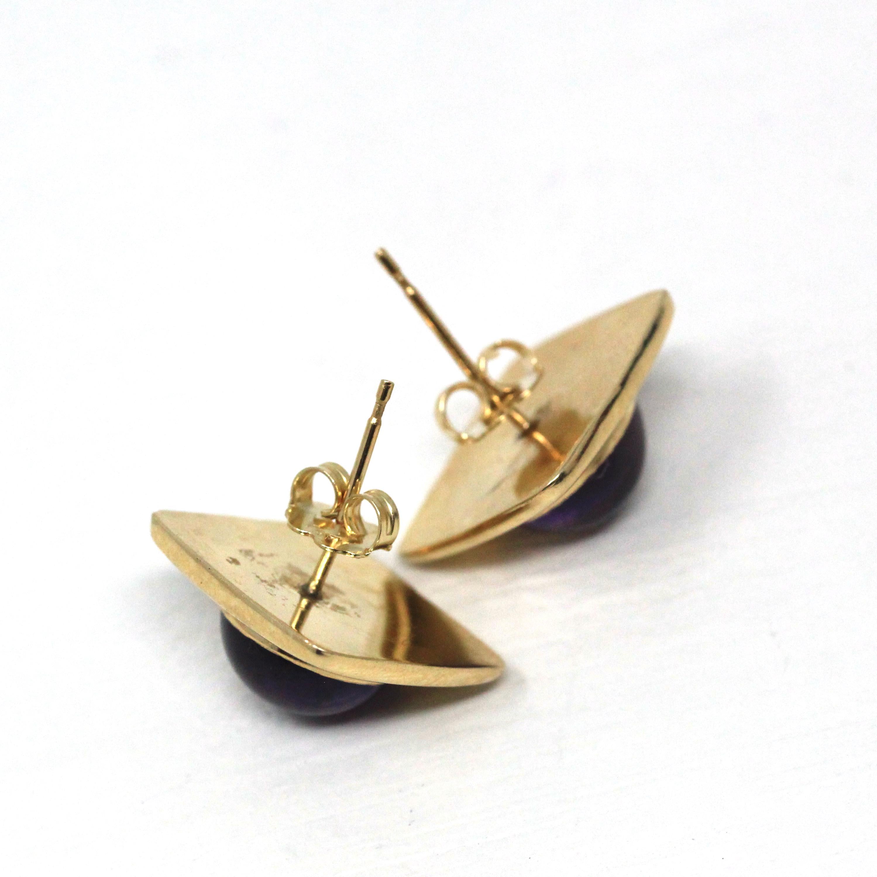 Retro Citrine Earrings - Vintage 22k Yellow Gold Pierced Push Back Dangle Dark Orange .67 CT Gems - Circa 1970s Era Fine Statement Jewelry