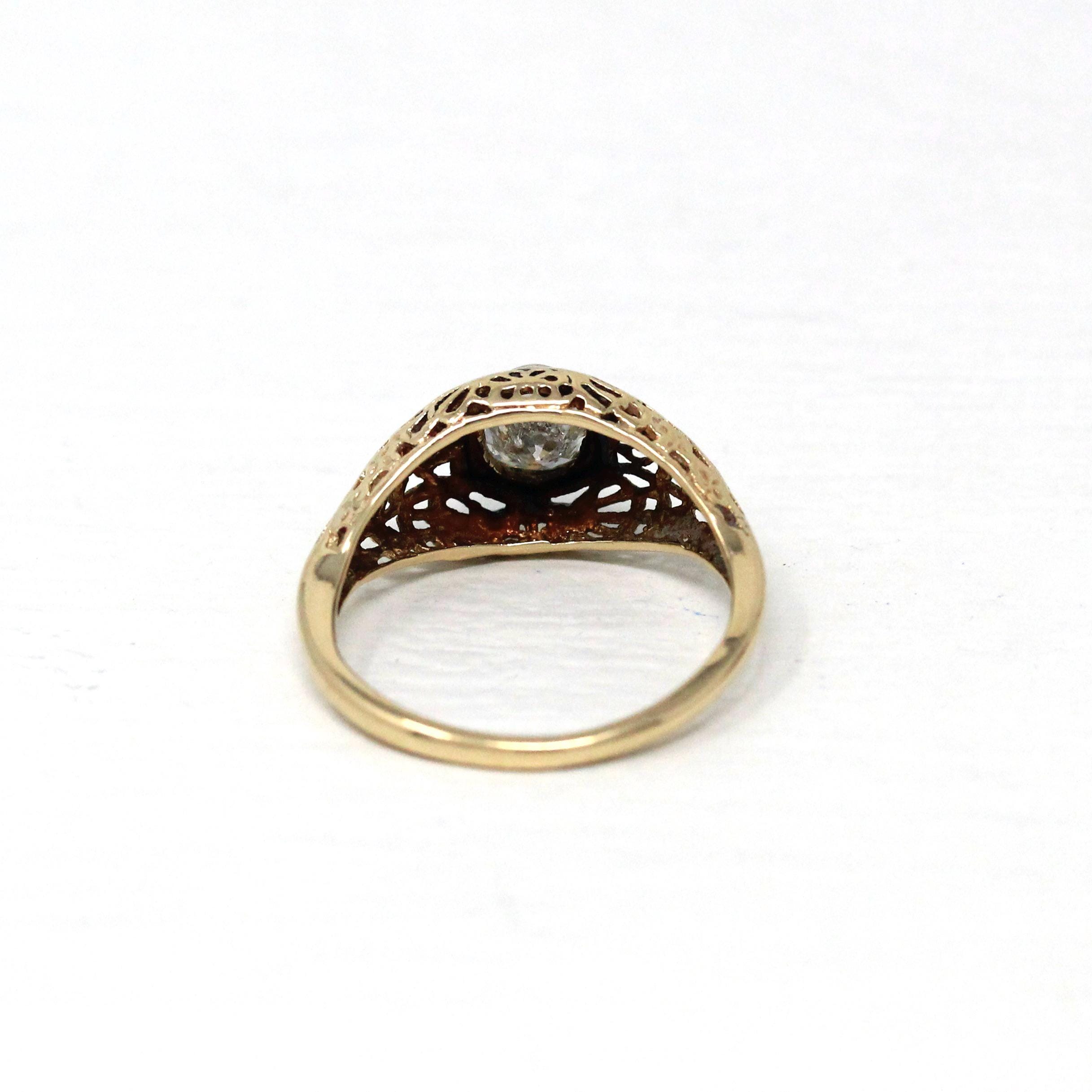 Vintage Diamond Ring - 14k Yellow Gold Round .10 CTW Three Stone Engagement - Retro 40s Size 5 1/4 Illusion Head Fine Engagement Jewelry