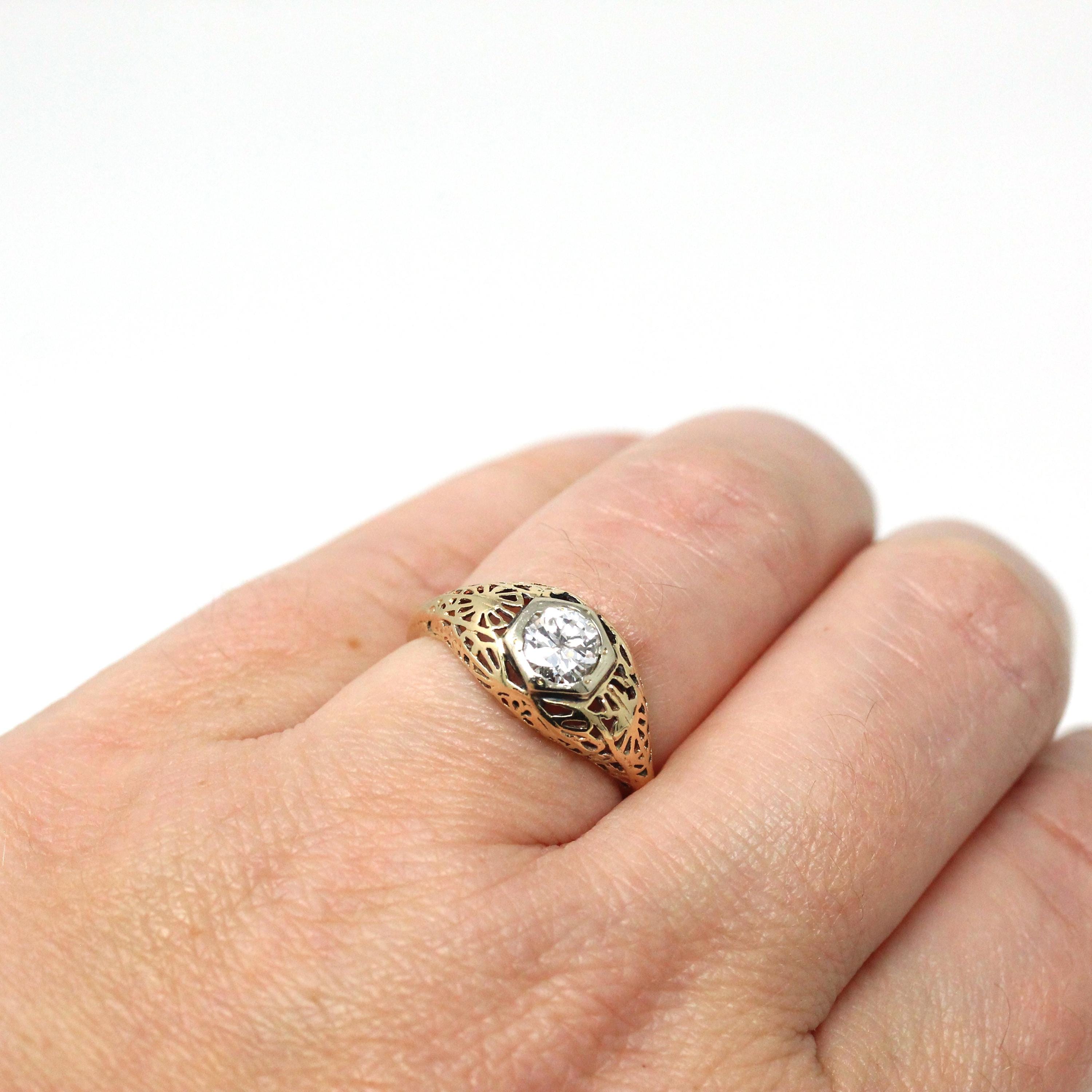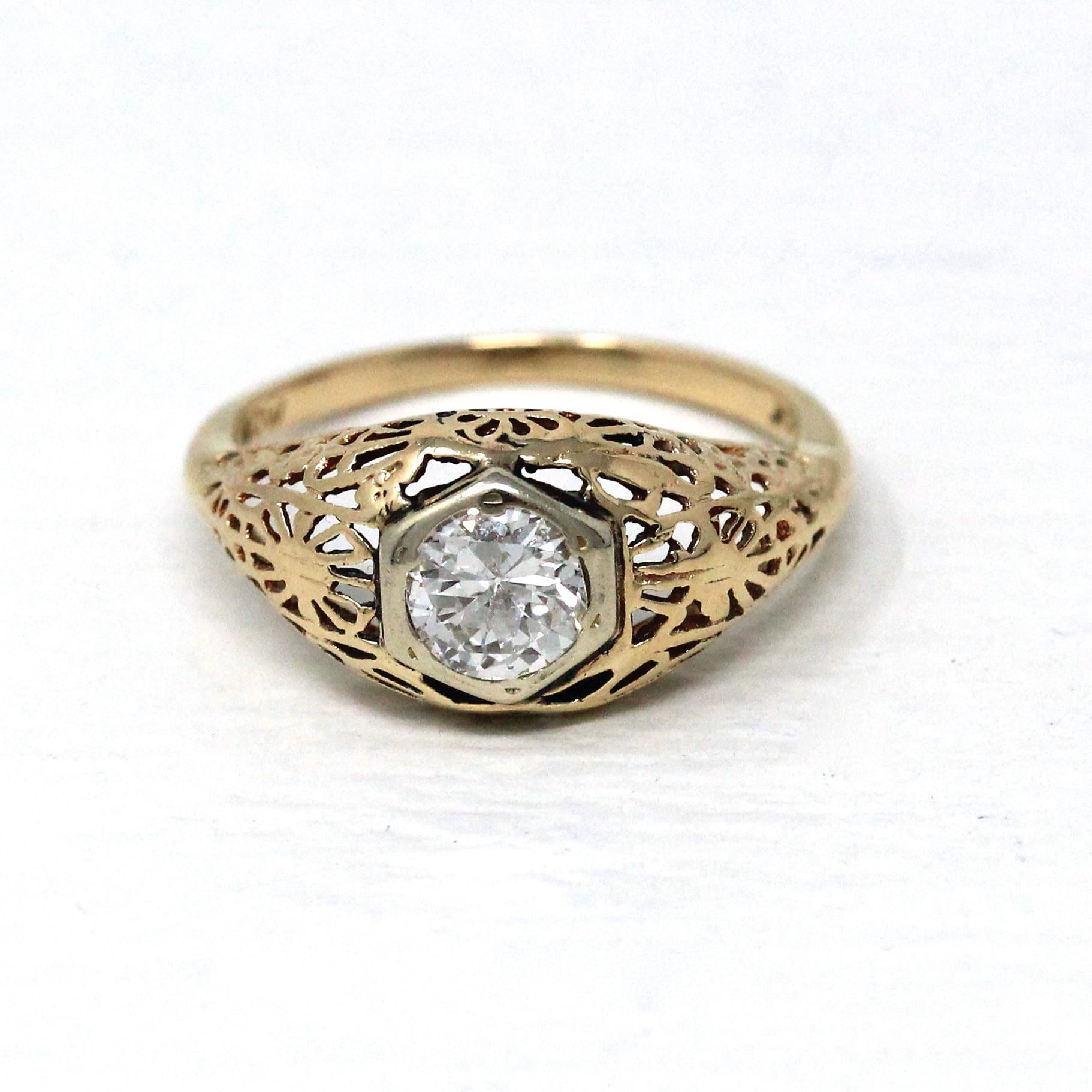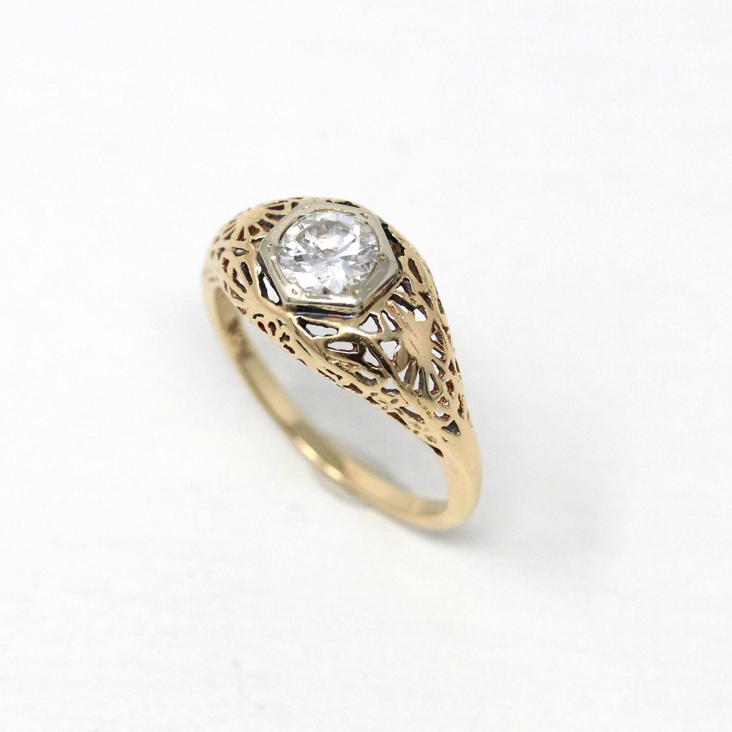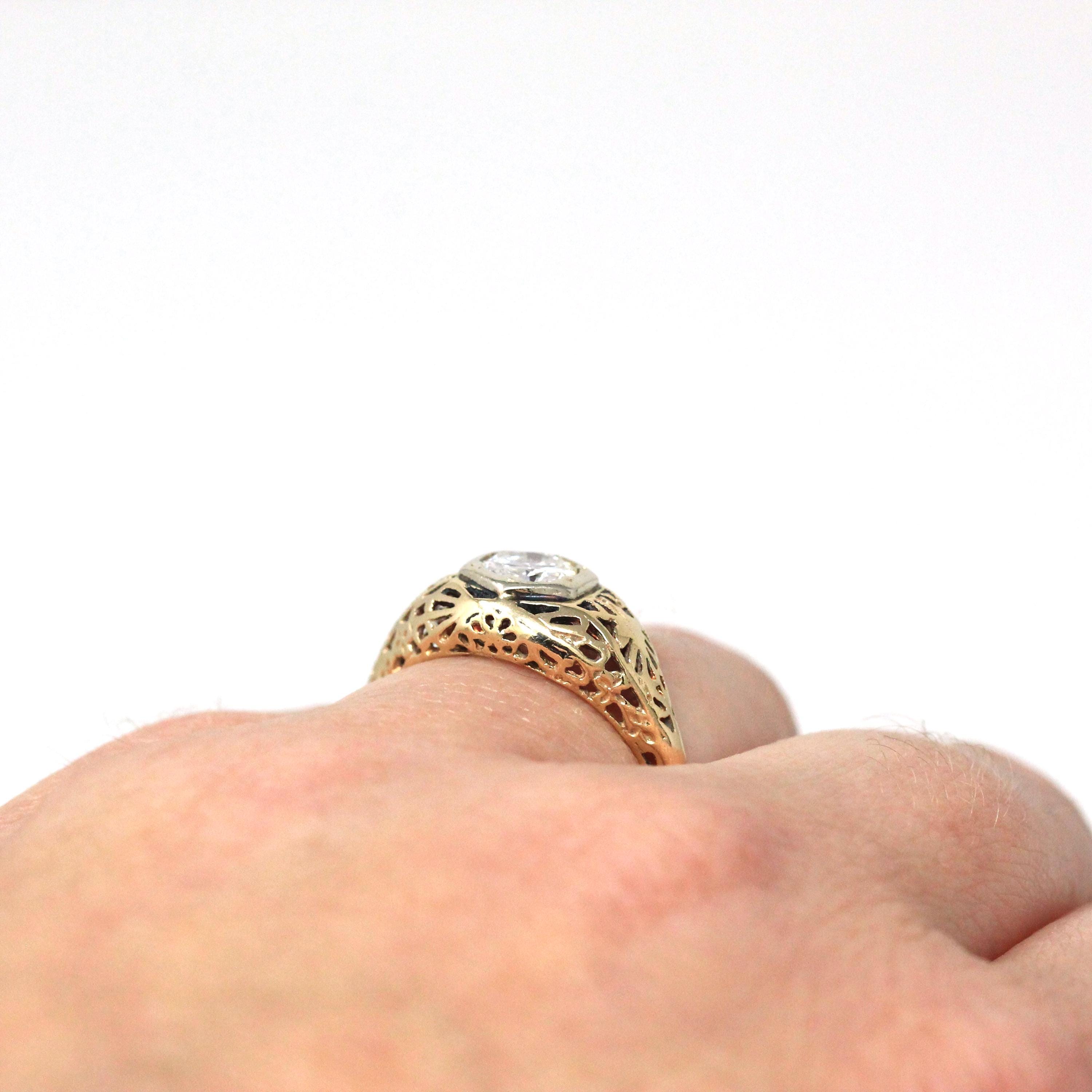 Mid Century Engagement Ring - 14k Yellow Gold & Platinum 1.28 CTW Natural Diamond - Vintage Circa 1940s Size 6 1/2 Engagement Report Jewelry