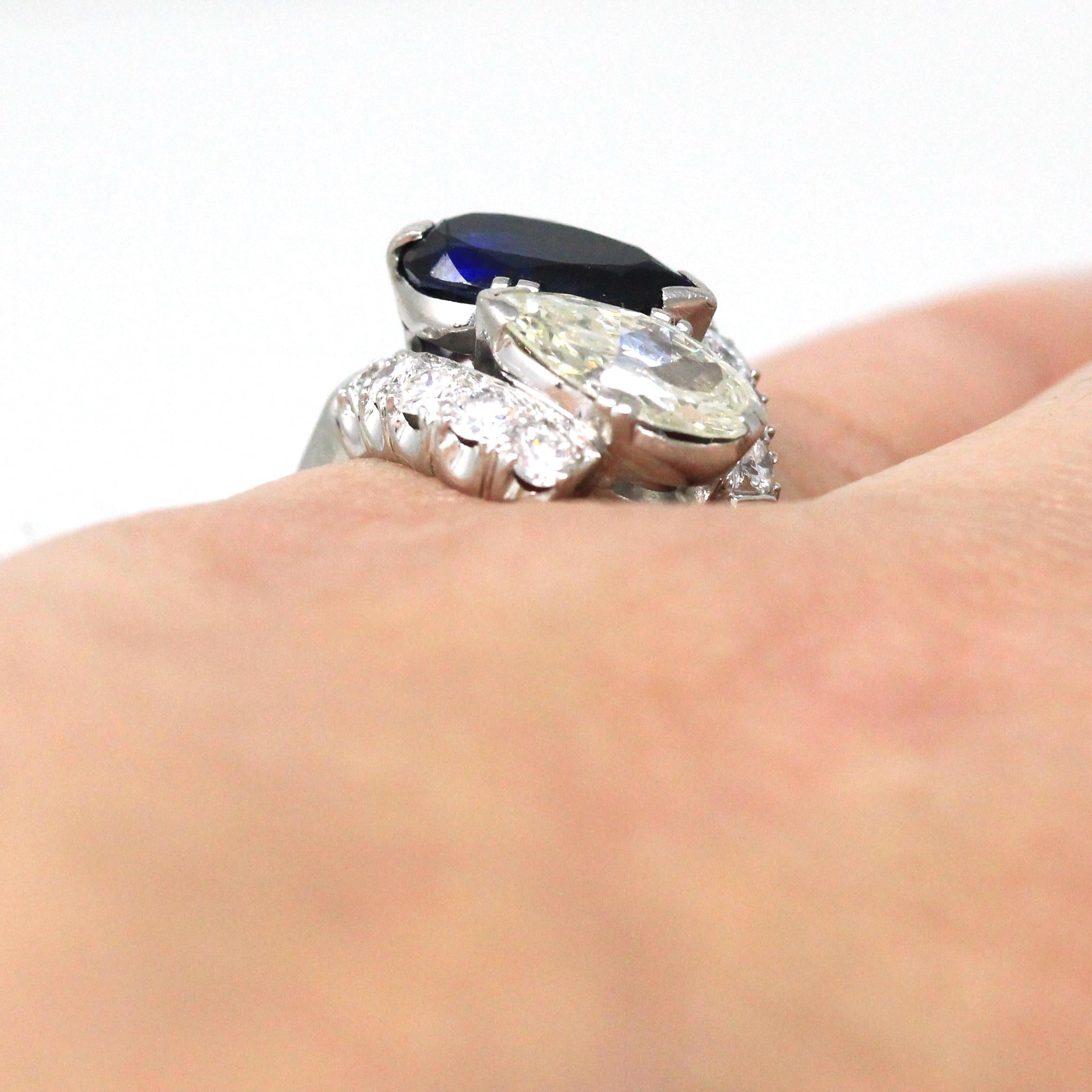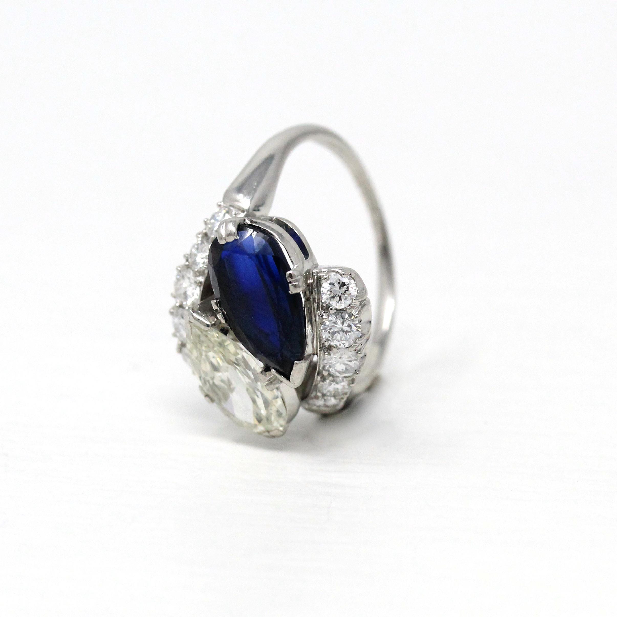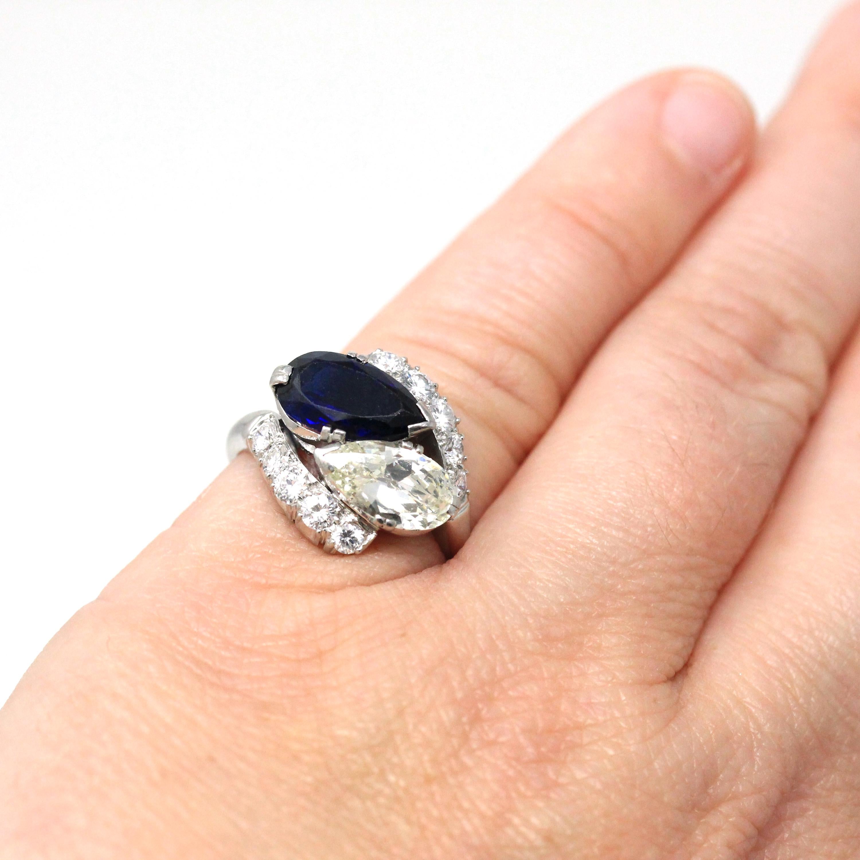 Mid Century Toi Et Moi Ring - Vintage 18k White Gold & Platinum Bypass Diamond Gemstones - Circa 1950s Era Size 5 1/2 Fine Statement Jewelry