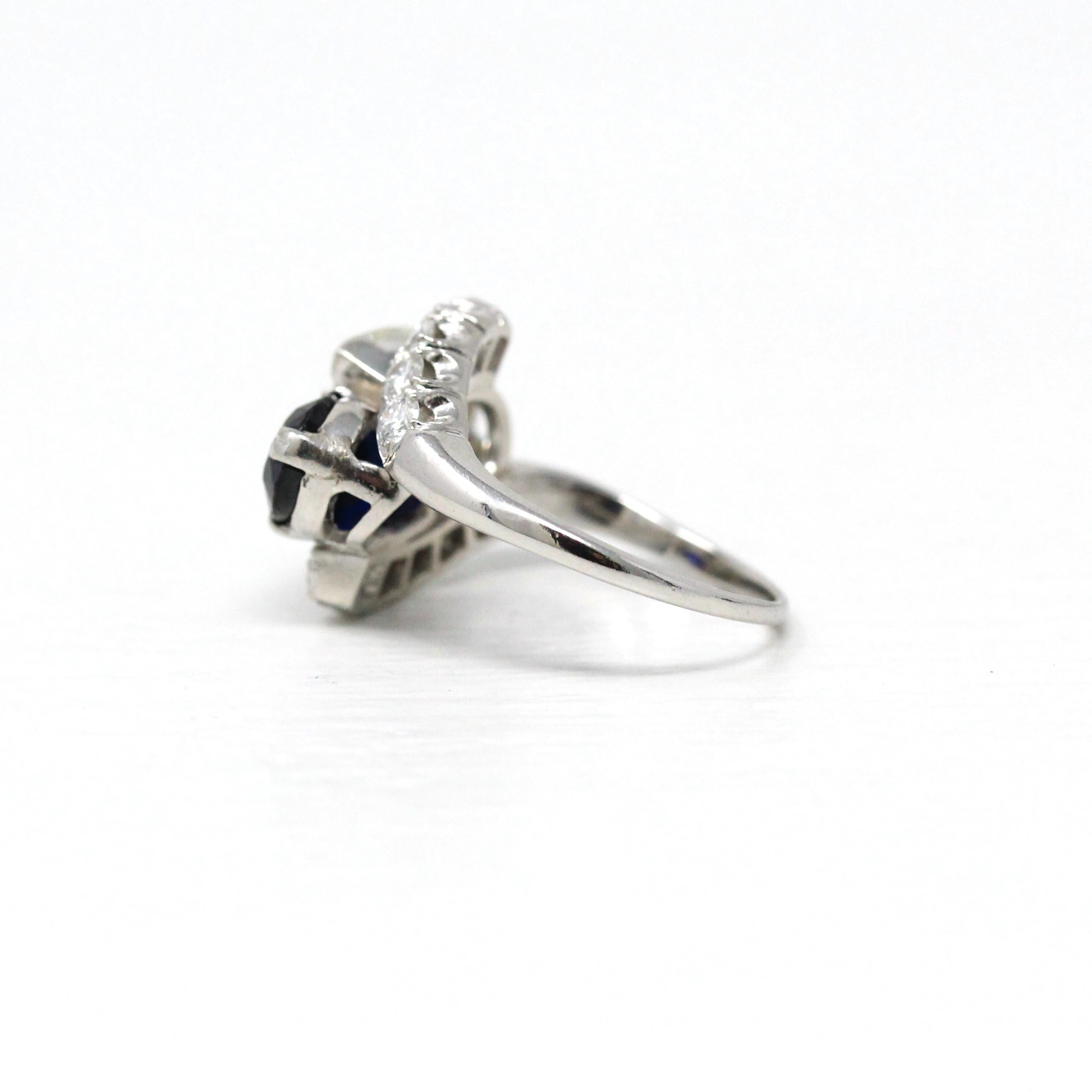 Mid Century Cluster Ring - Vintage 14k White Gold Natural Diamond Gemstone Band - Circa 1950s Size 7 3/4 Princess Anniversary Fine Jewelry