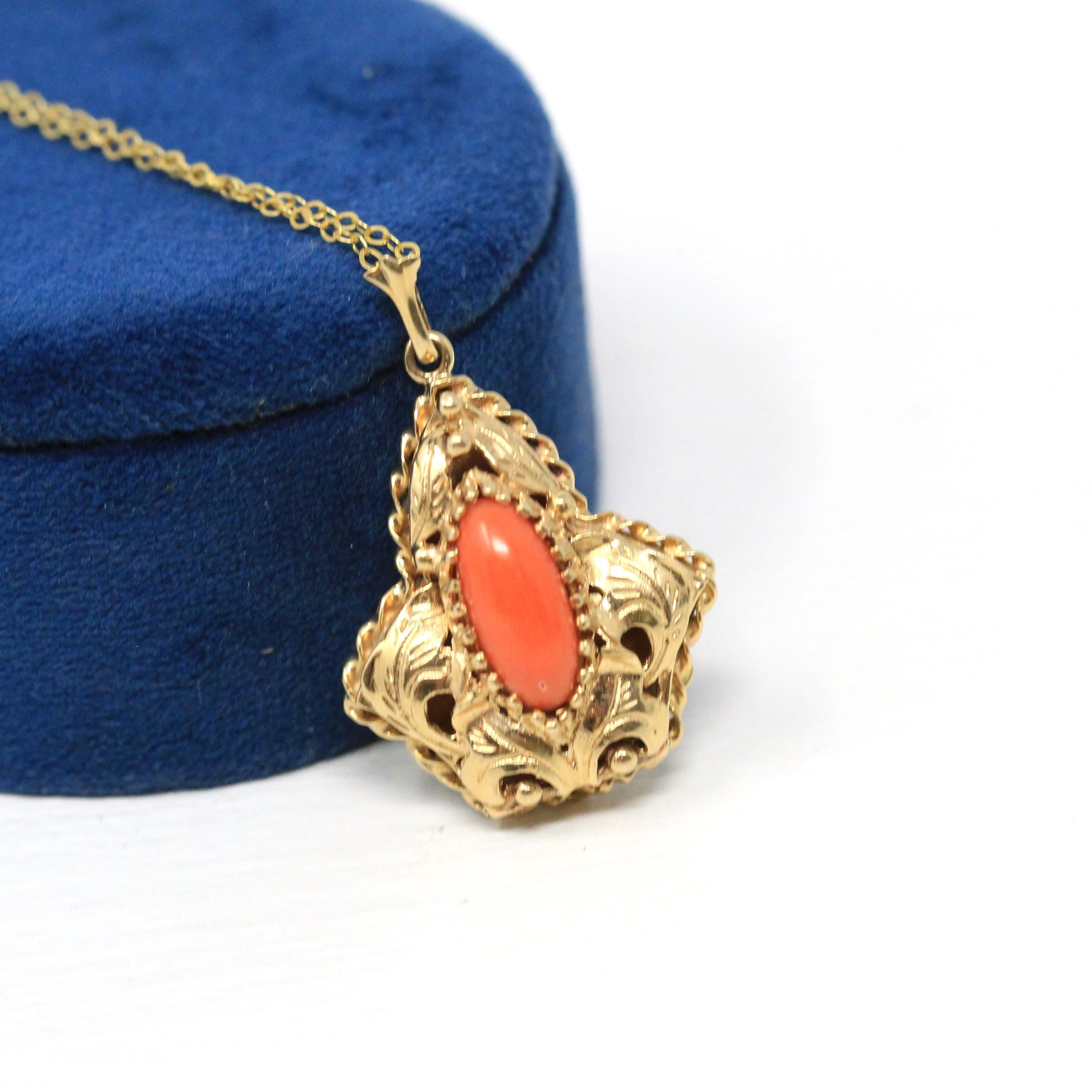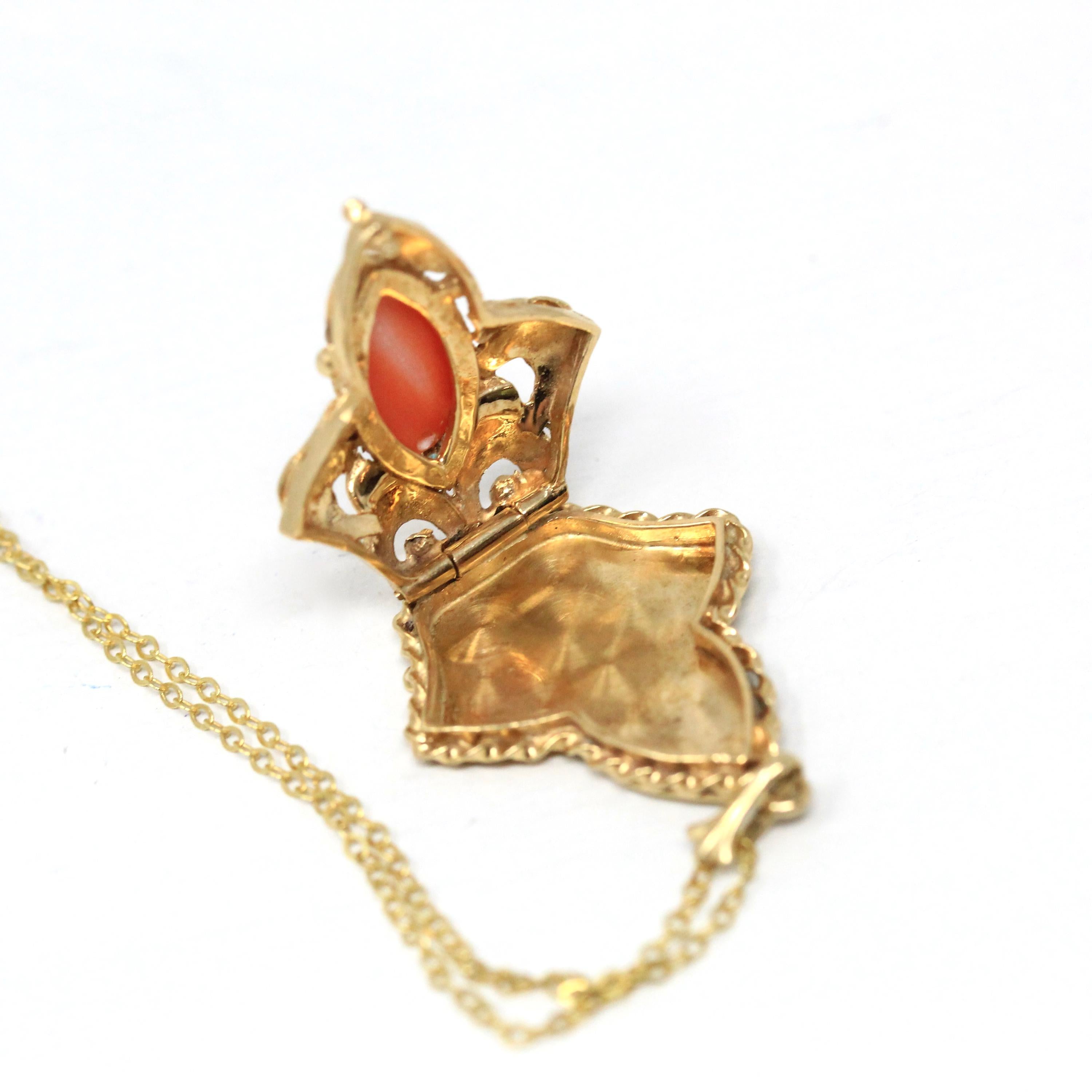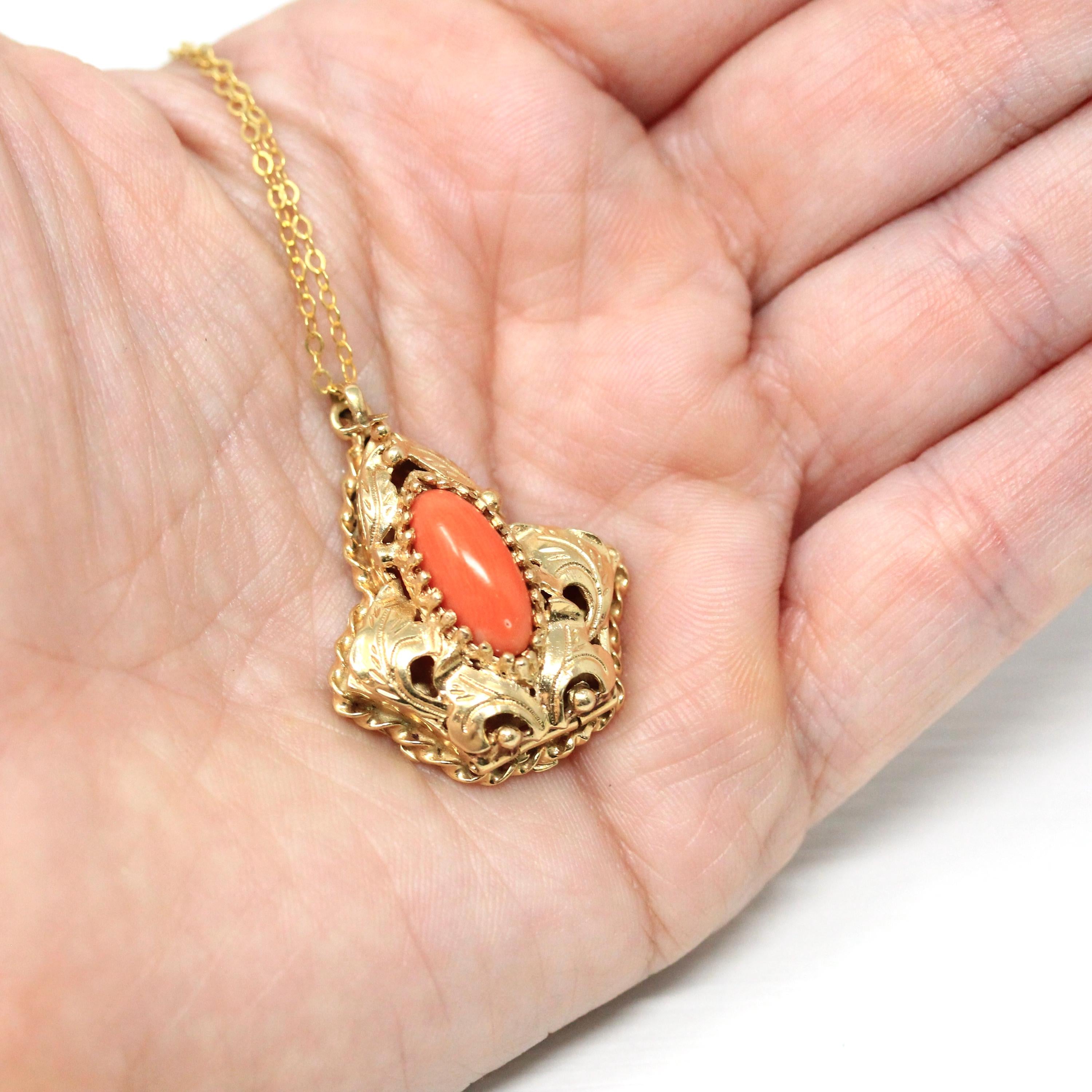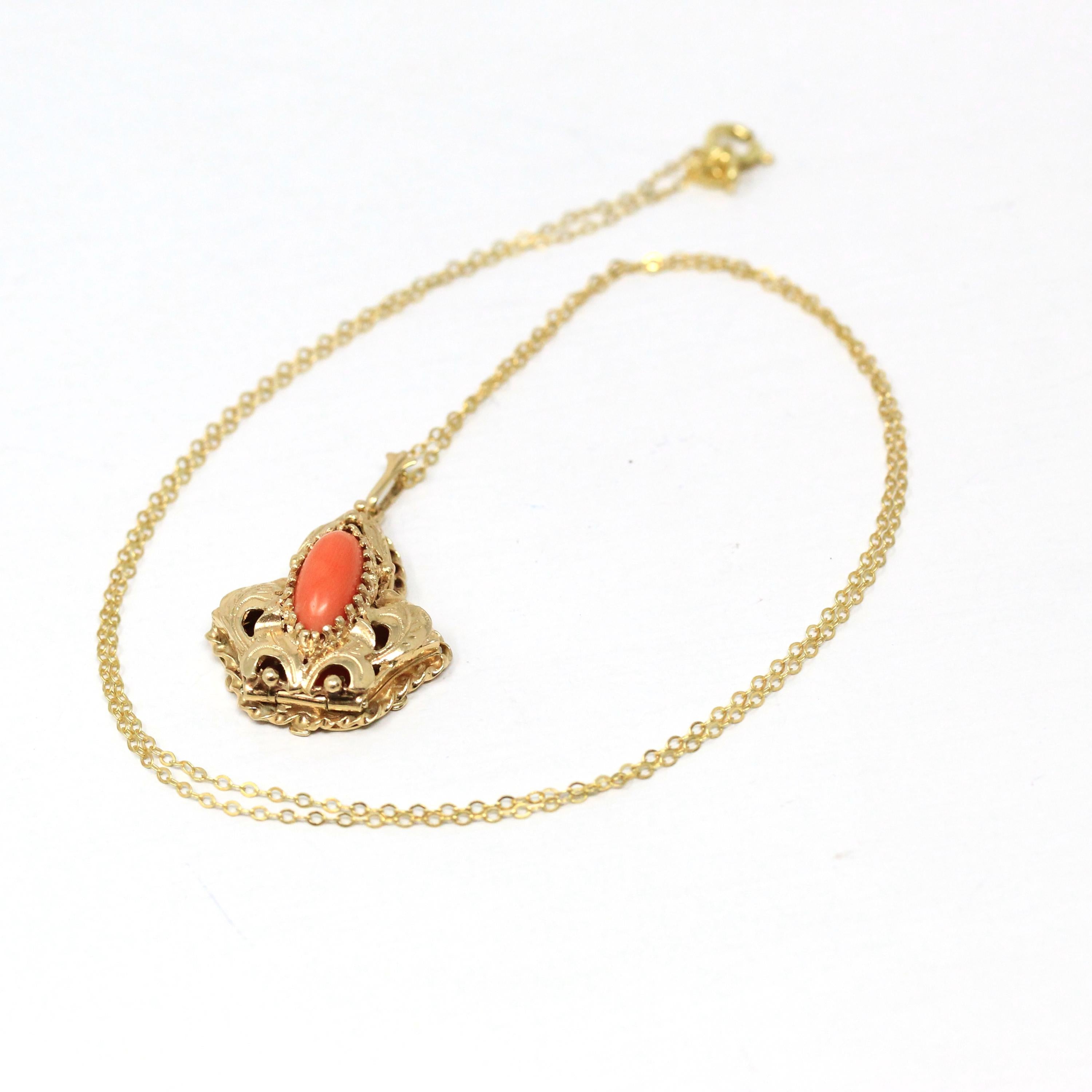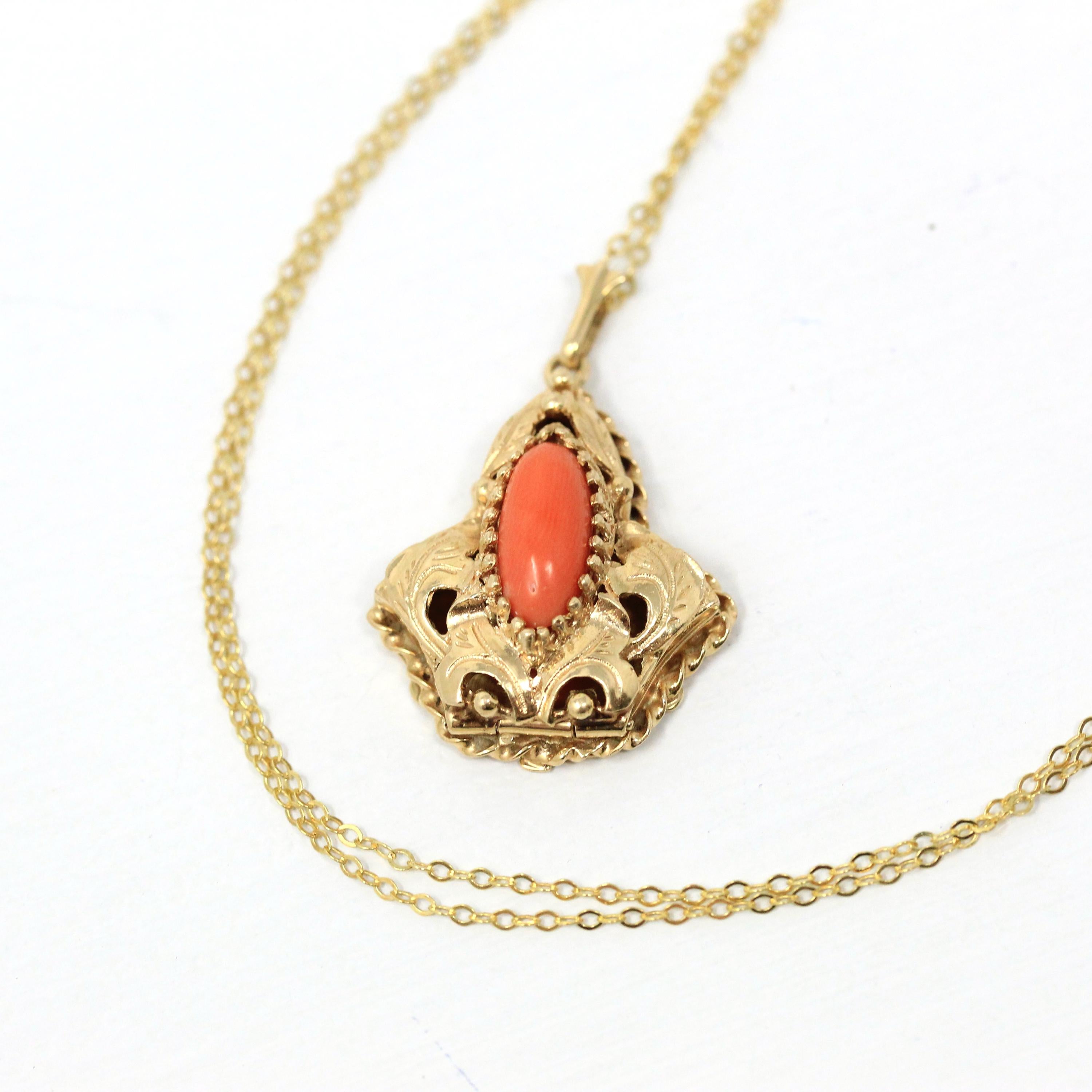 Vintage Heart Locket - Retro 9ct Yellow Gold Keepsake Pendant Necklace - Circa 1960s Era Engraved Designs Photograph Fine Flower Jewelry
