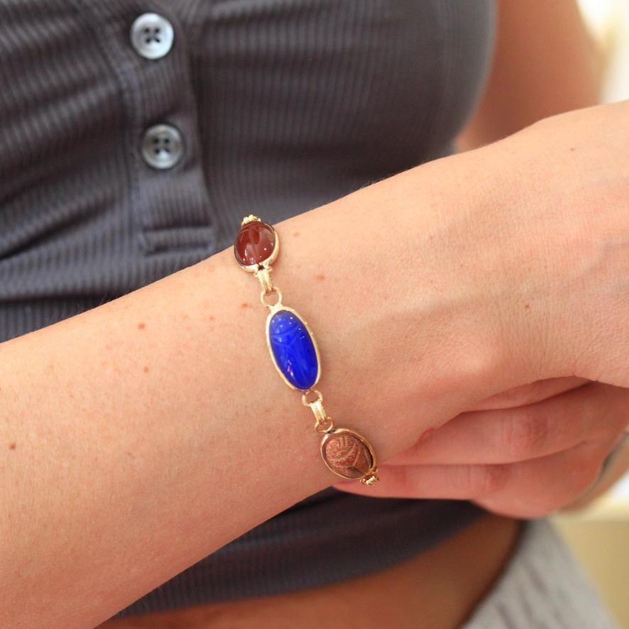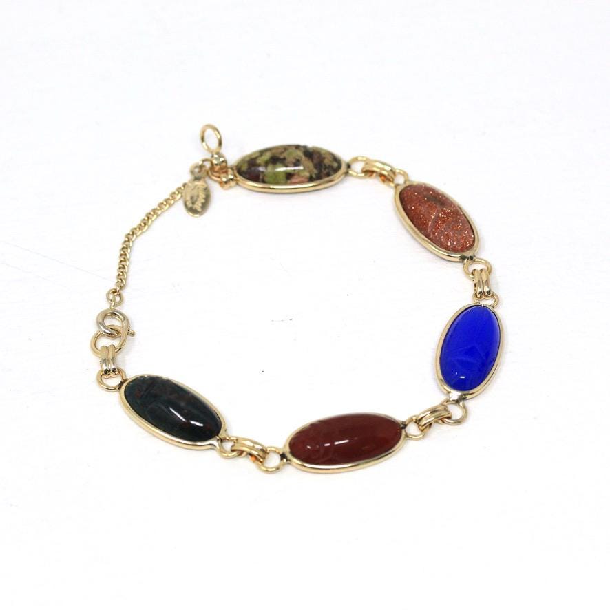 Vintage Agate Ring - Retro Era 10k Yellow Gold Oval Cabochon Cut Banded Natural Gemstone - Circa 1940s Era Size 7 1/4 Statement Fine Jewelry