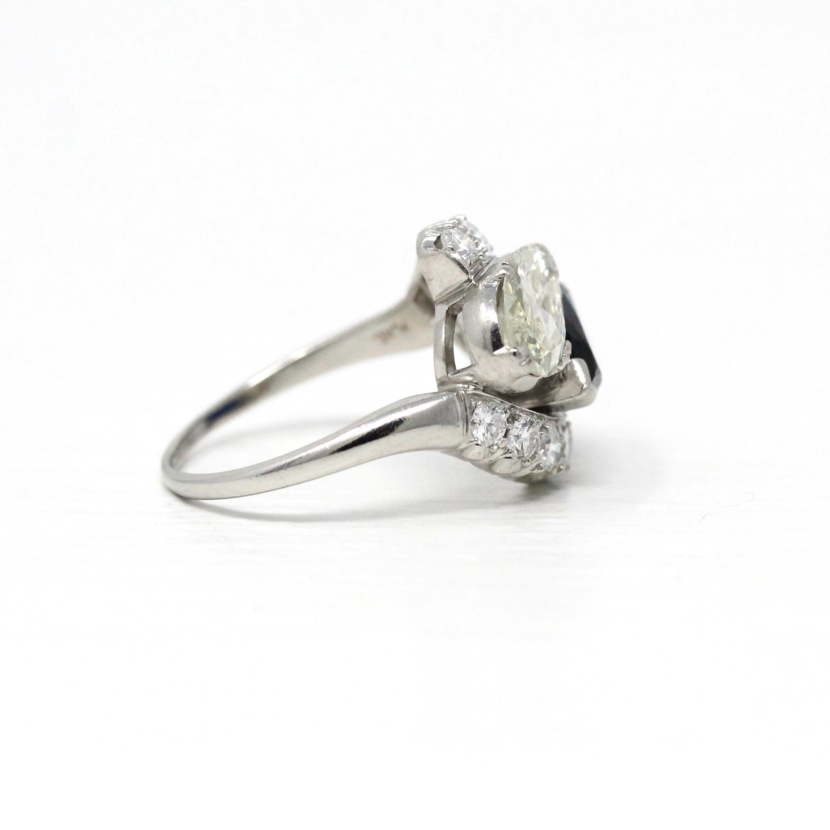 Vintage Engagement Ring - Platinum Retro Era 1.45 CTW Natural Diamonds - Circa 1950s Era Size 4.75 Fine Filigree Qualitative Report Jewelry