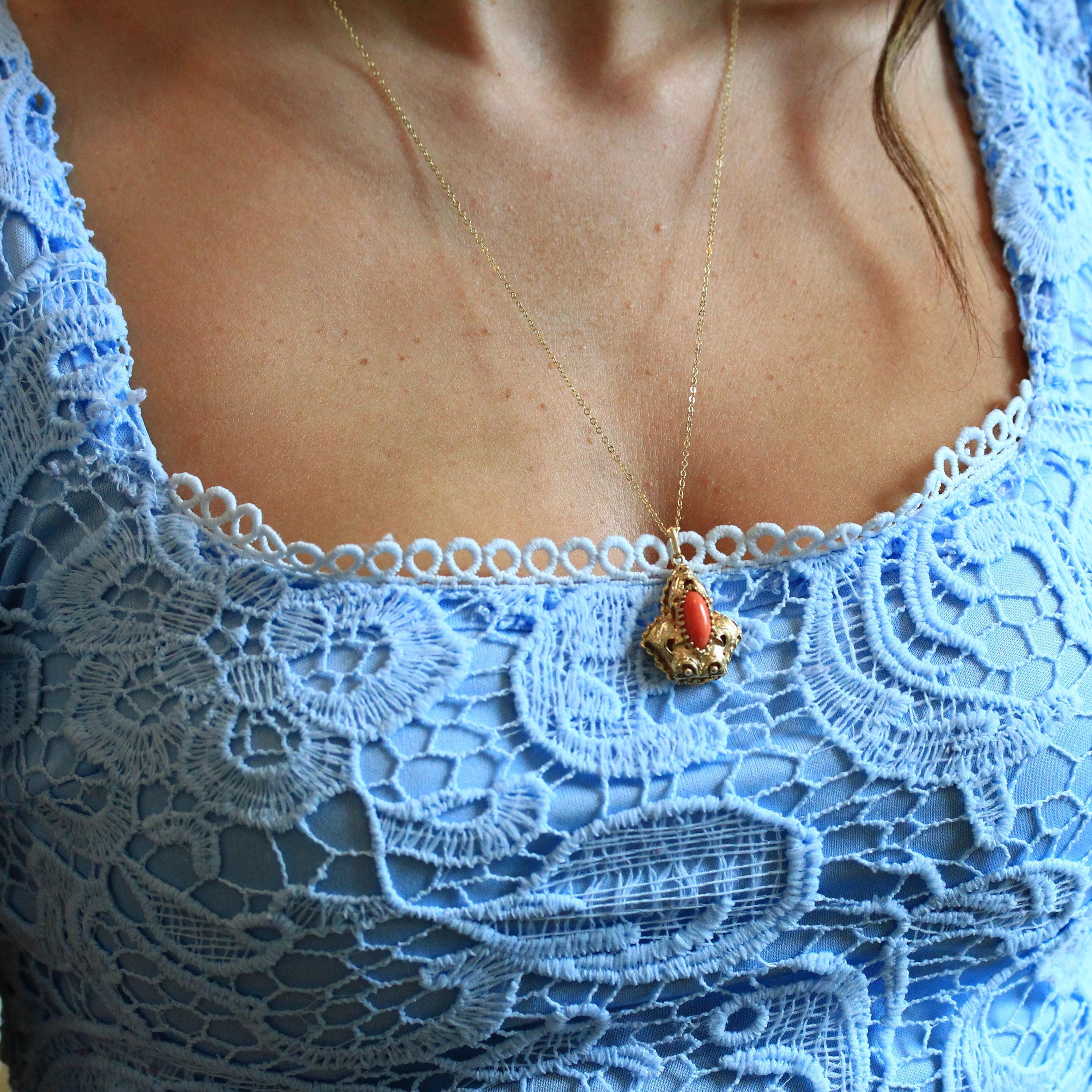 Italian Horn Charm - Retro 18k Yellow Gold Italy Cornicello Good Luck Pendant Necklace - Vintage Circa 1970s Ward Off Evil Amulet Jewelry