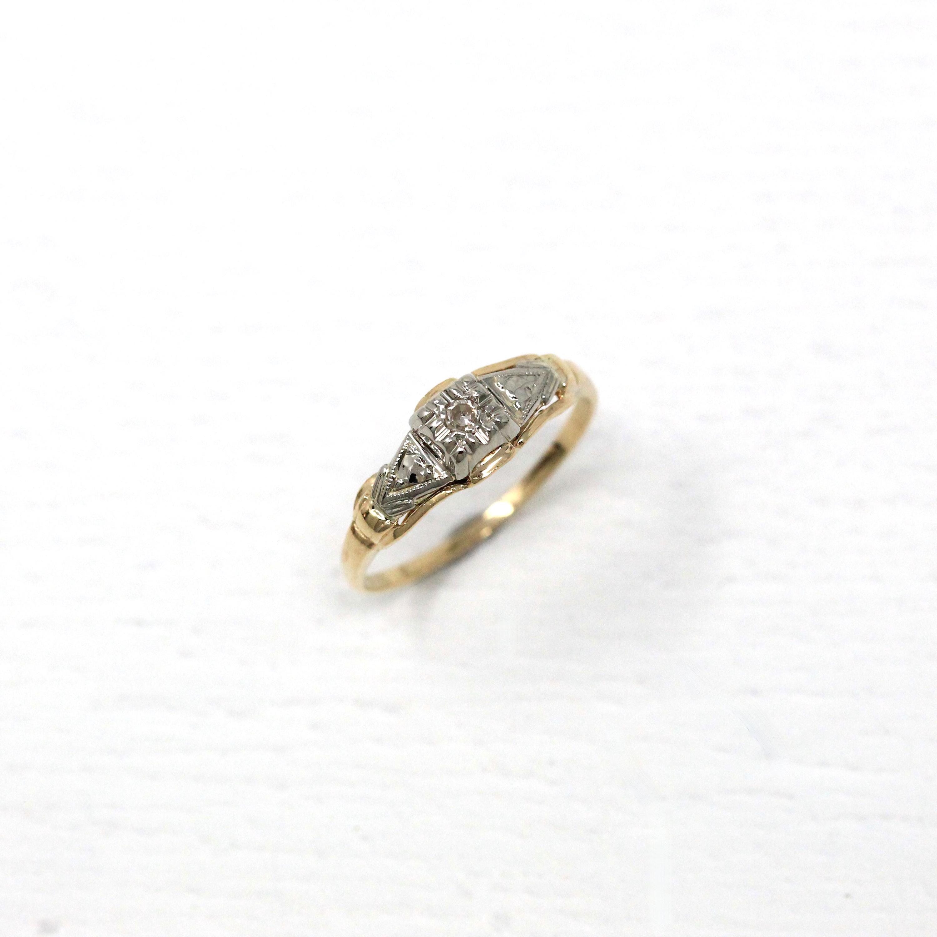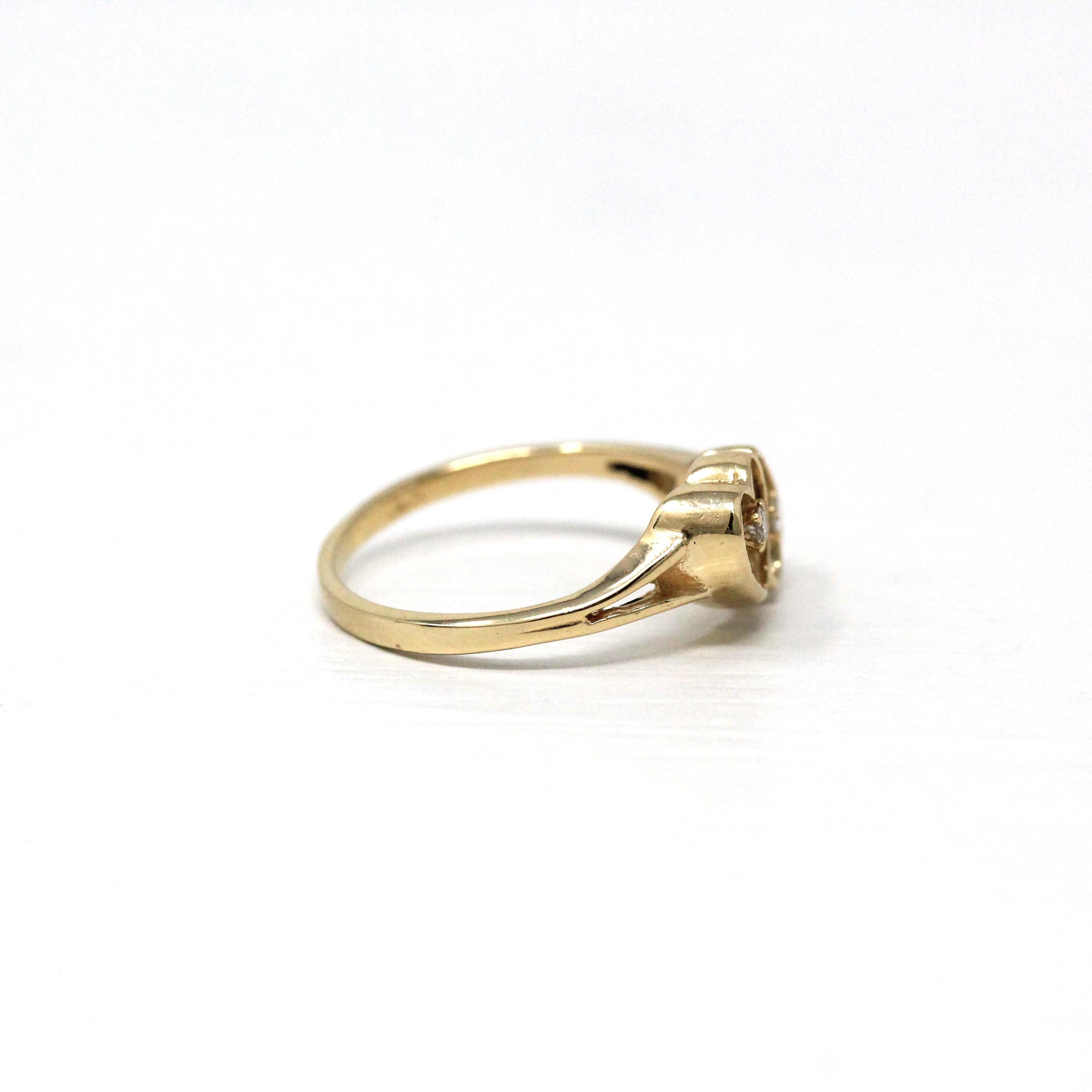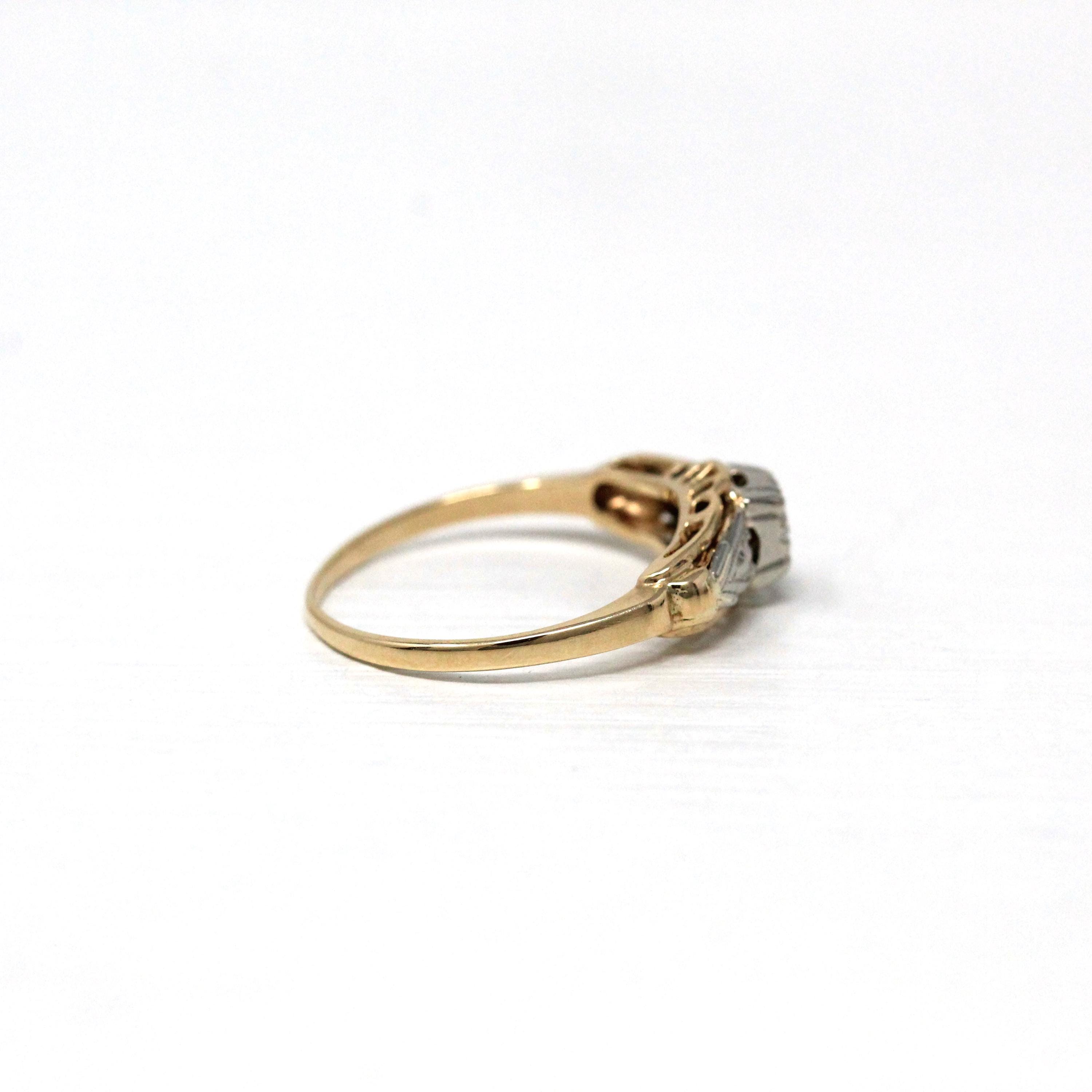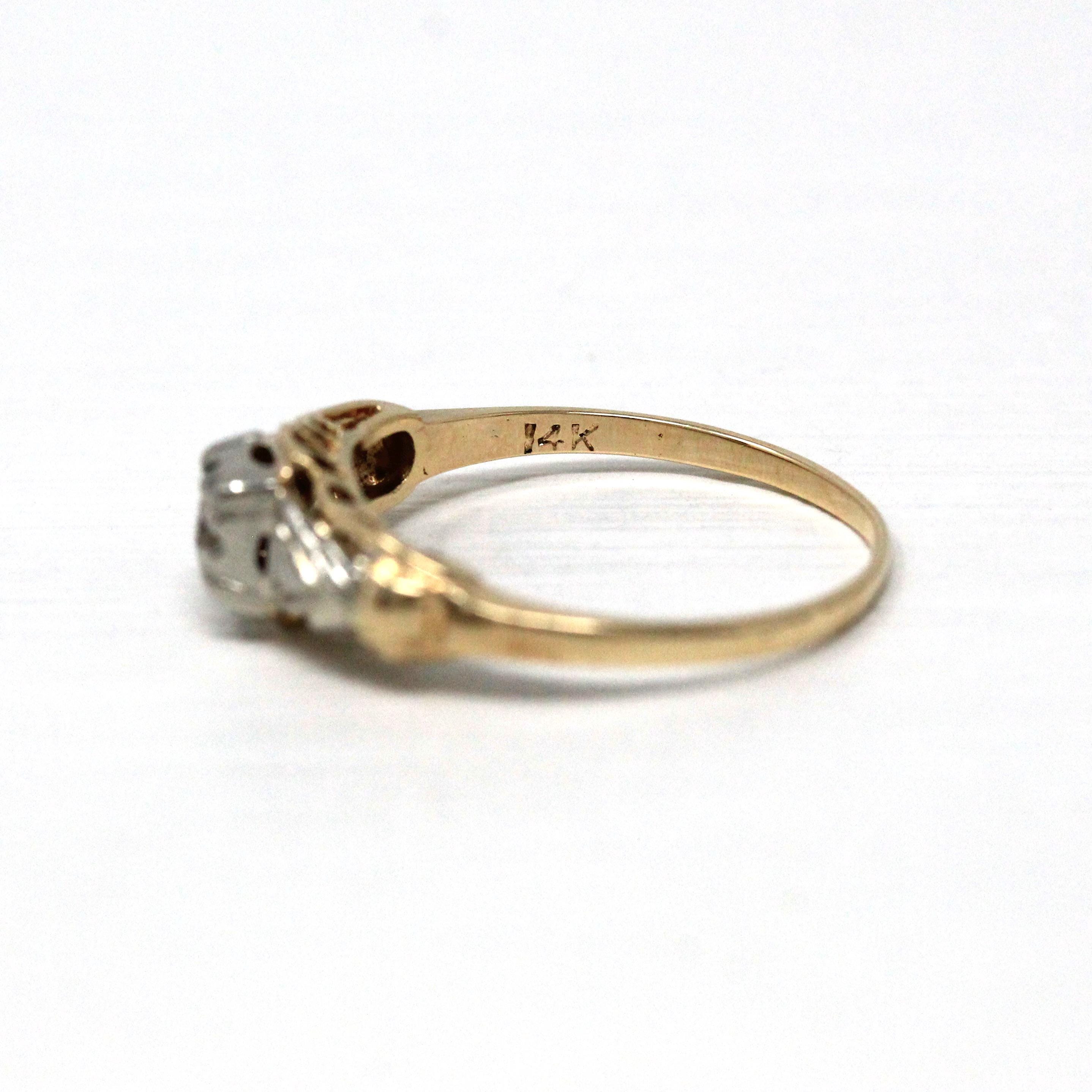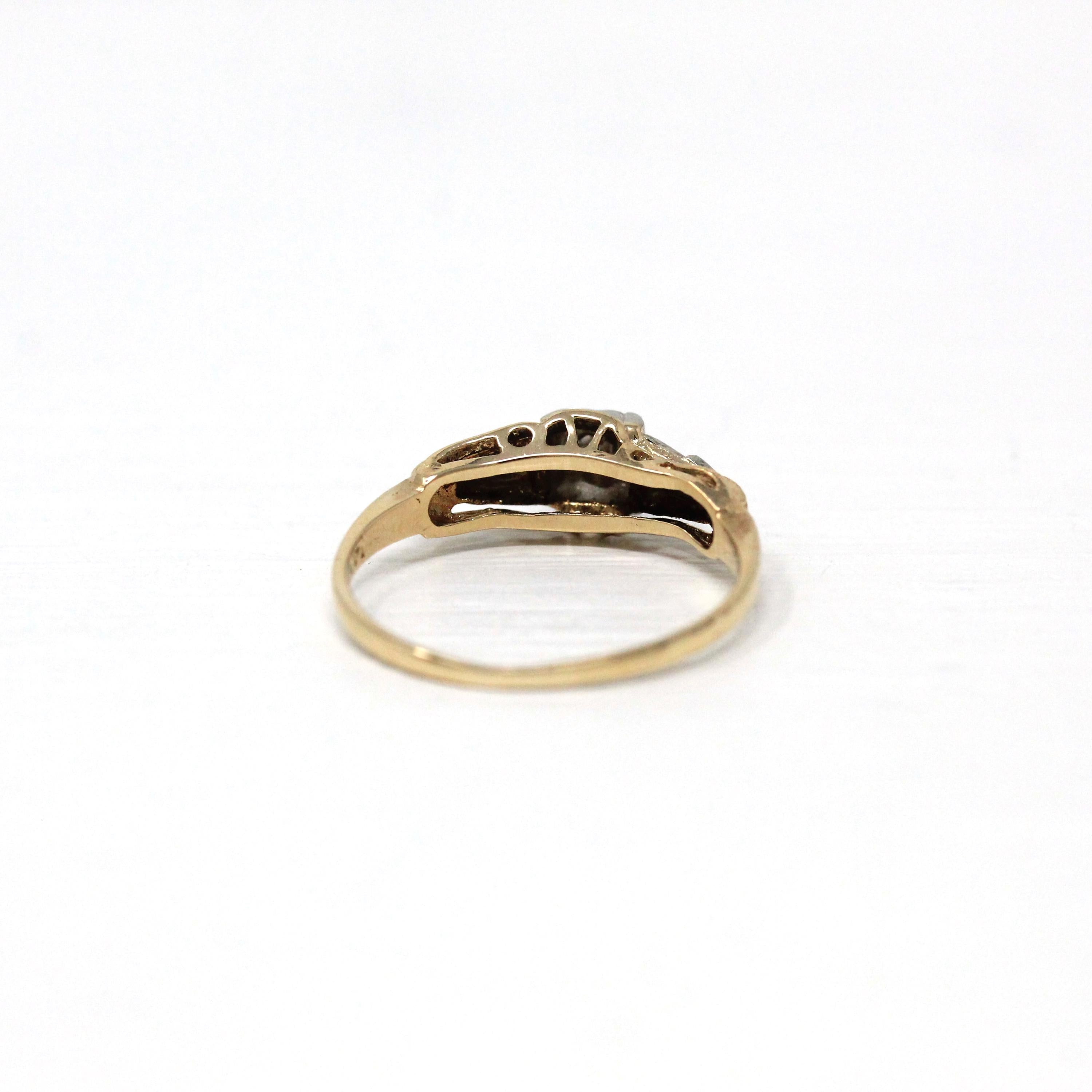 Diamond Pinky Ring - Retro 14k Yellow & White Gold Midi Baby Band Round Clear Gem - Vintage 1970s Era Size 1 3/4 April Birthstone Jewelry