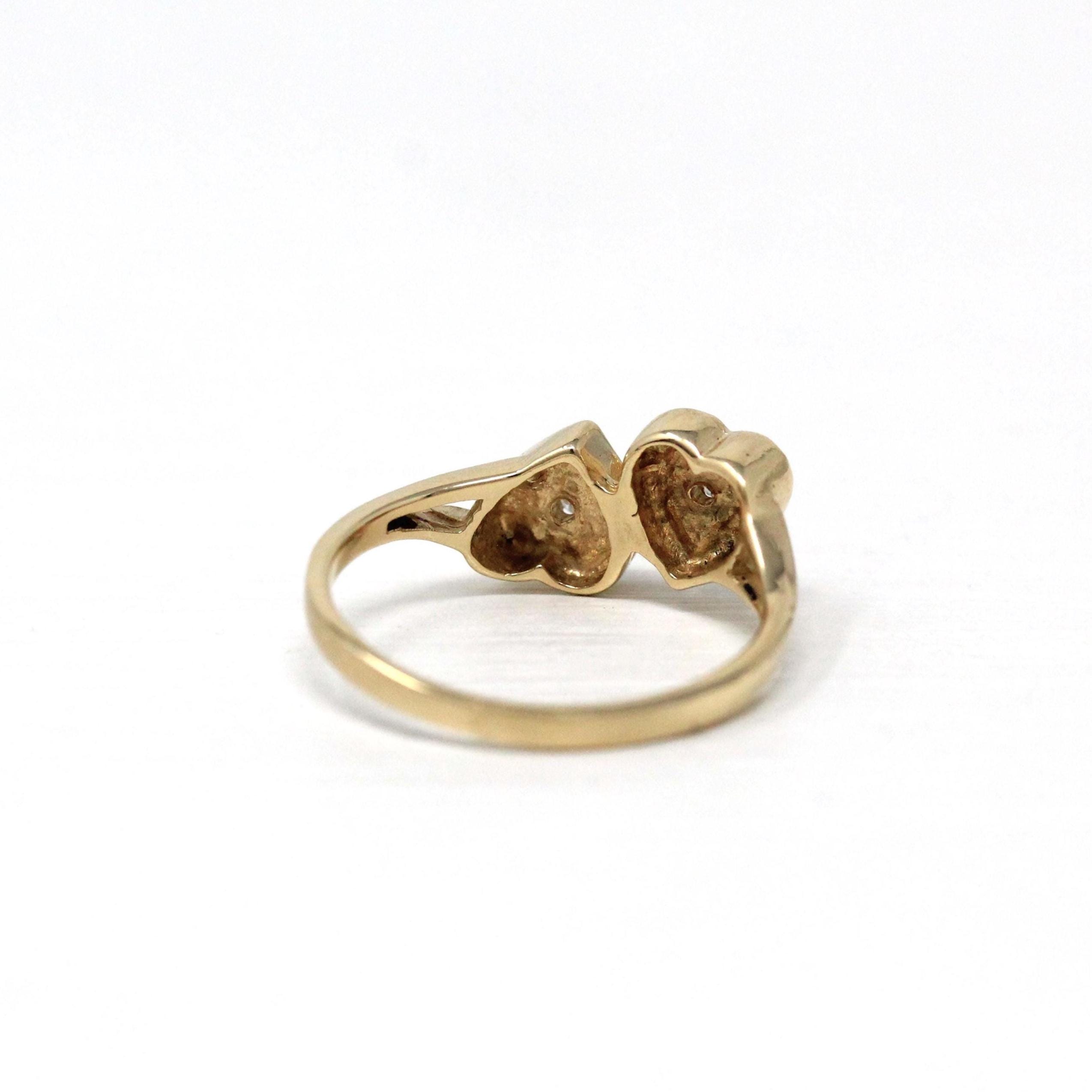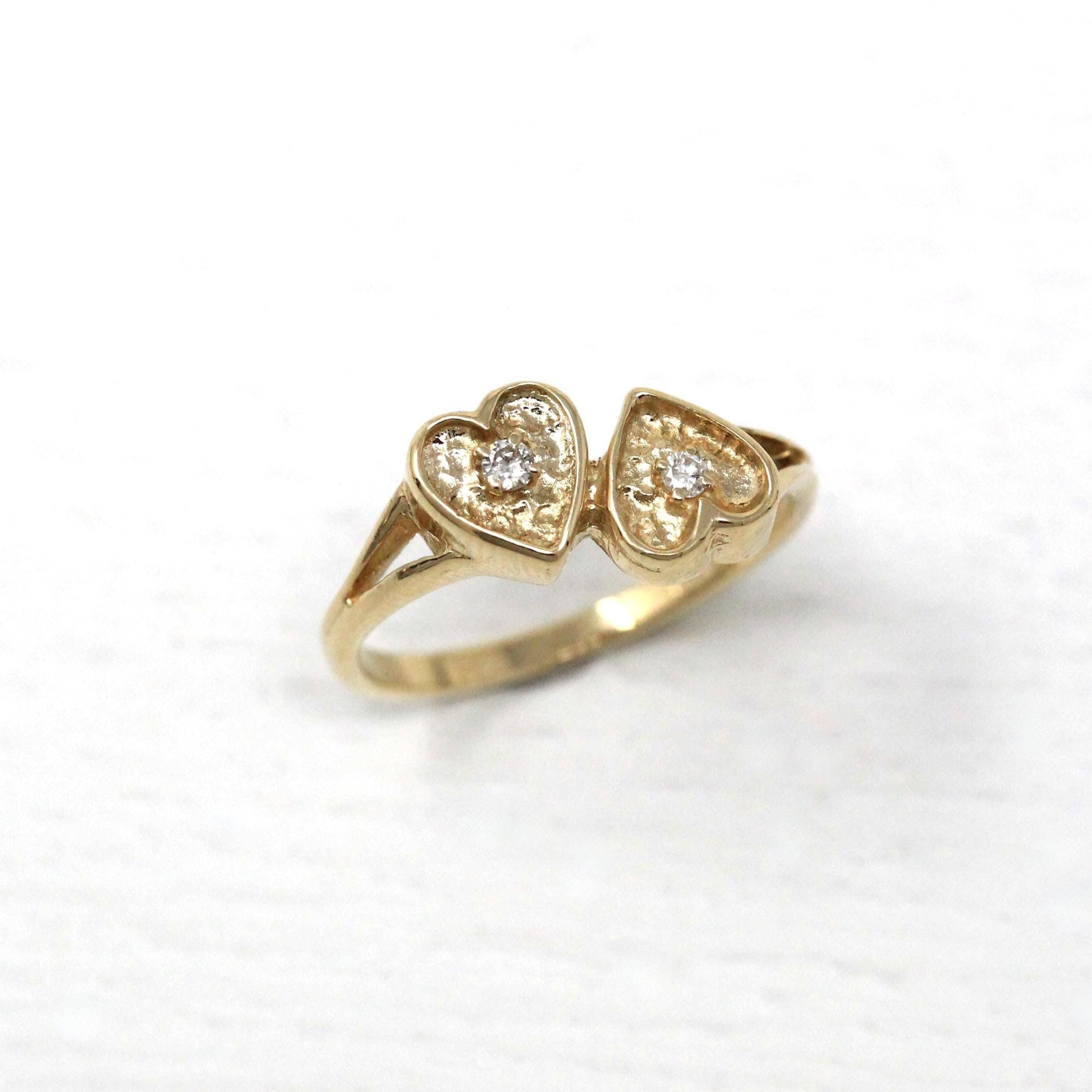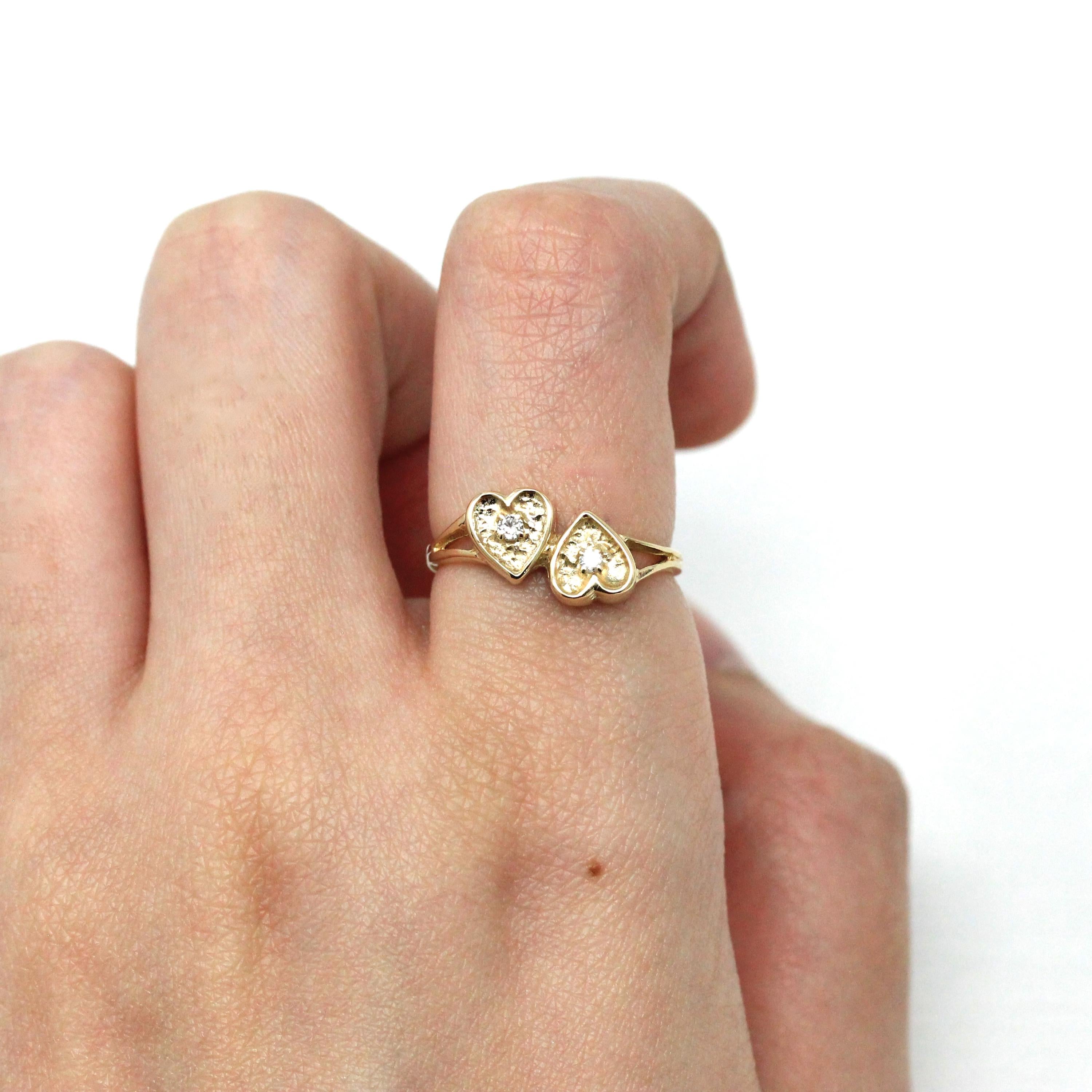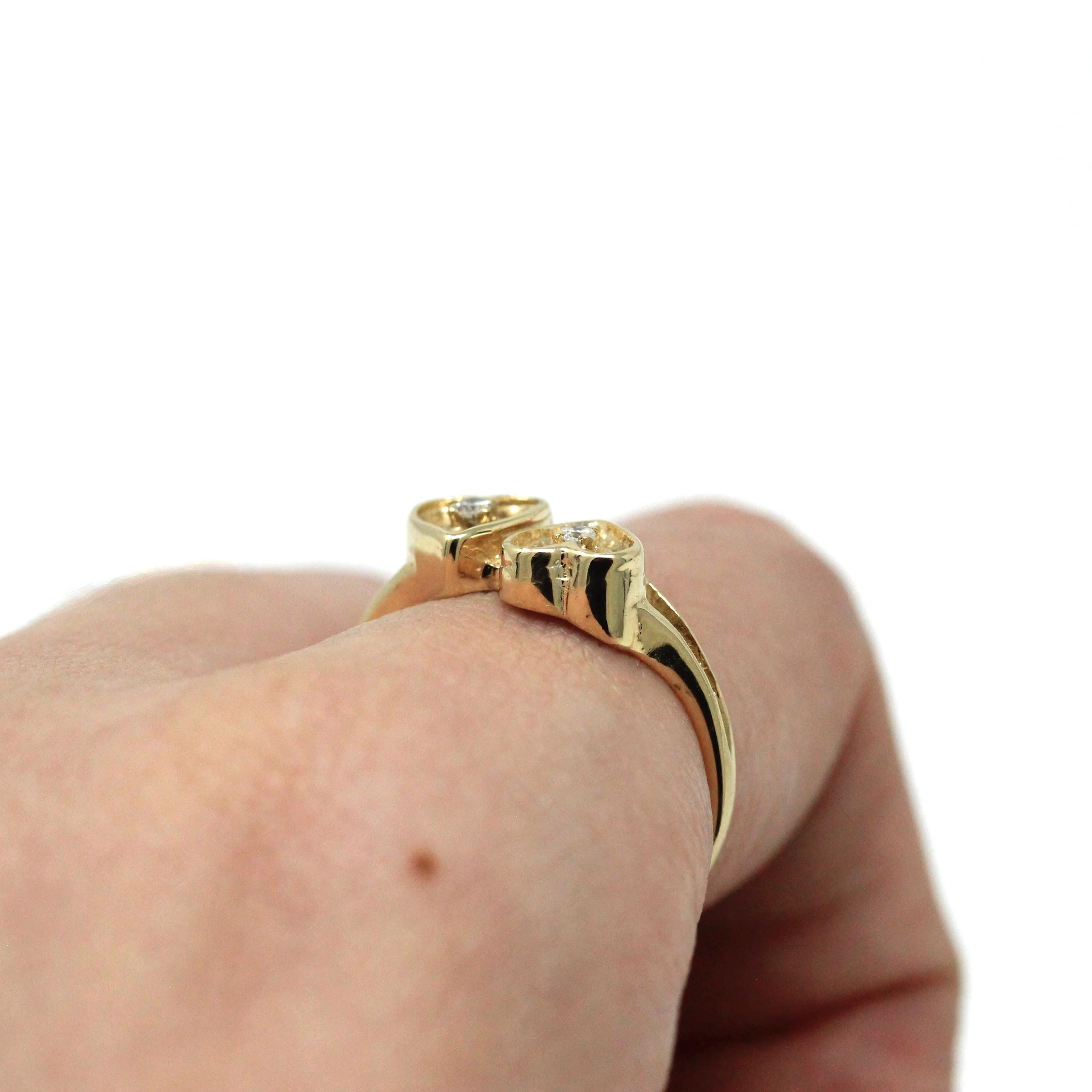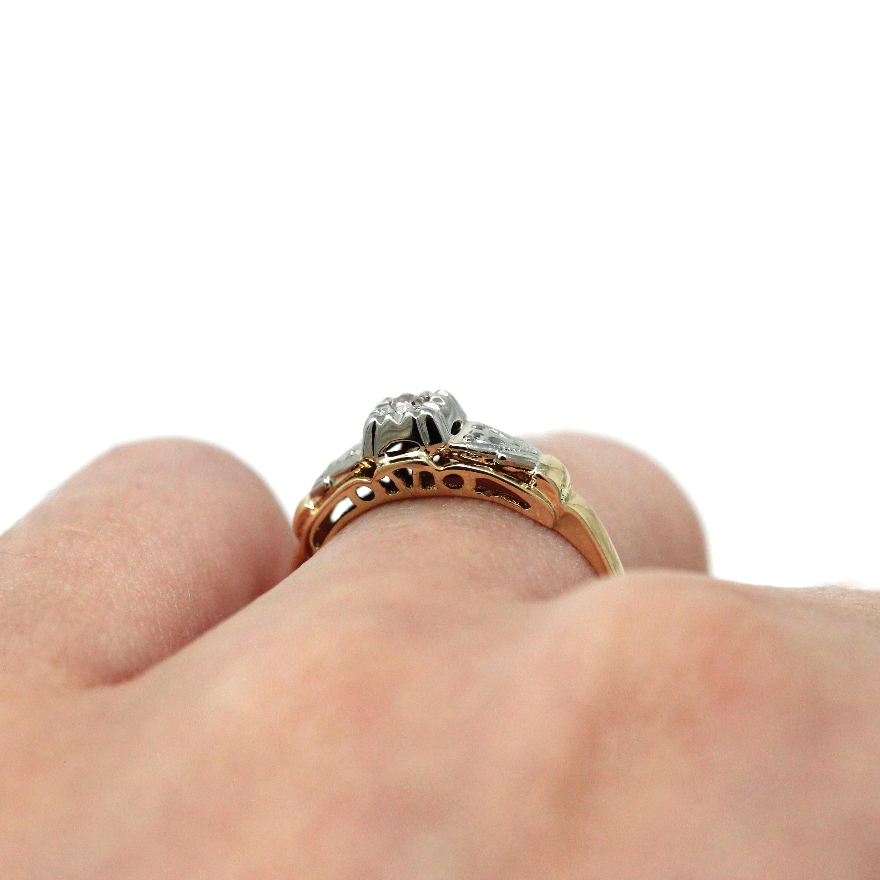 Diamond Pinky Ring - Retro 14k Yellow & White Gold Midi Baby Band Round Clear Gem - Vintage 1970s Era Size 1 3/4 April Birthstone Jewelry