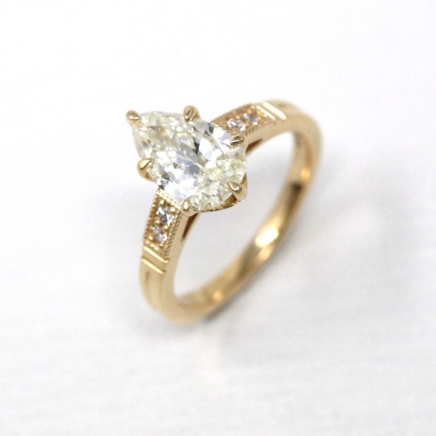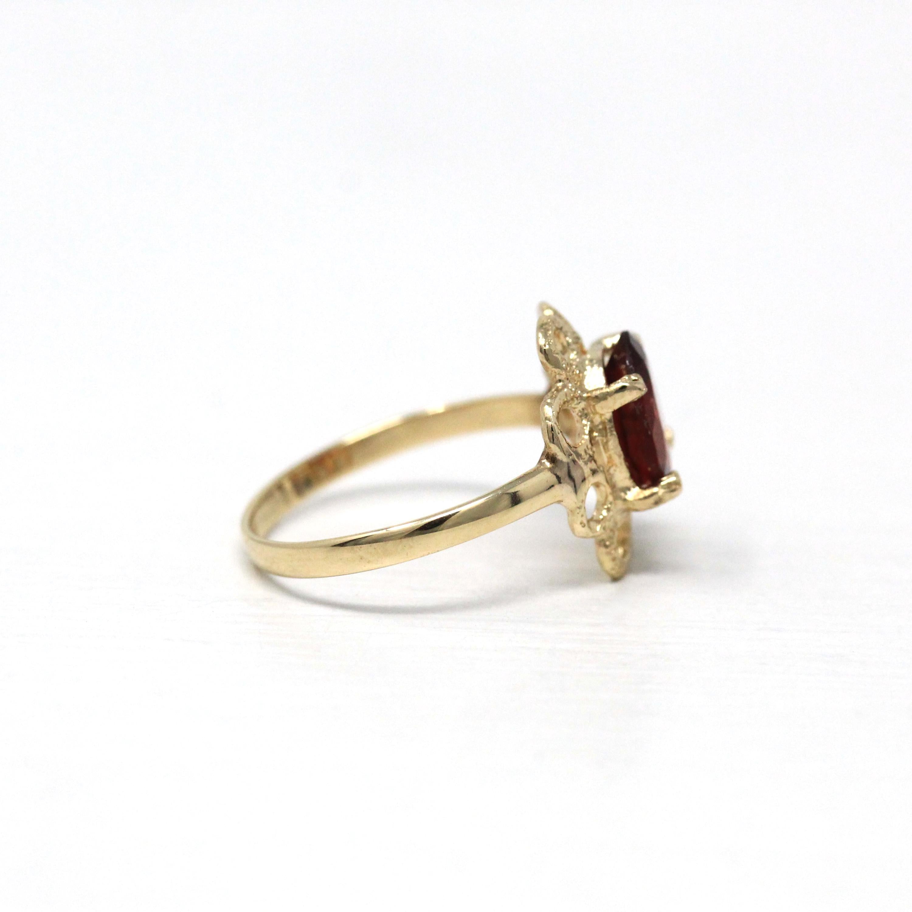 Vintage Quartz Ring - Retro 10k Yellow Gold Marquise Cut Natural Brown Faceted Gemstone - Circa 1970s Size 5 Flower Trubrite Fine Jewelry