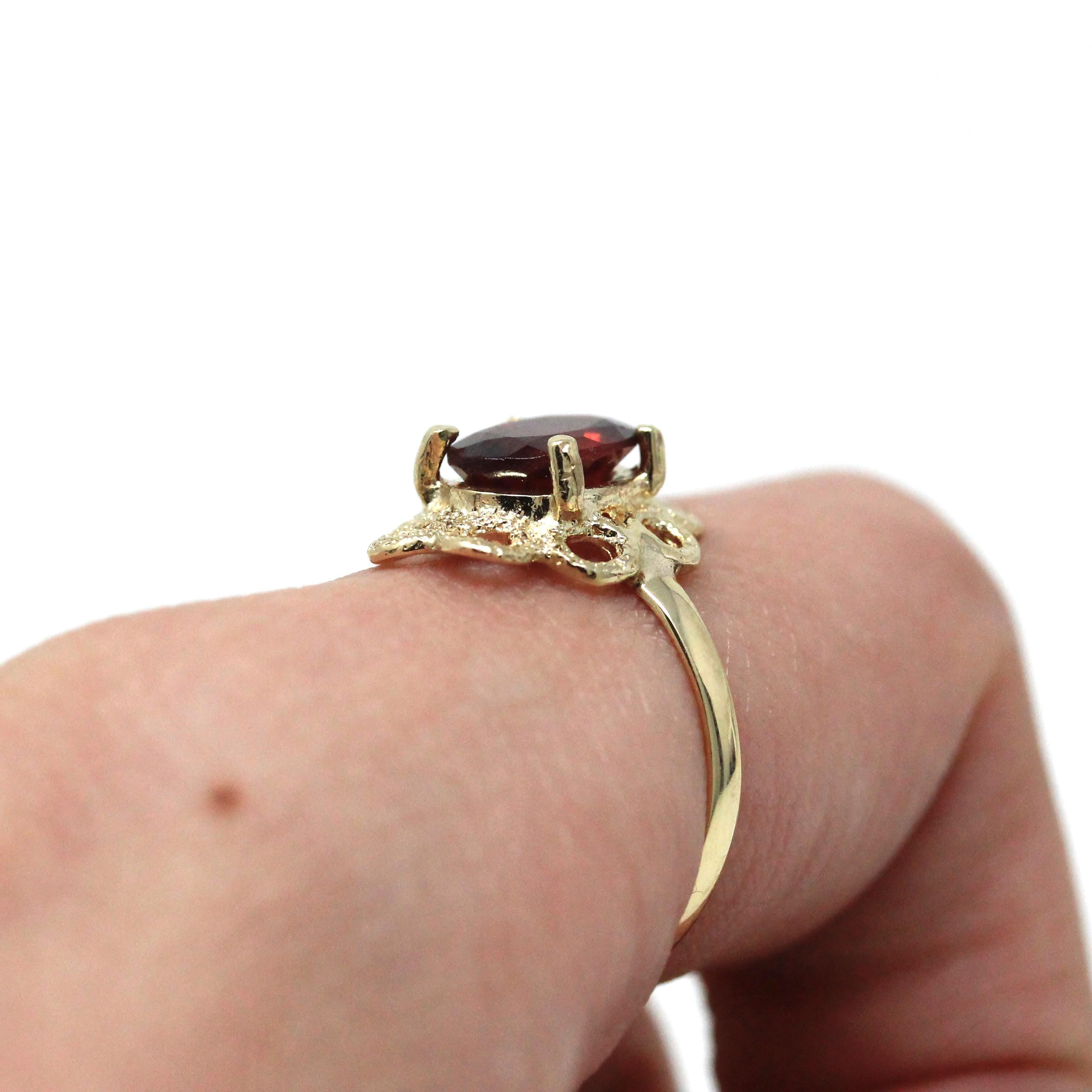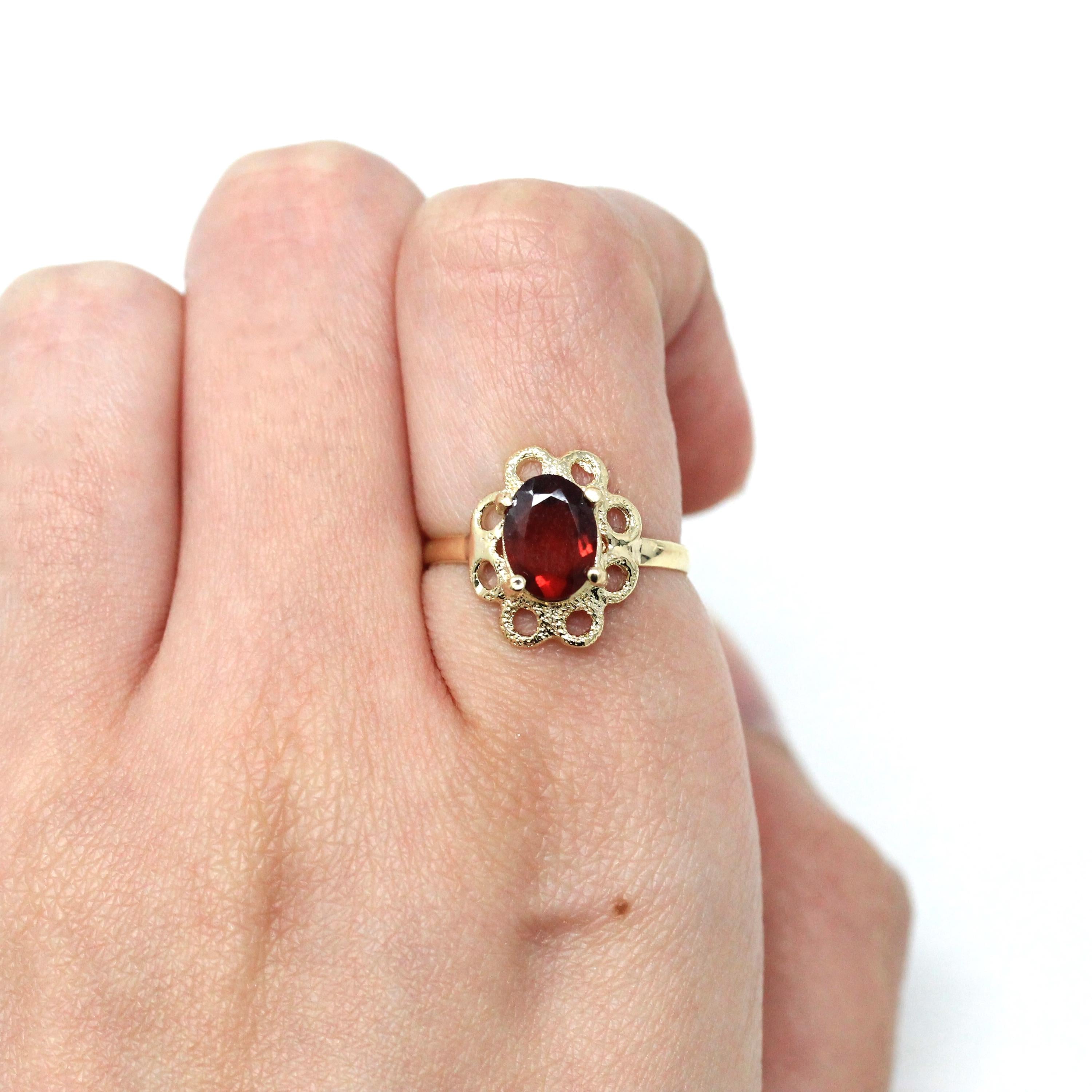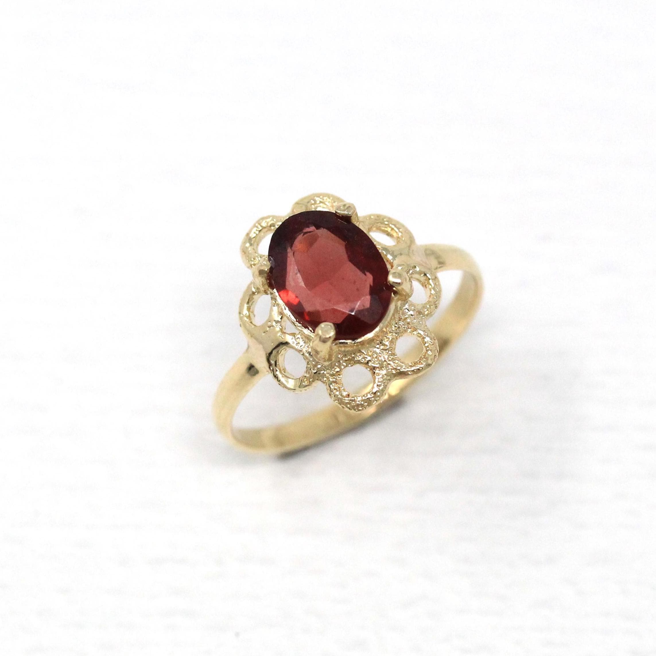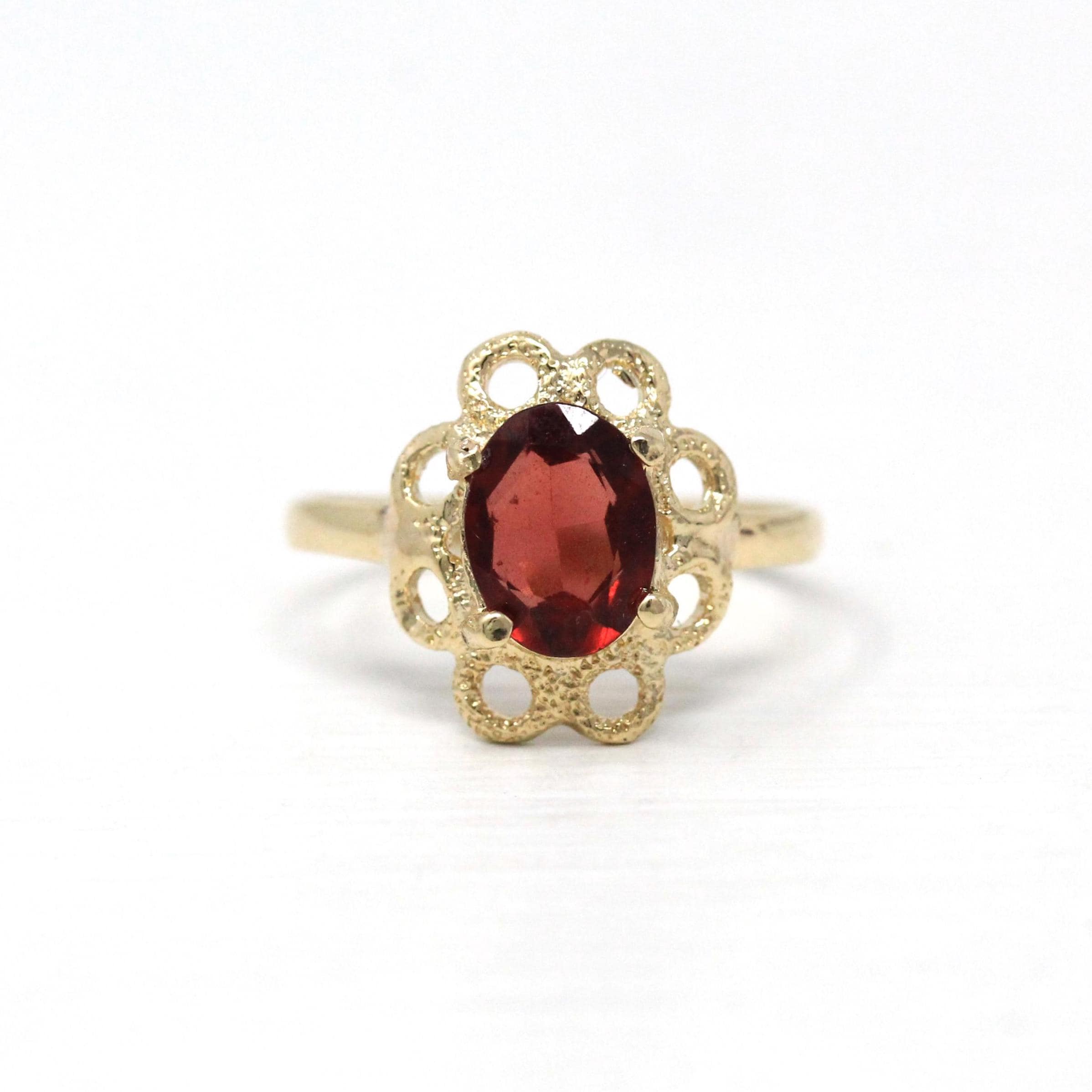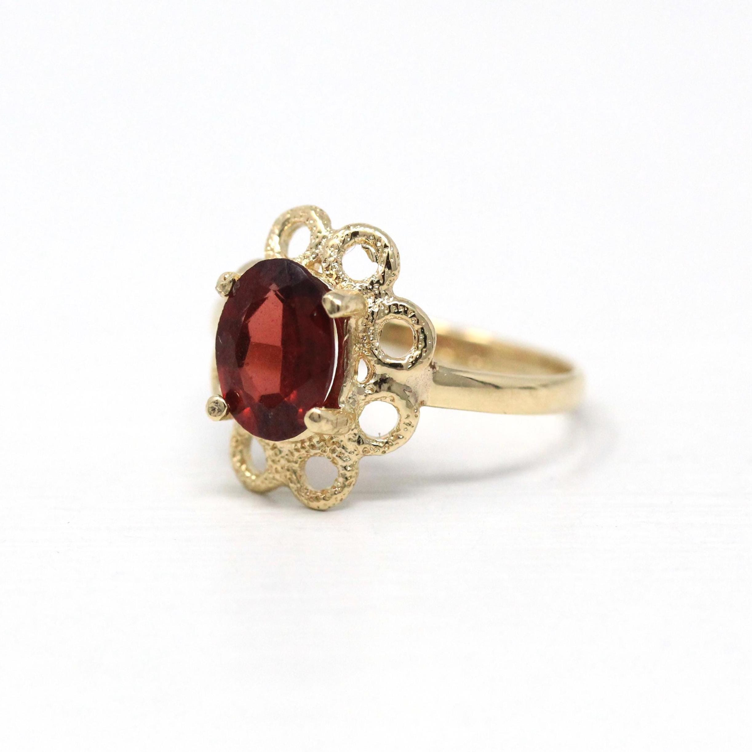 Created Ruby Ring - Retro Era 10k Yellow Gold Created Red Stone & Diamond Gemstones - Circa 1940s Size 6 1/2 Vintage Fine Statement Jewelry